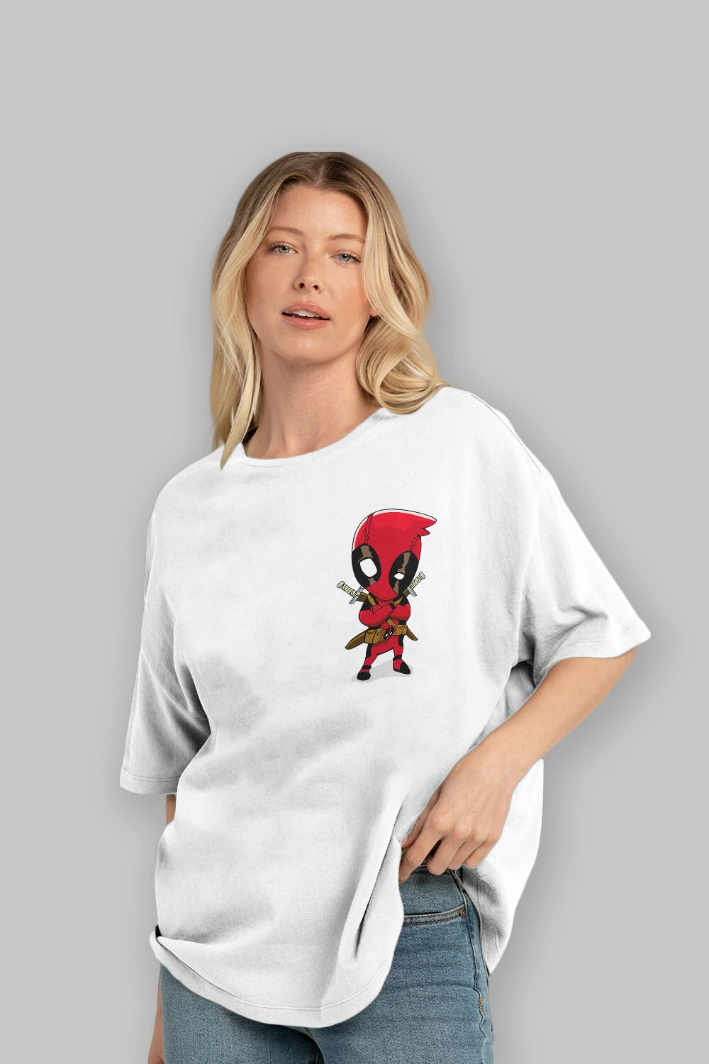 Deadpool (19) Ön Sol Baskılı Oversize t-shirt Erkek Kadın Unisex %100 Pamuk Bisiklet Yaka tişort