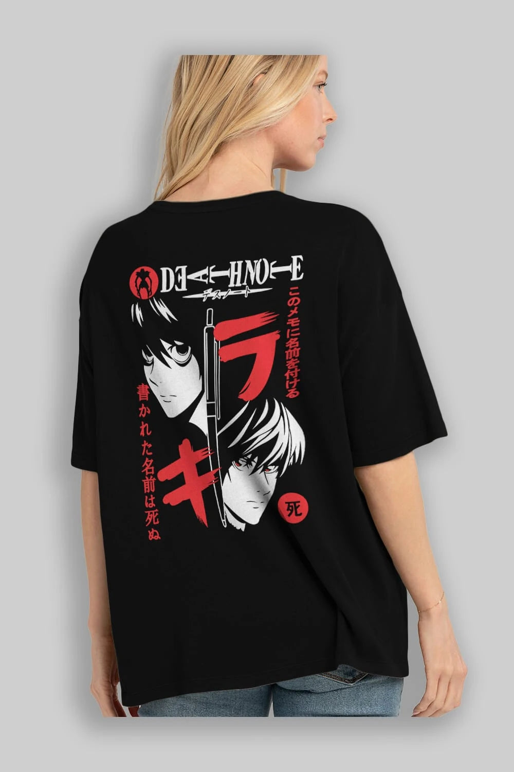 DEATHNOTE L vs KIRA Anime Arka Baskılı Oversize t-shirt Erkek Kadın Unisex