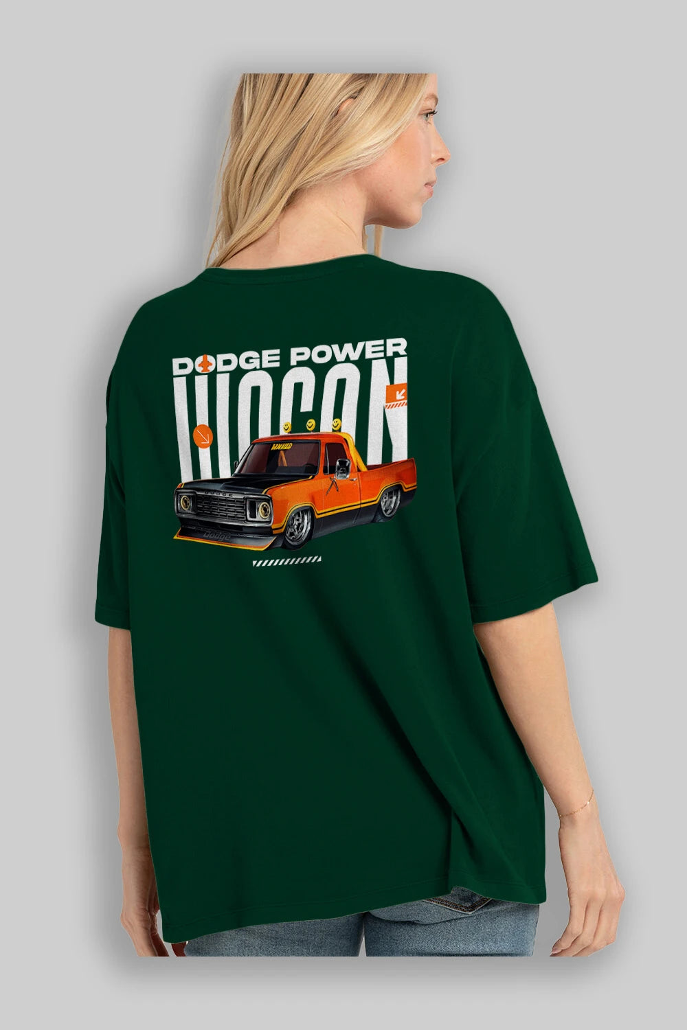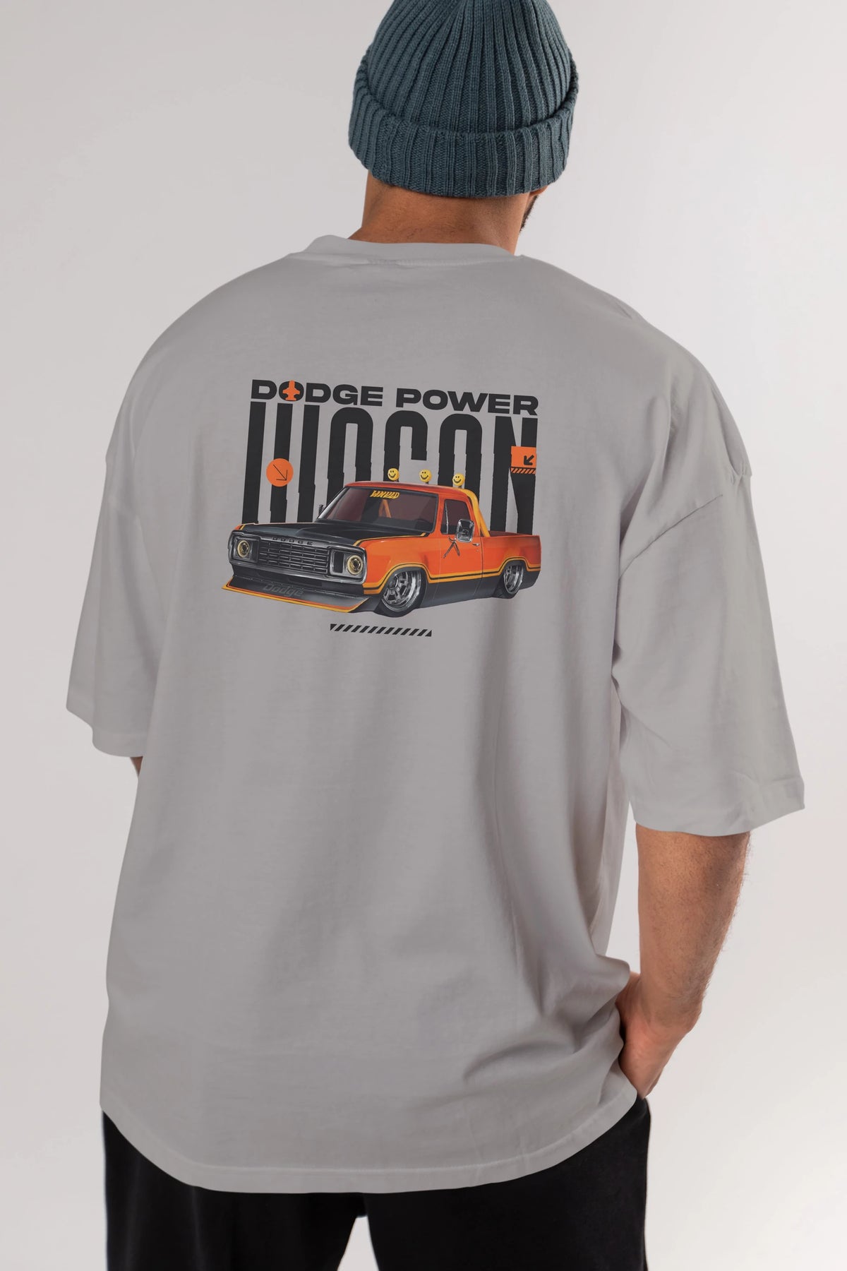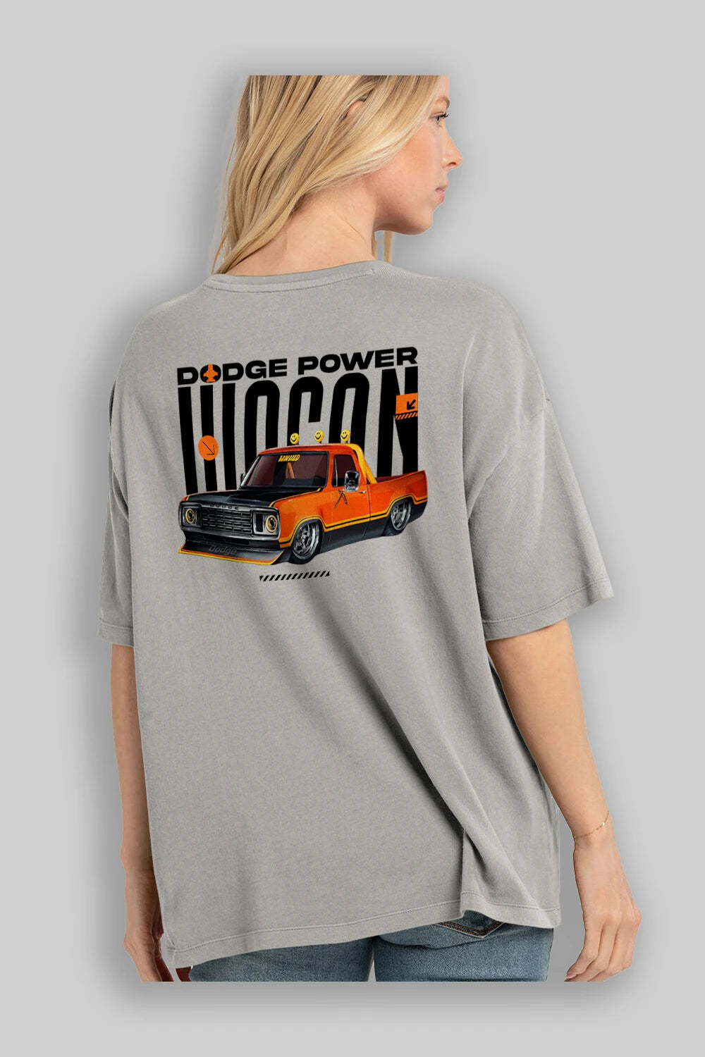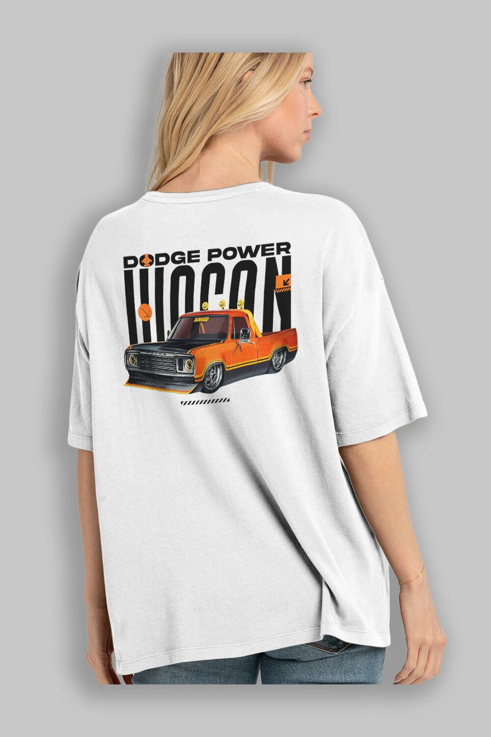 DODGE POWER WAGON Arka Baskılı Oversize t-shirt Erkek Kadın Unisex %100 Pamuk Bisiklet Yaka tişort