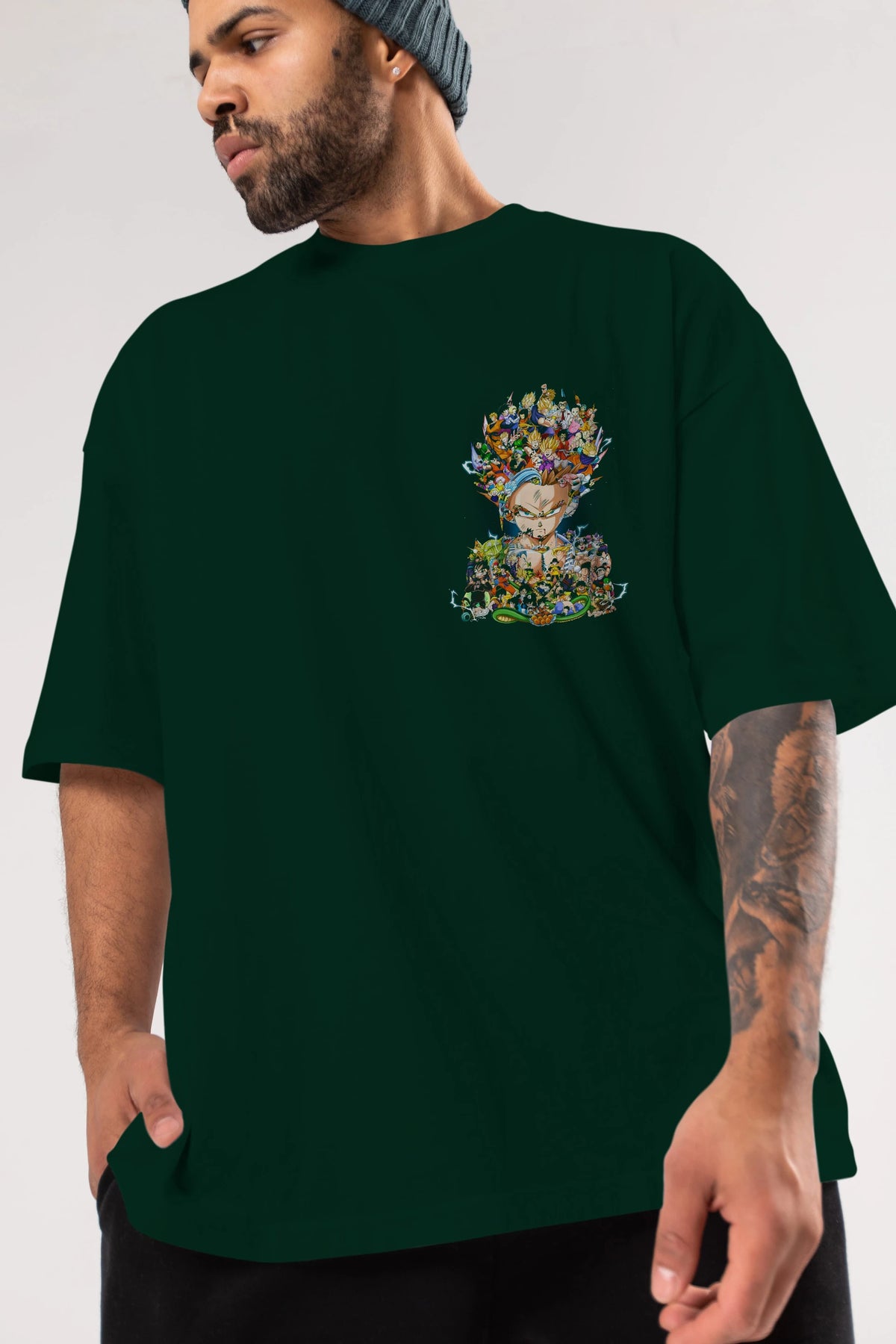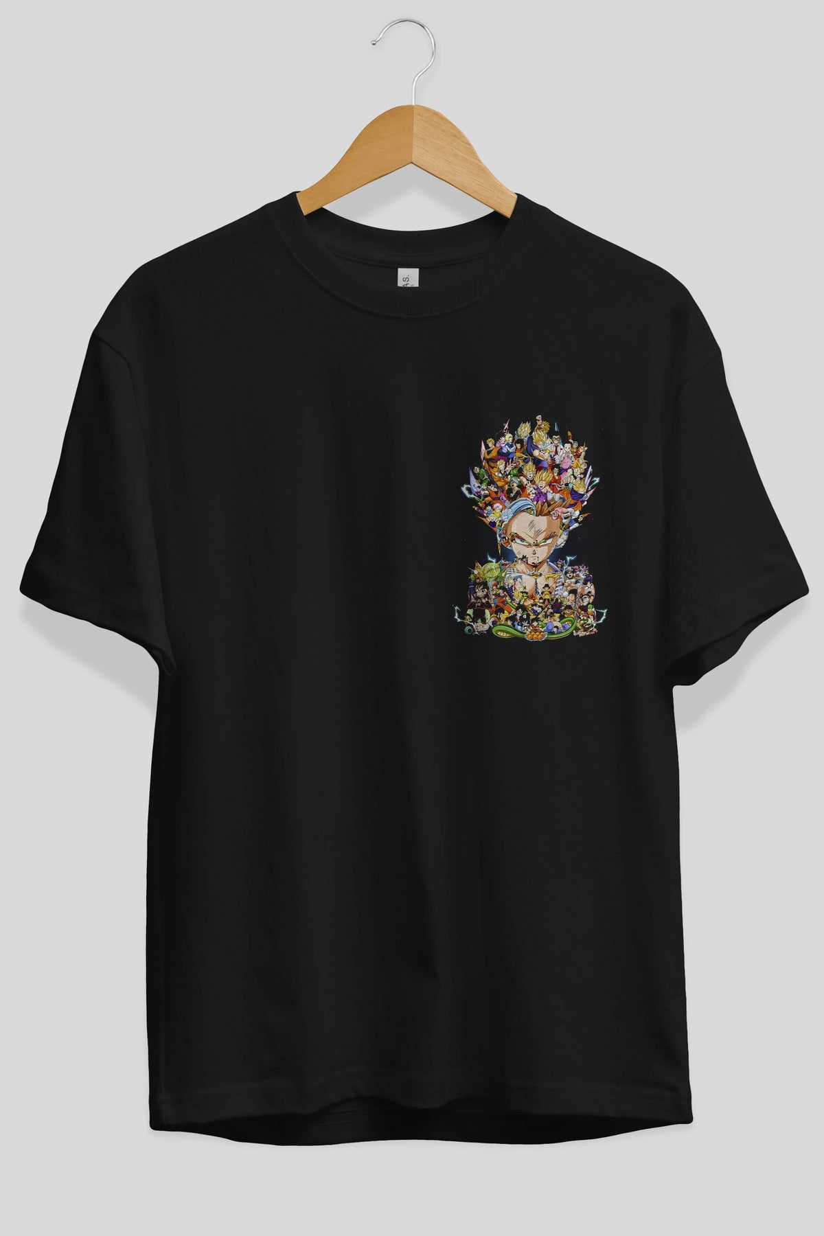 DRAGON BALL ART (2) Ön Sol Baskılı Oversize t-shirt Erkek Kadın Unisex %100 Pamuk Bisiklet Yaka tişort