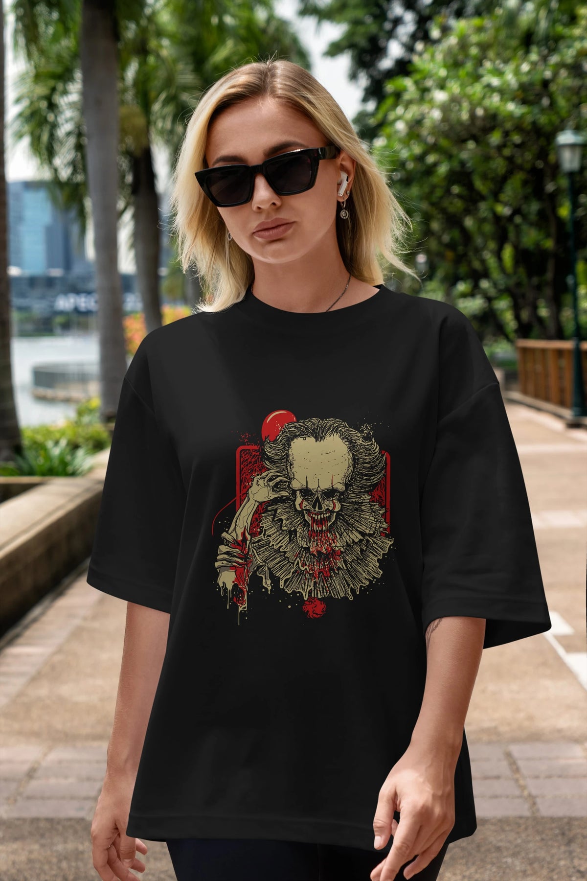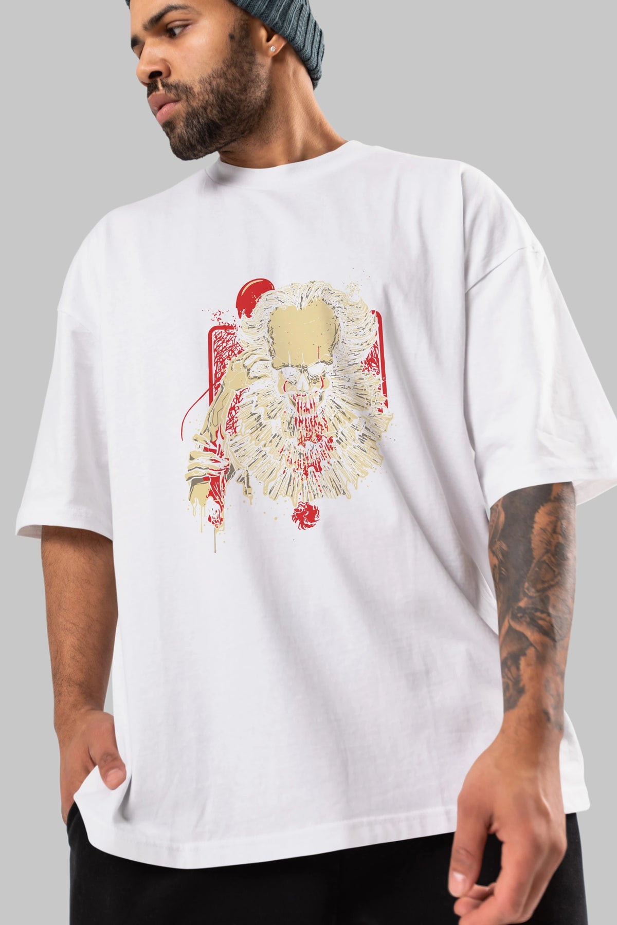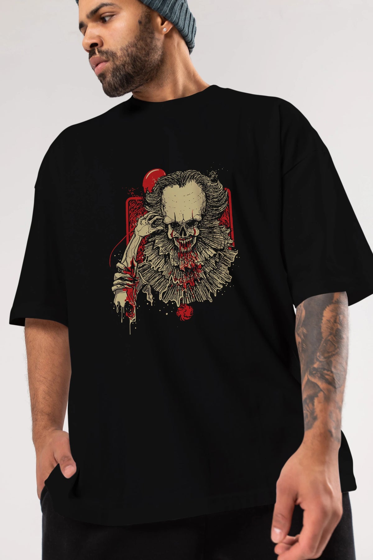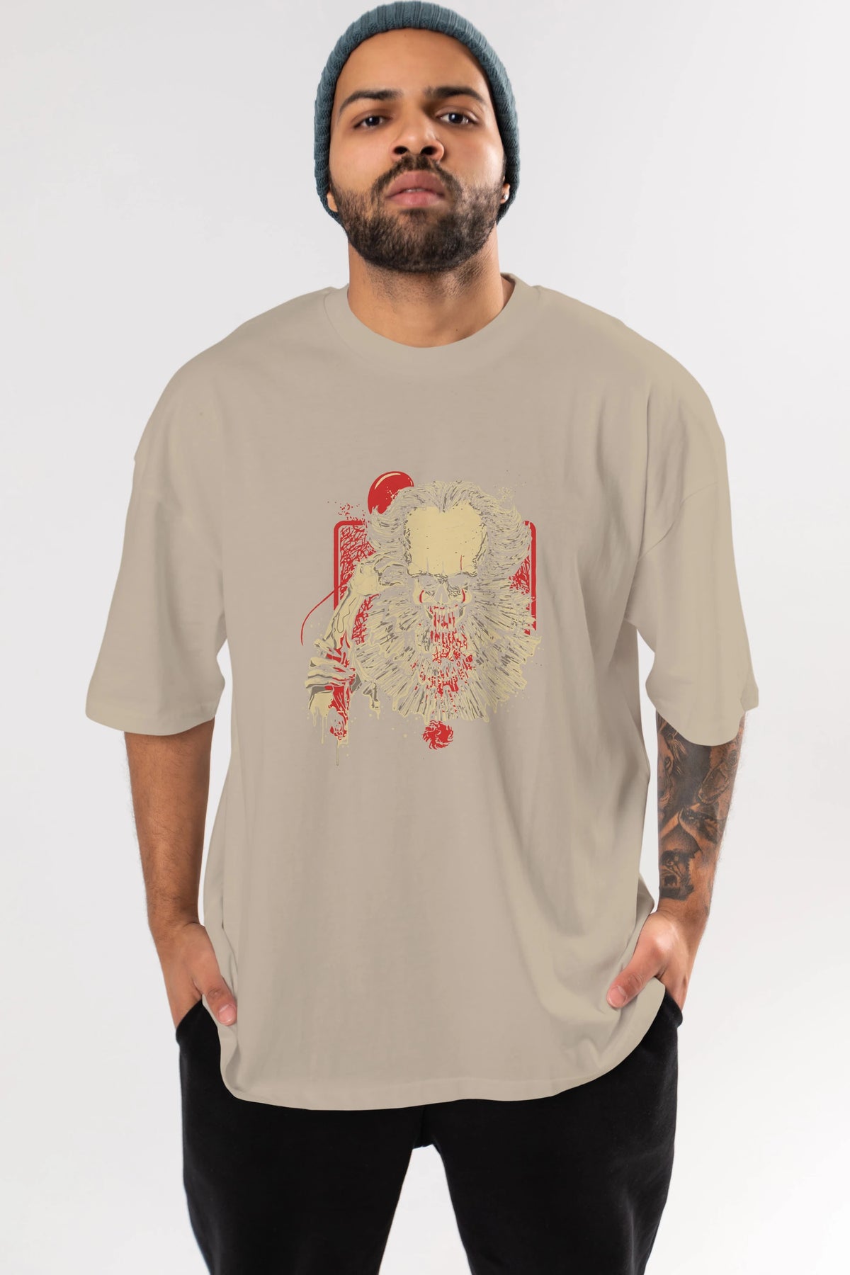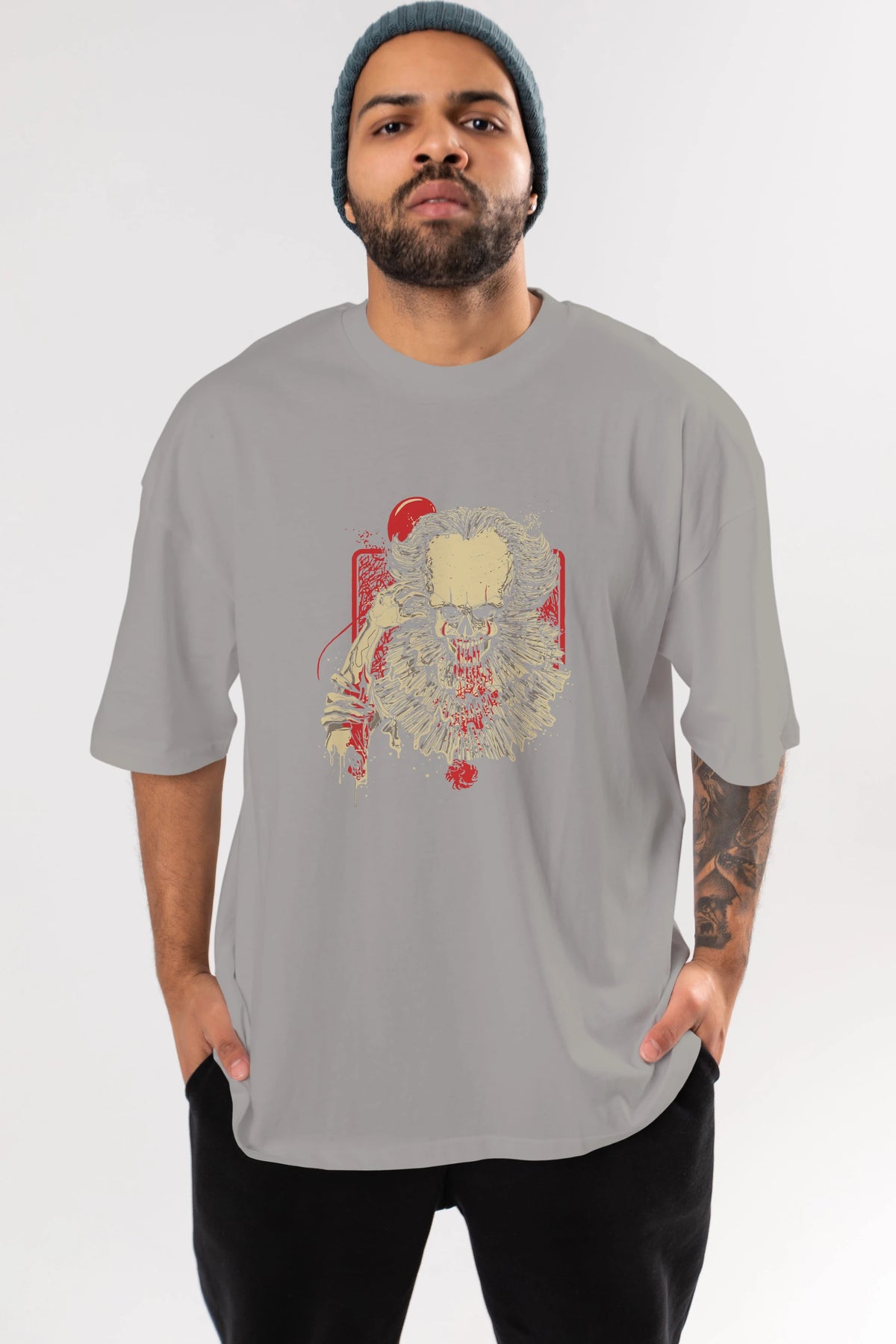 it (2) Ön Baskılı Oversize t-shirt Erkek Kadın Unisex %100 Pamuk Bisiklet Yaka tişort