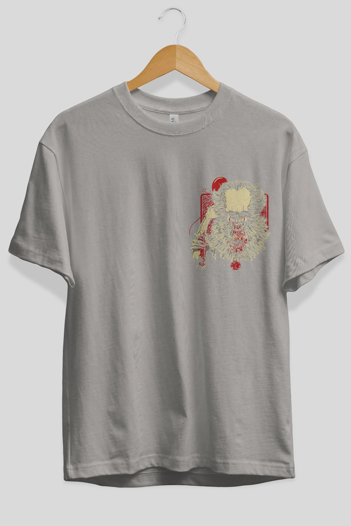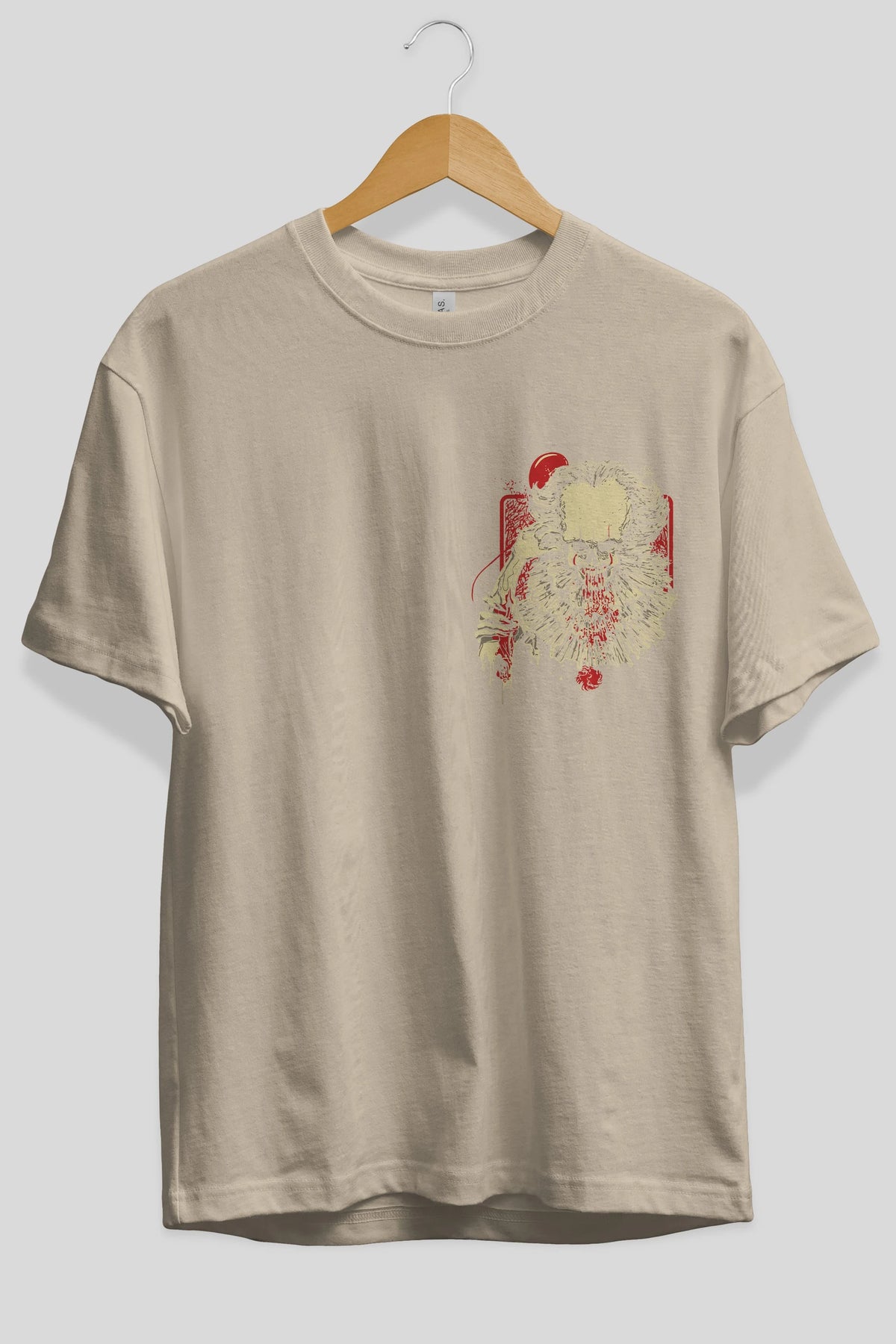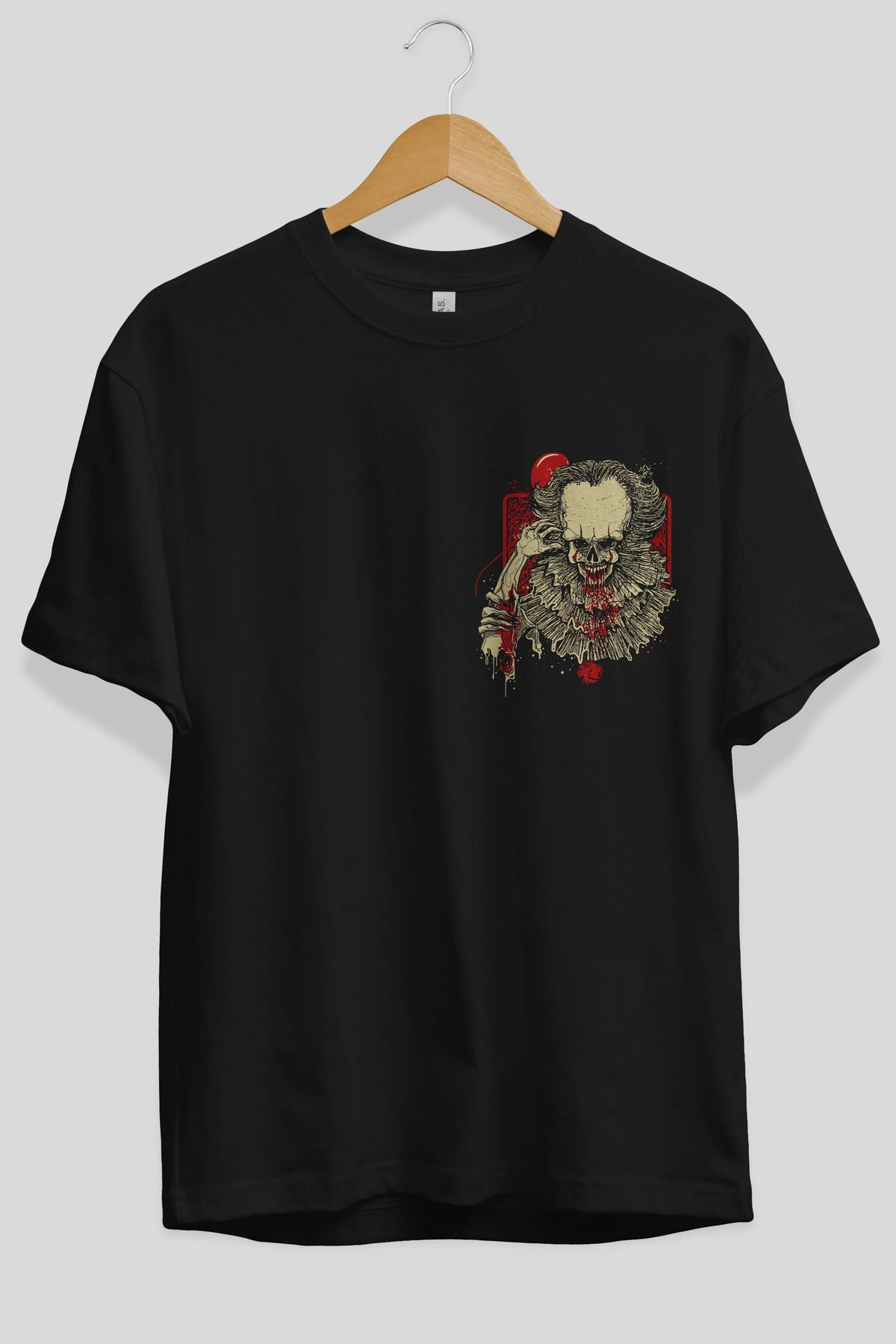 it (2) Ön Sol Baskılı Oversize t-shirt Erkek Kadın Unisex %100 Pamuk Bisiklet Yaka tişort