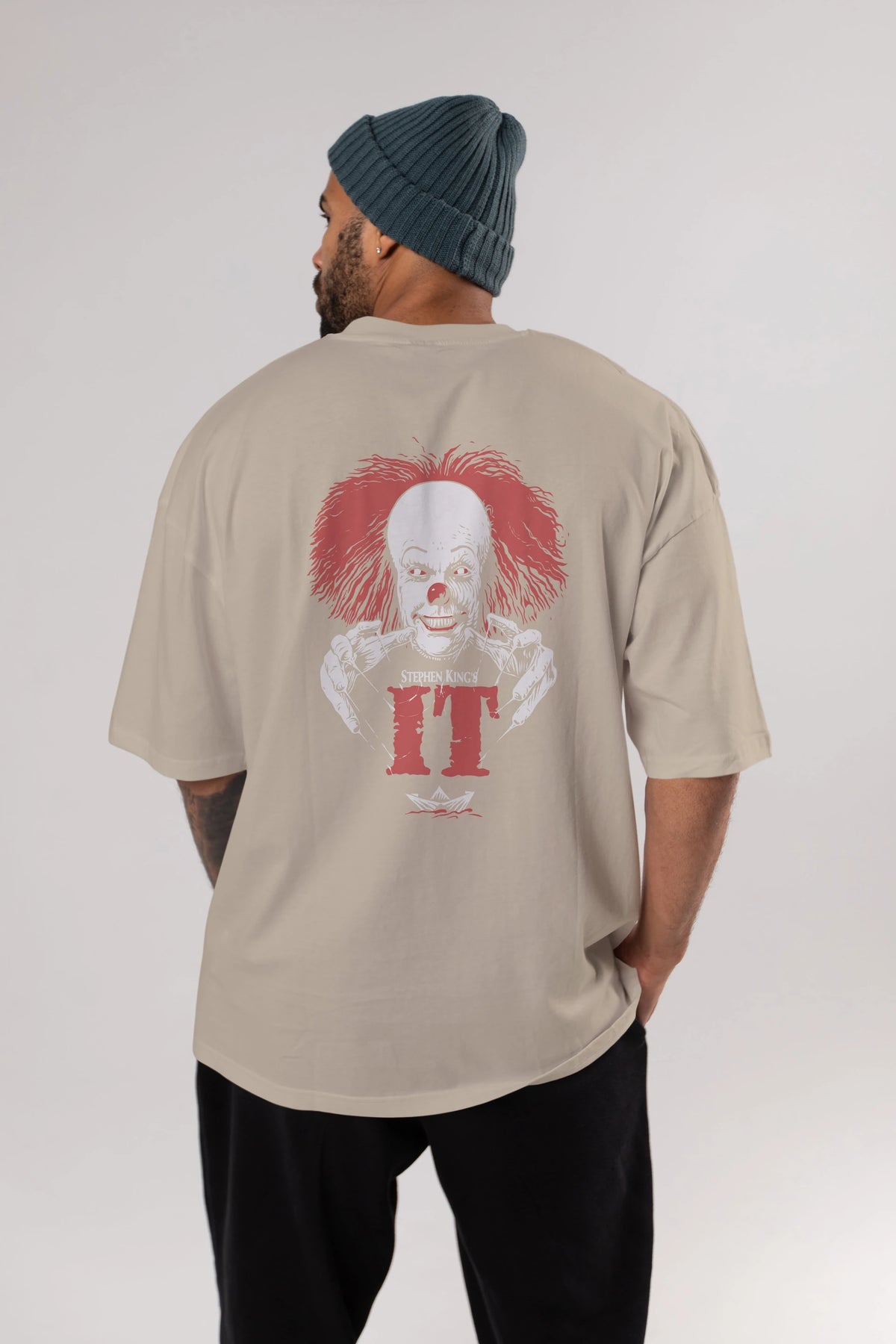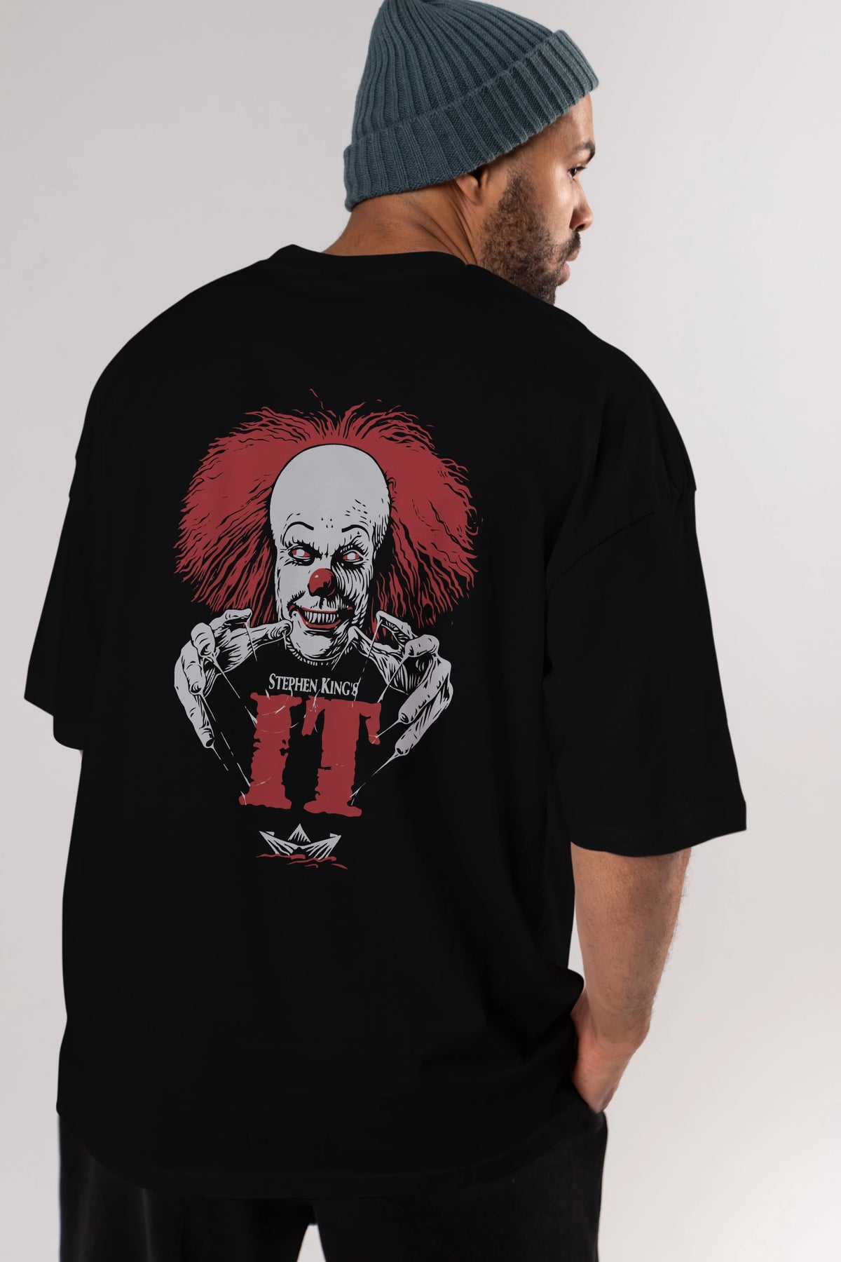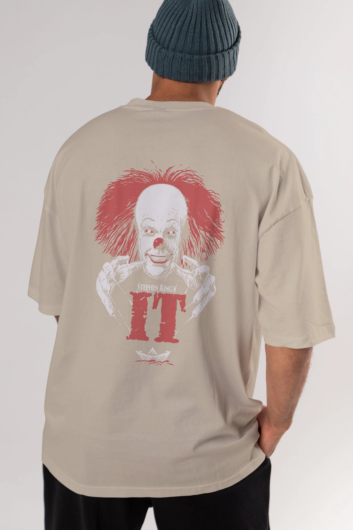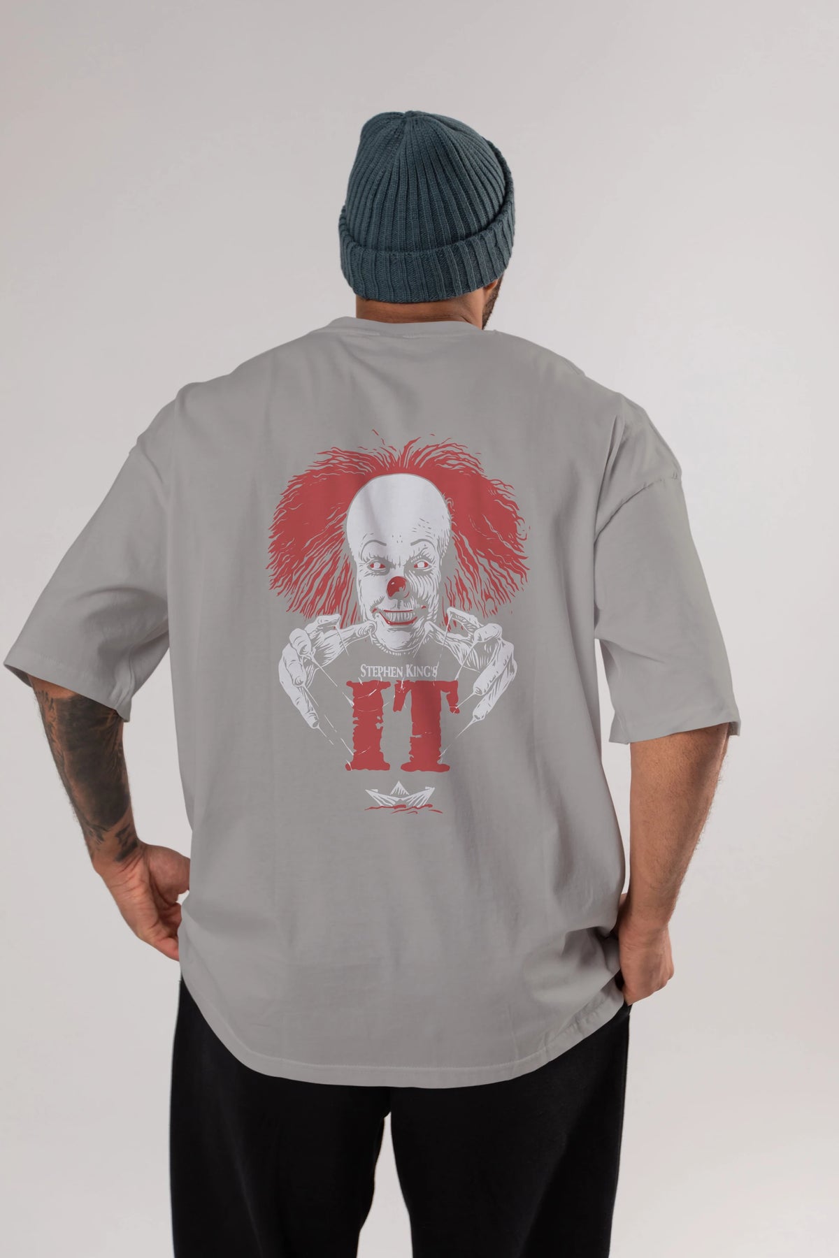 it Arka Baskılı Oversize t-shirt Erkek Kadın Unisex %100 Pamuk Bisiklet Yaka tişort
