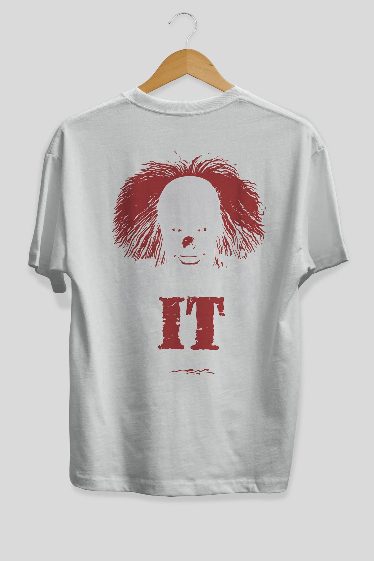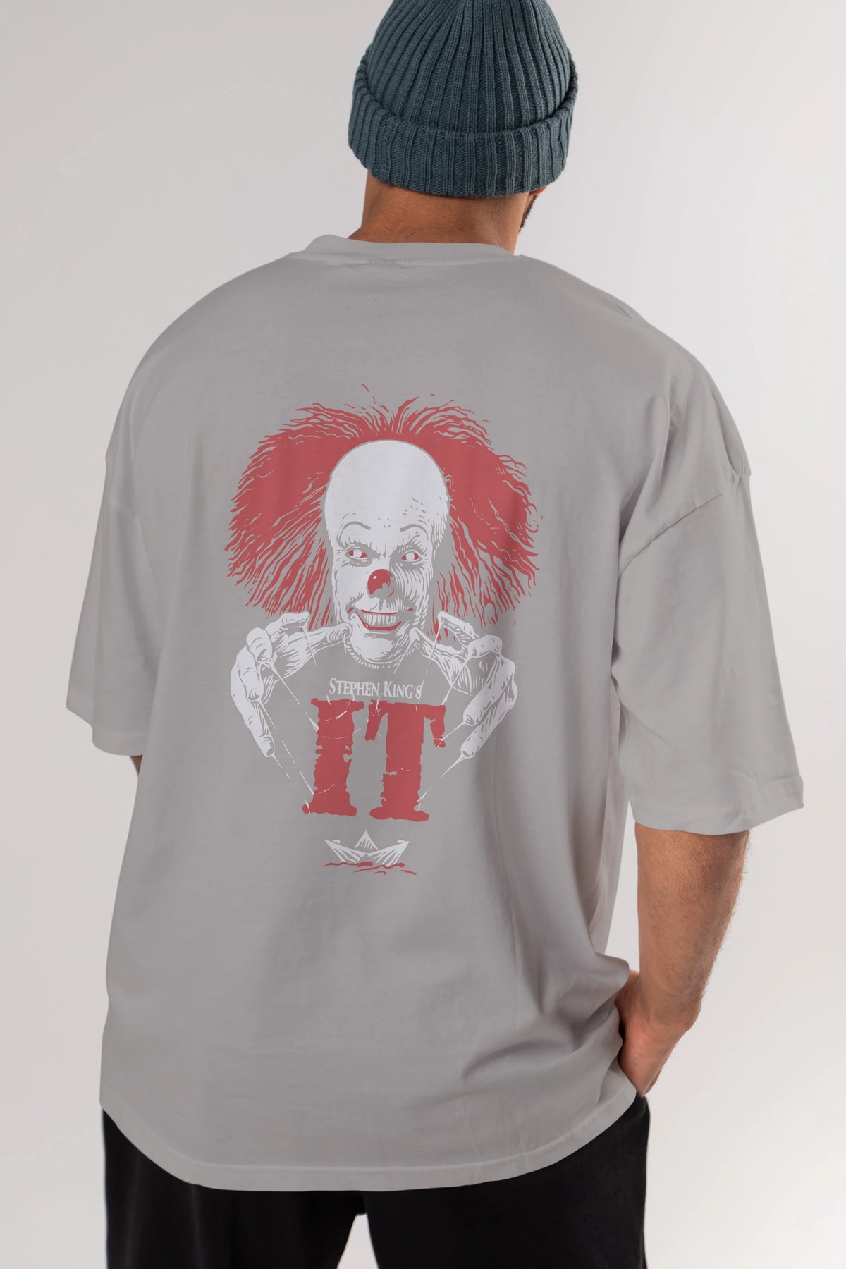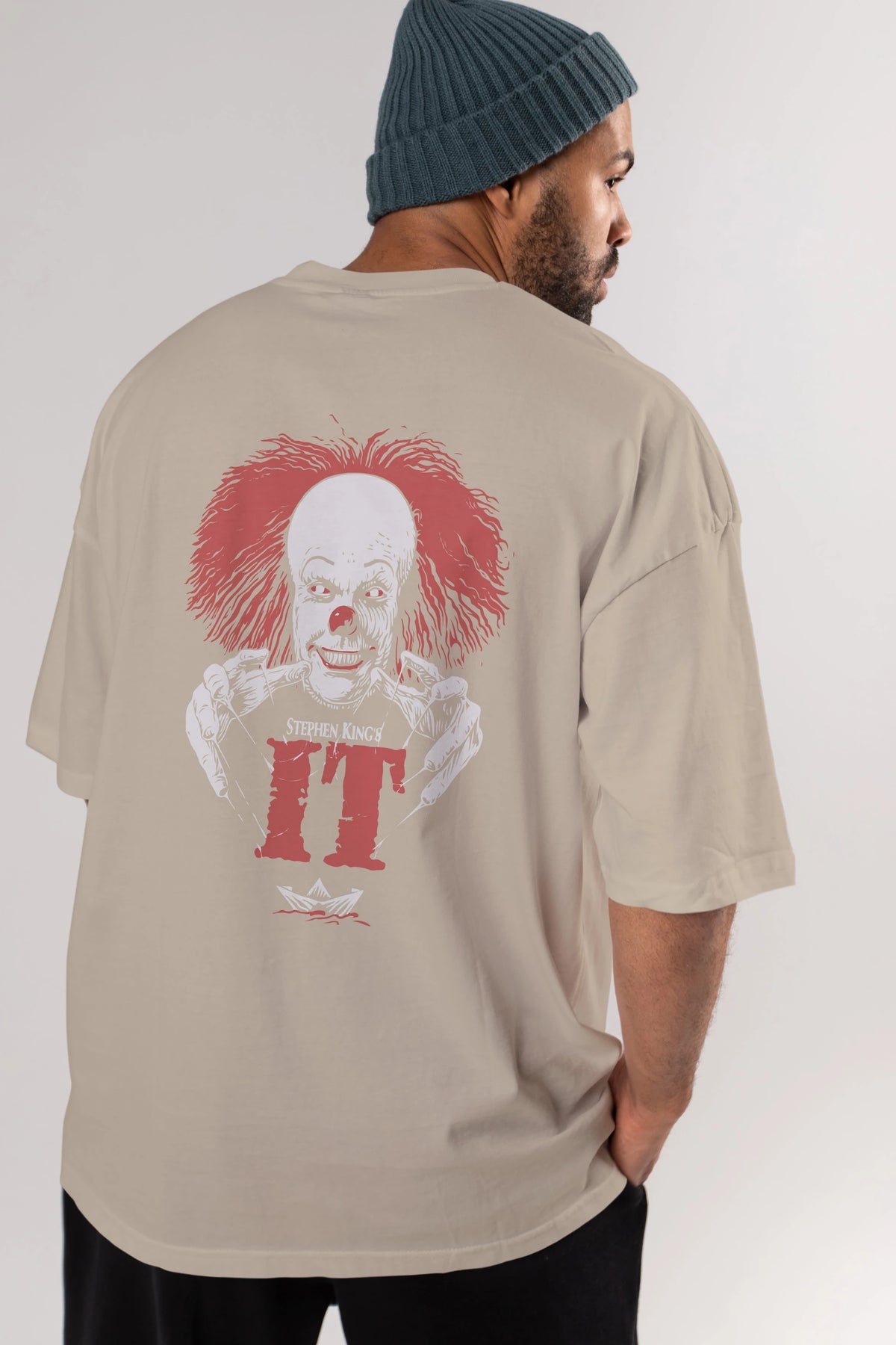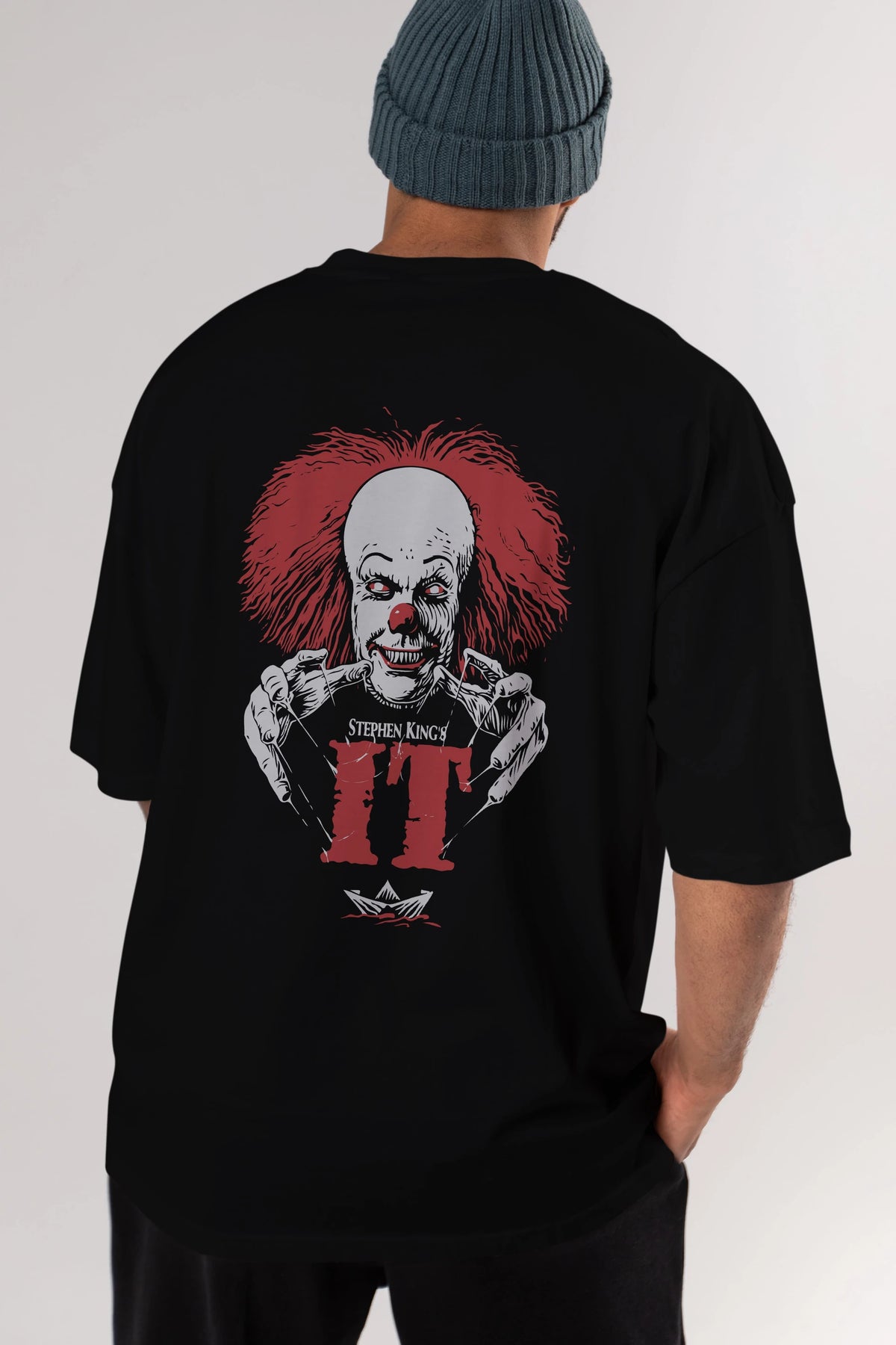 it Arka Baskılı Oversize t-shirt Erkek Kadın Unisex %100 Pamuk Bisiklet Yaka tişort
