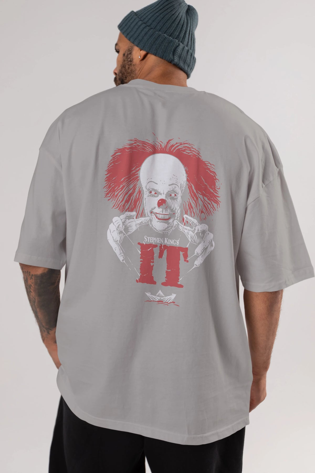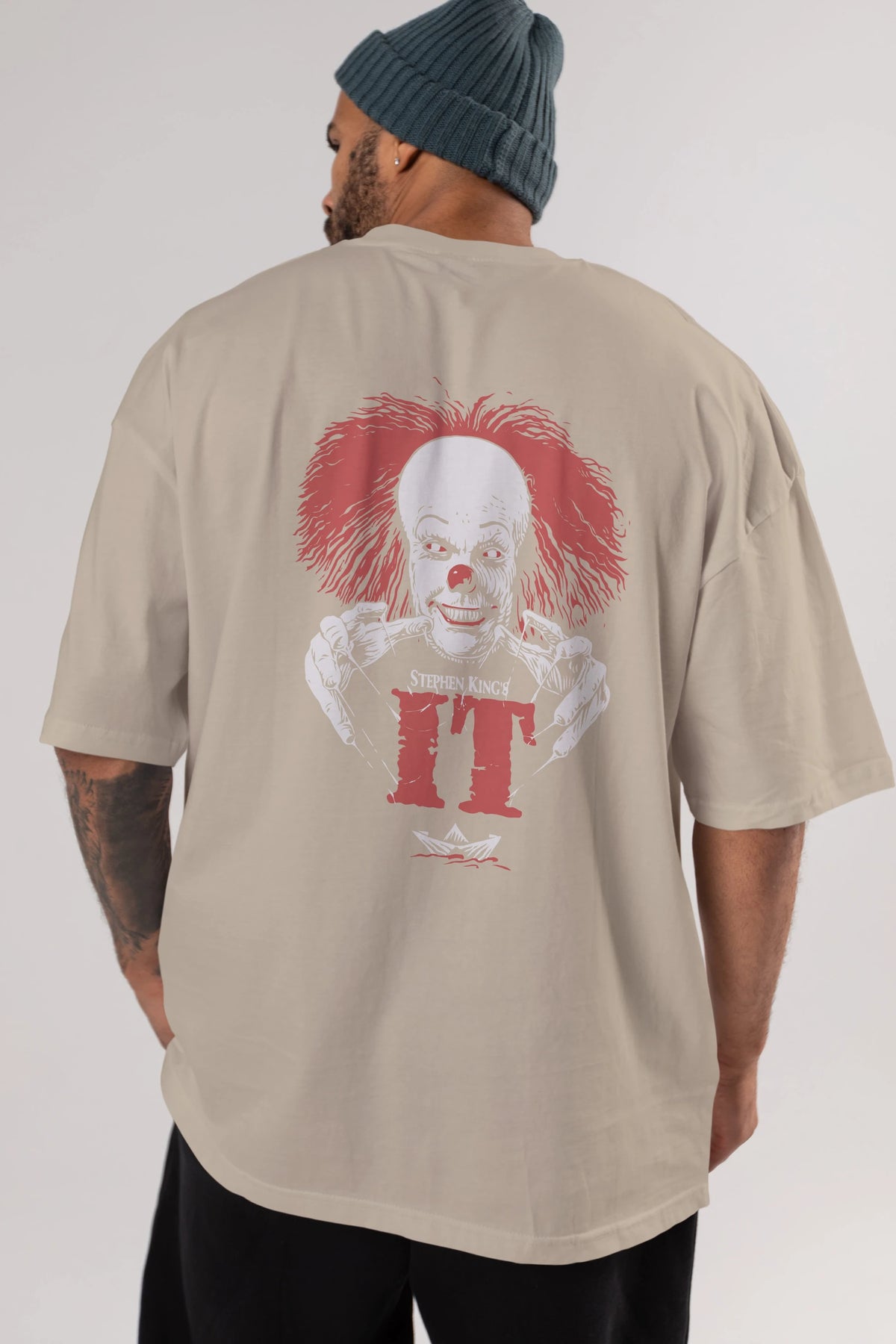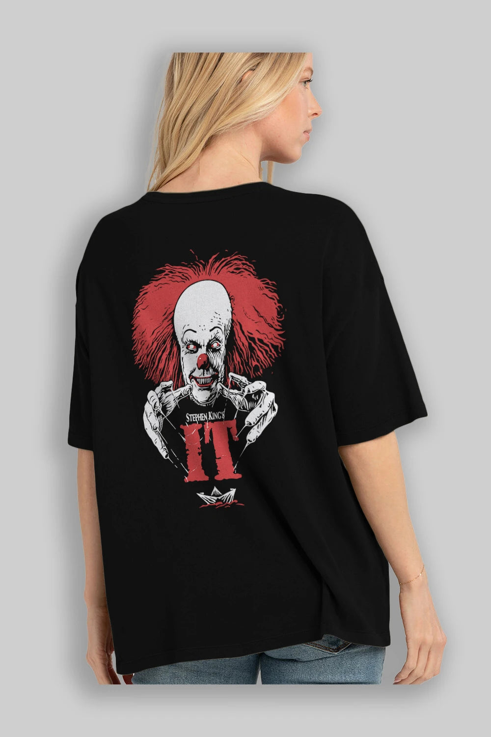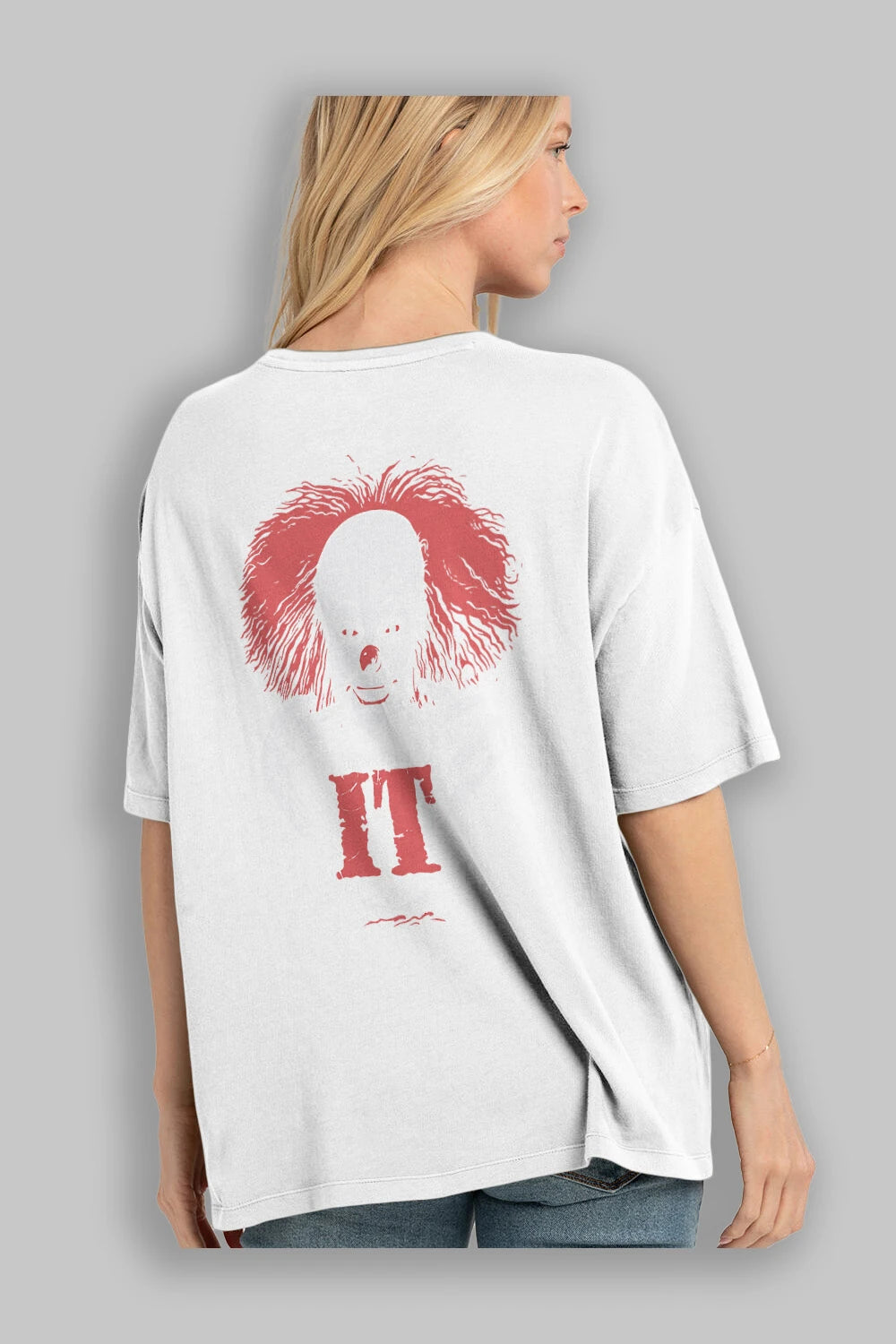 it Arka Baskılı Oversize t-shirt Erkek Kadın Unisex %100 Pamuk Bisiklet Yaka tişort