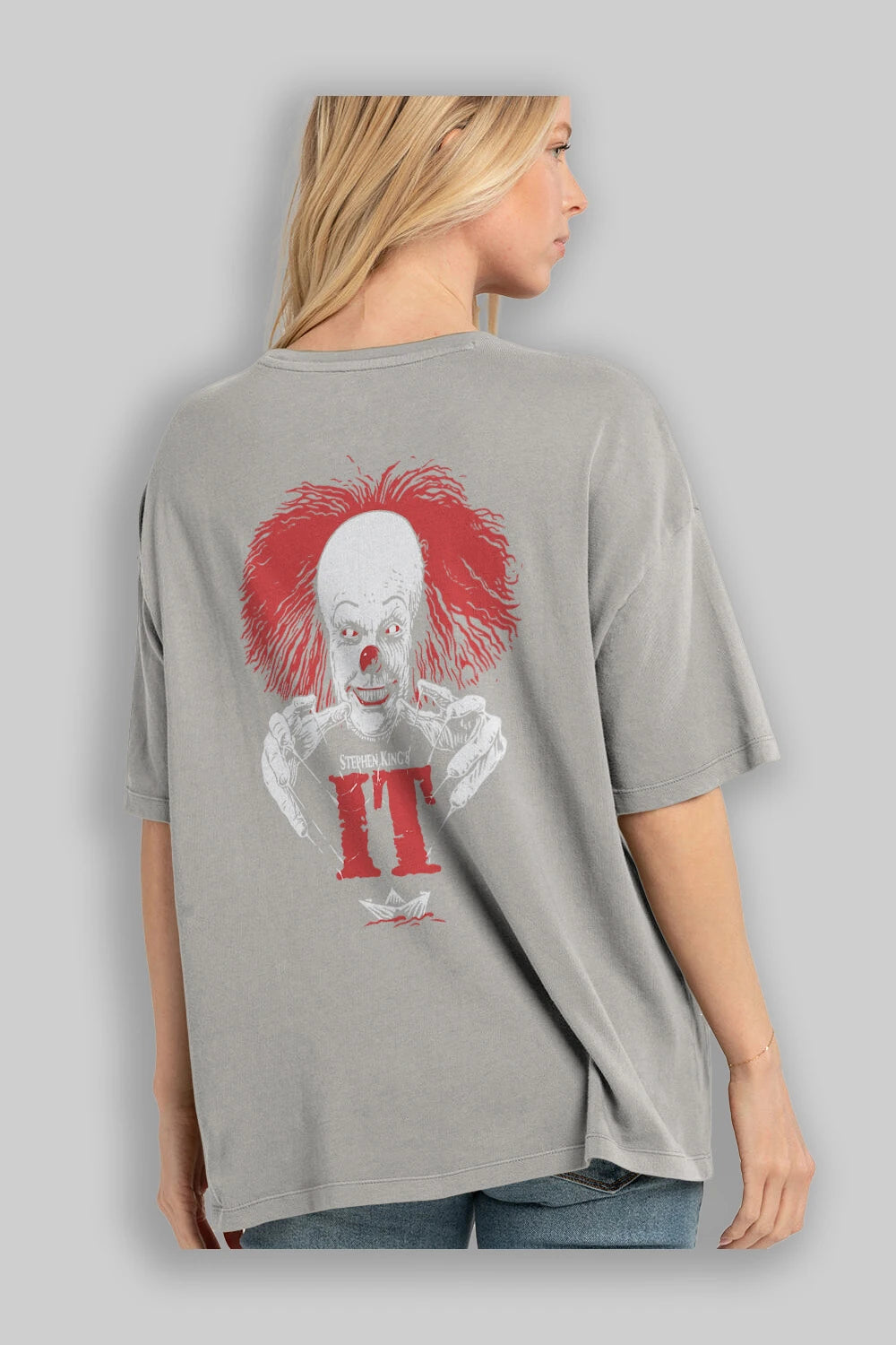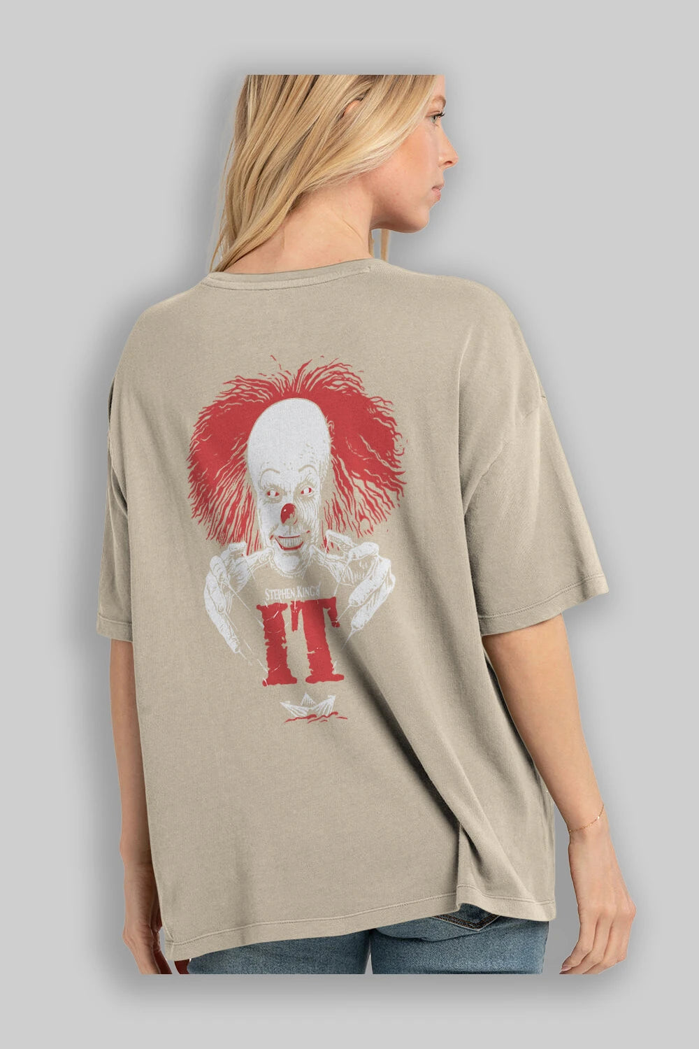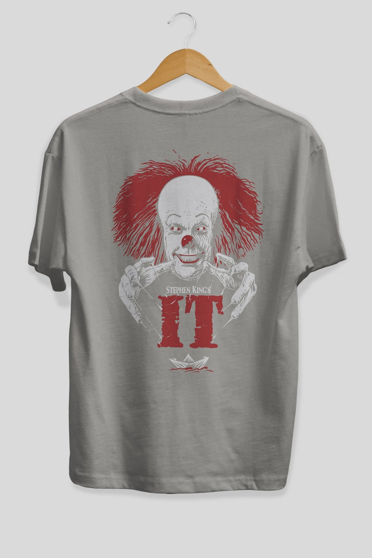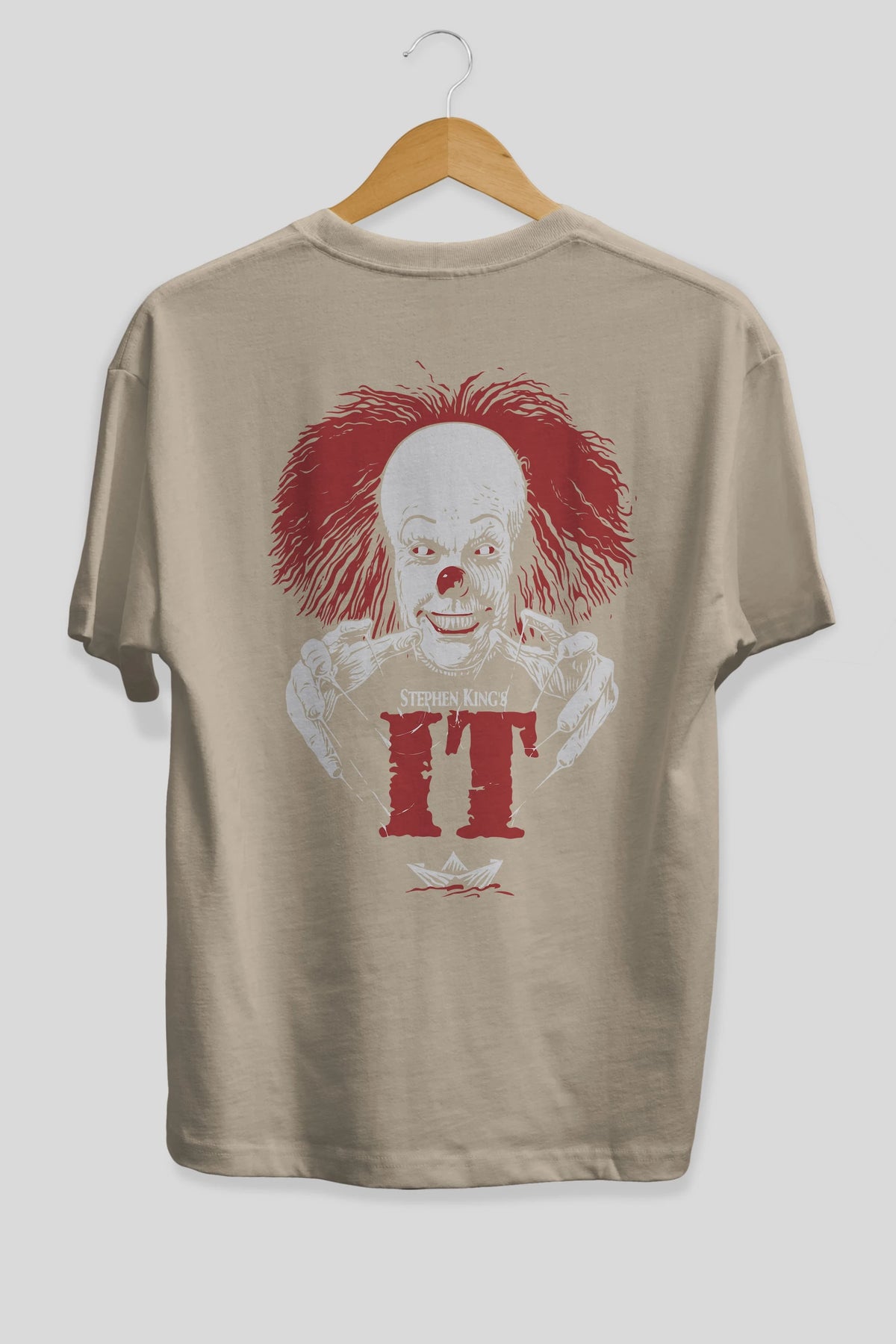 it Arka Baskılı Oversize t-shirt Erkek Kadın Unisex %100 Pamuk Bisiklet Yaka tişort