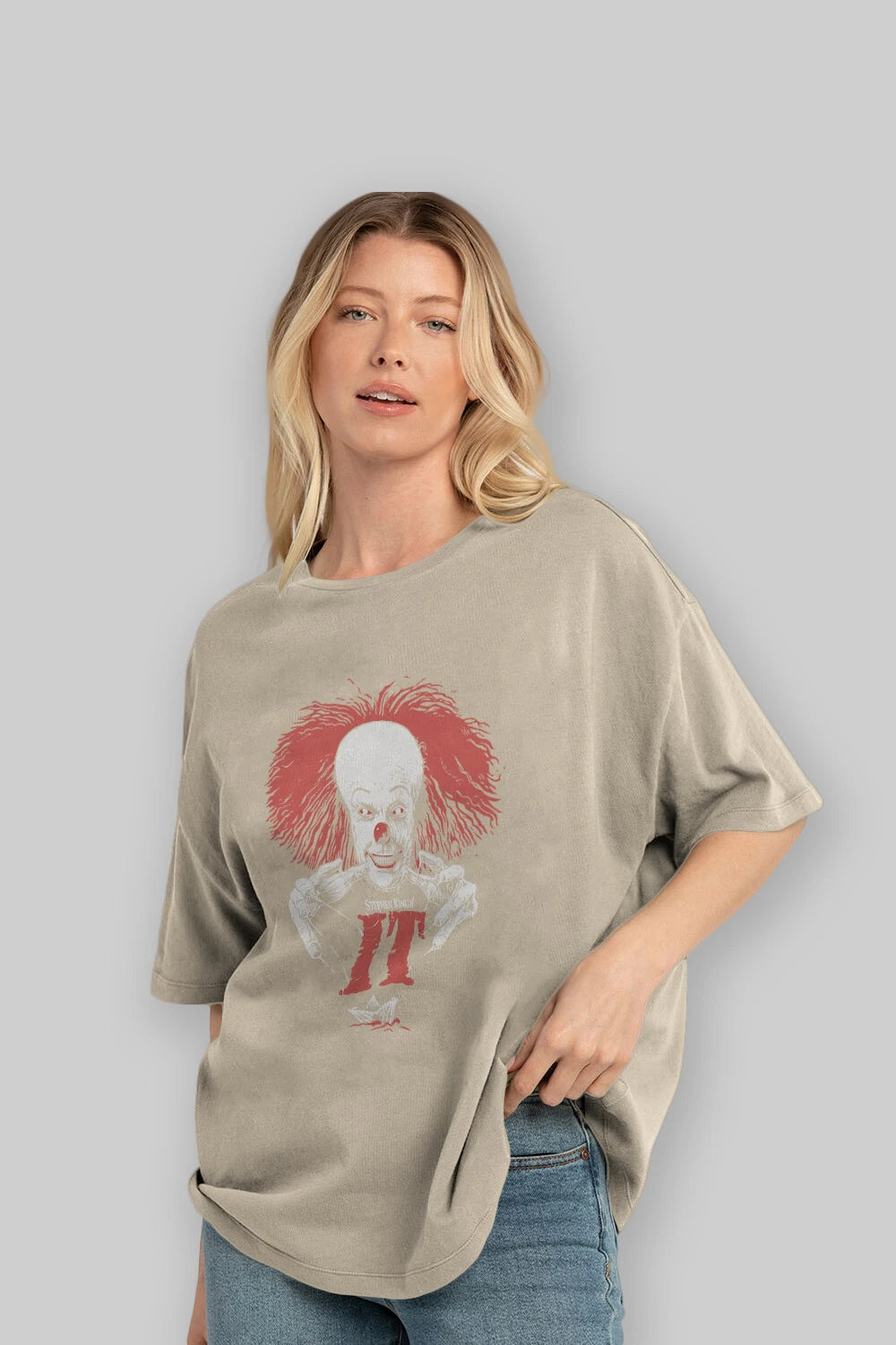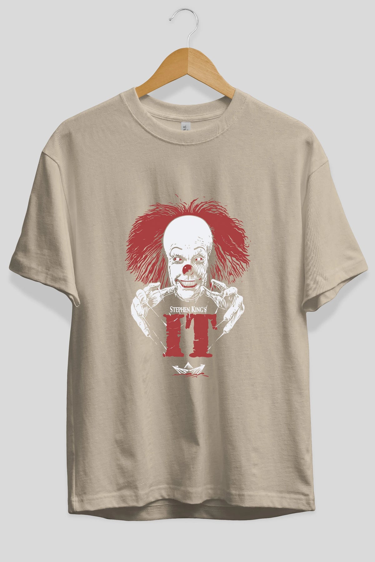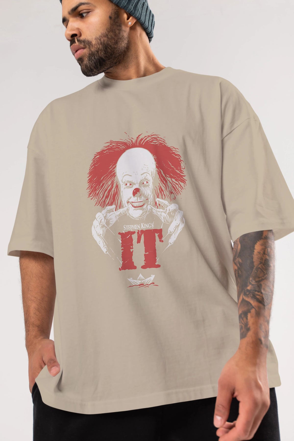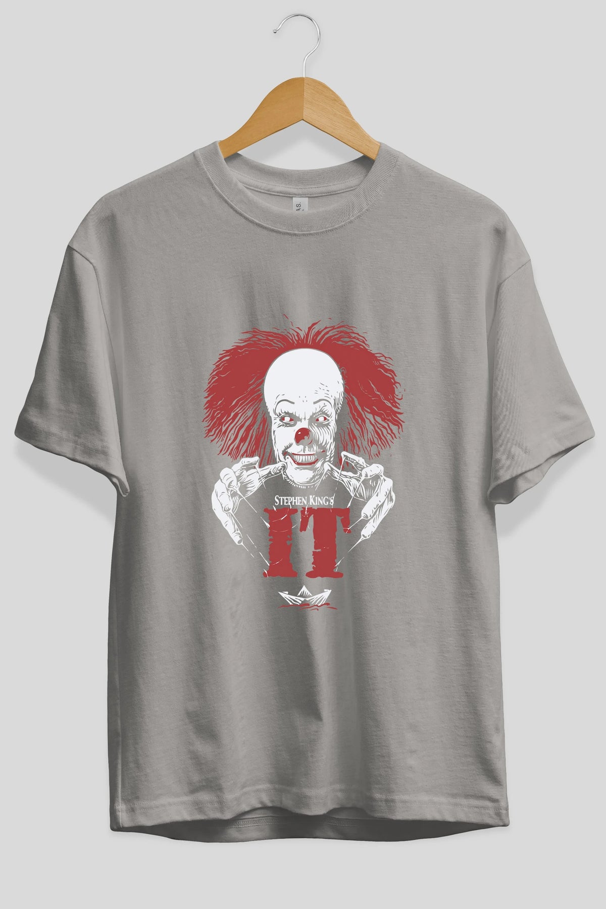 it Ön Baskılı Oversize t-shirt Erkek Kadın Unisex %100 Pamuk Bisiklet Yaka tişort