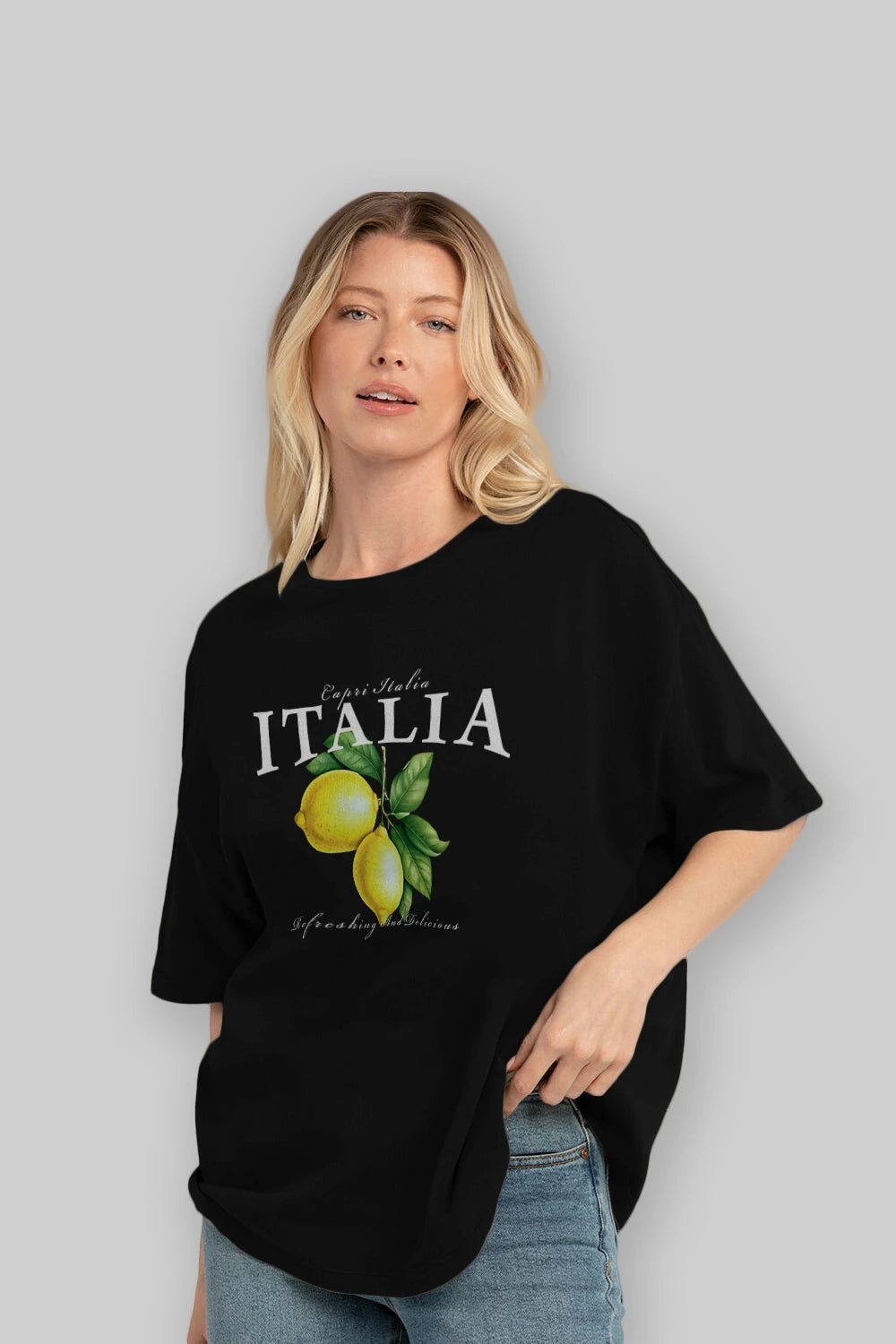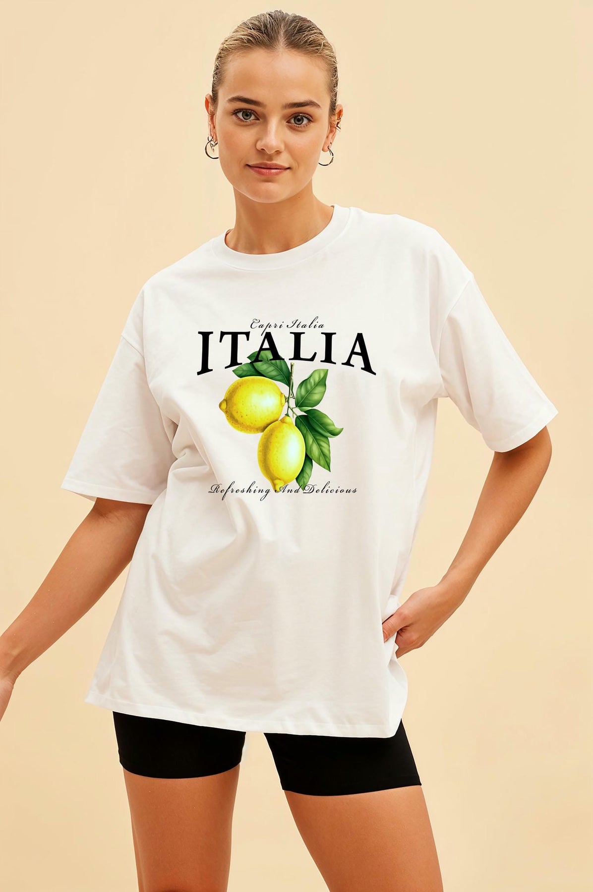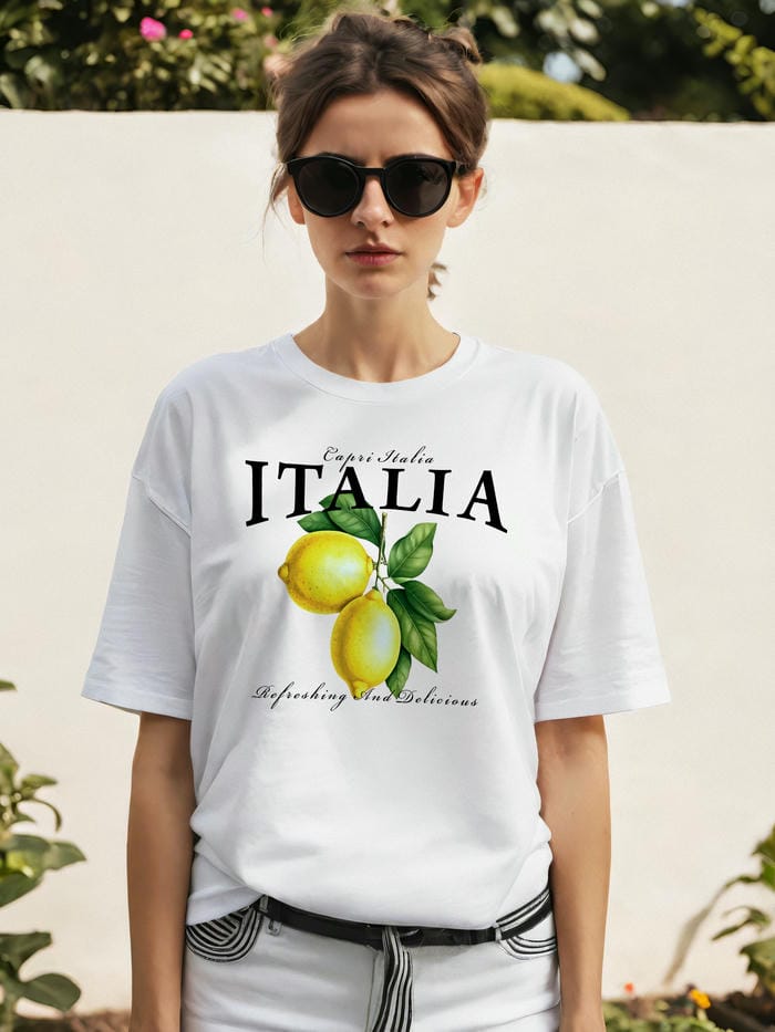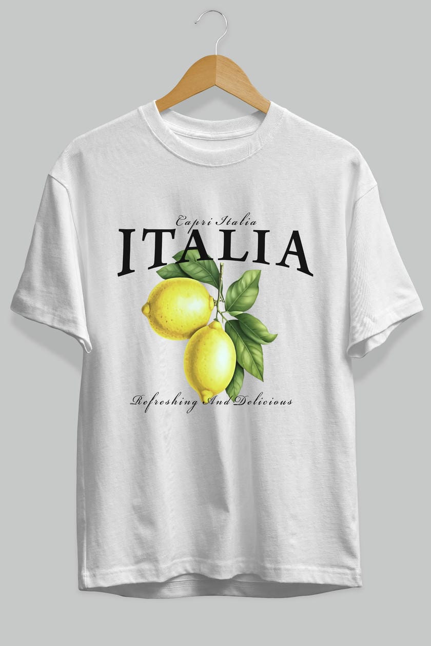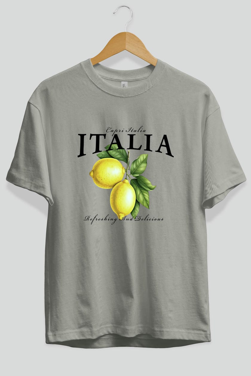 italia Lemon Ön Baskılı Oversize t-shirt Erkek Kadın Pamuk Bisiklet Yaka tişort