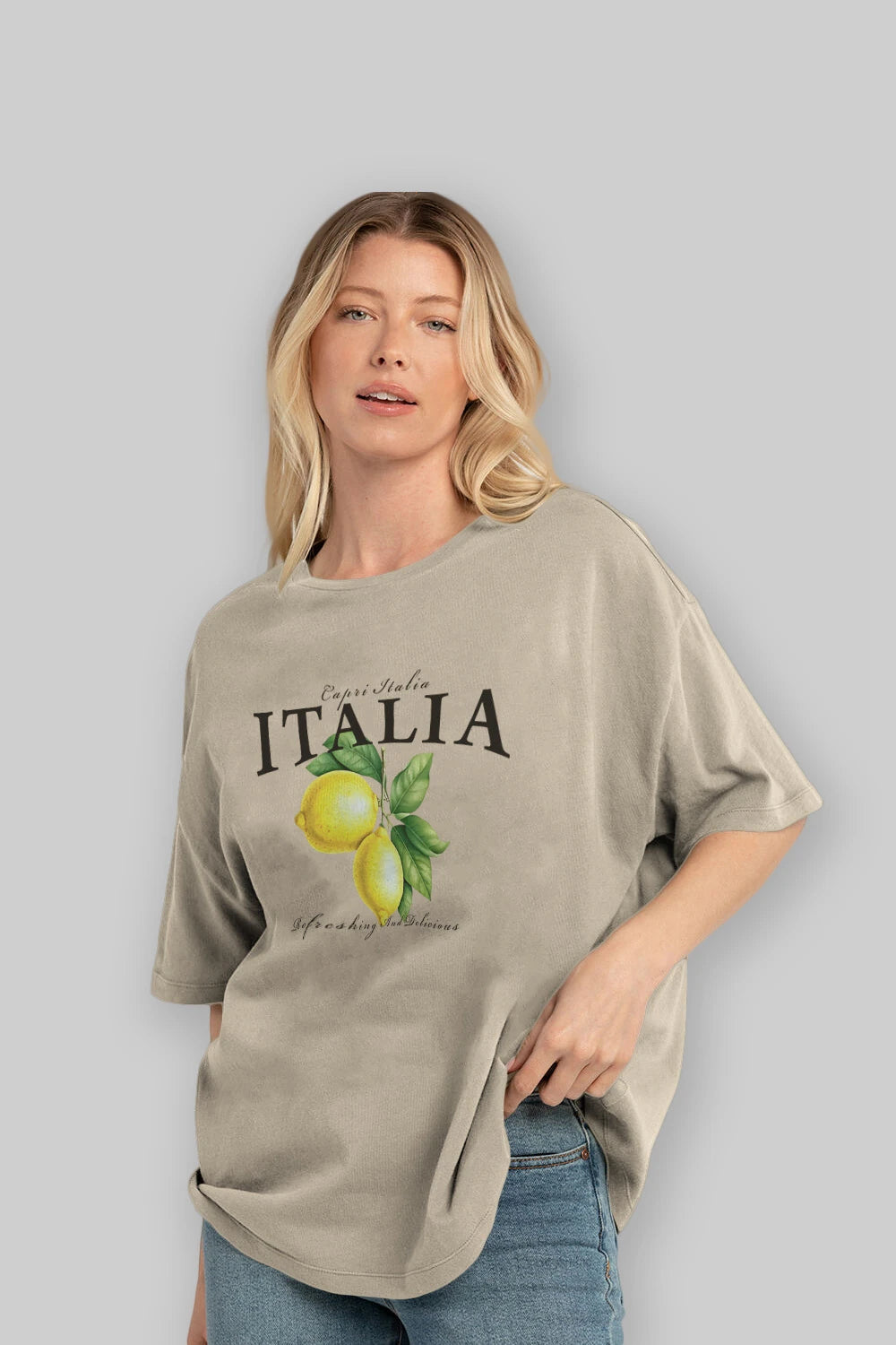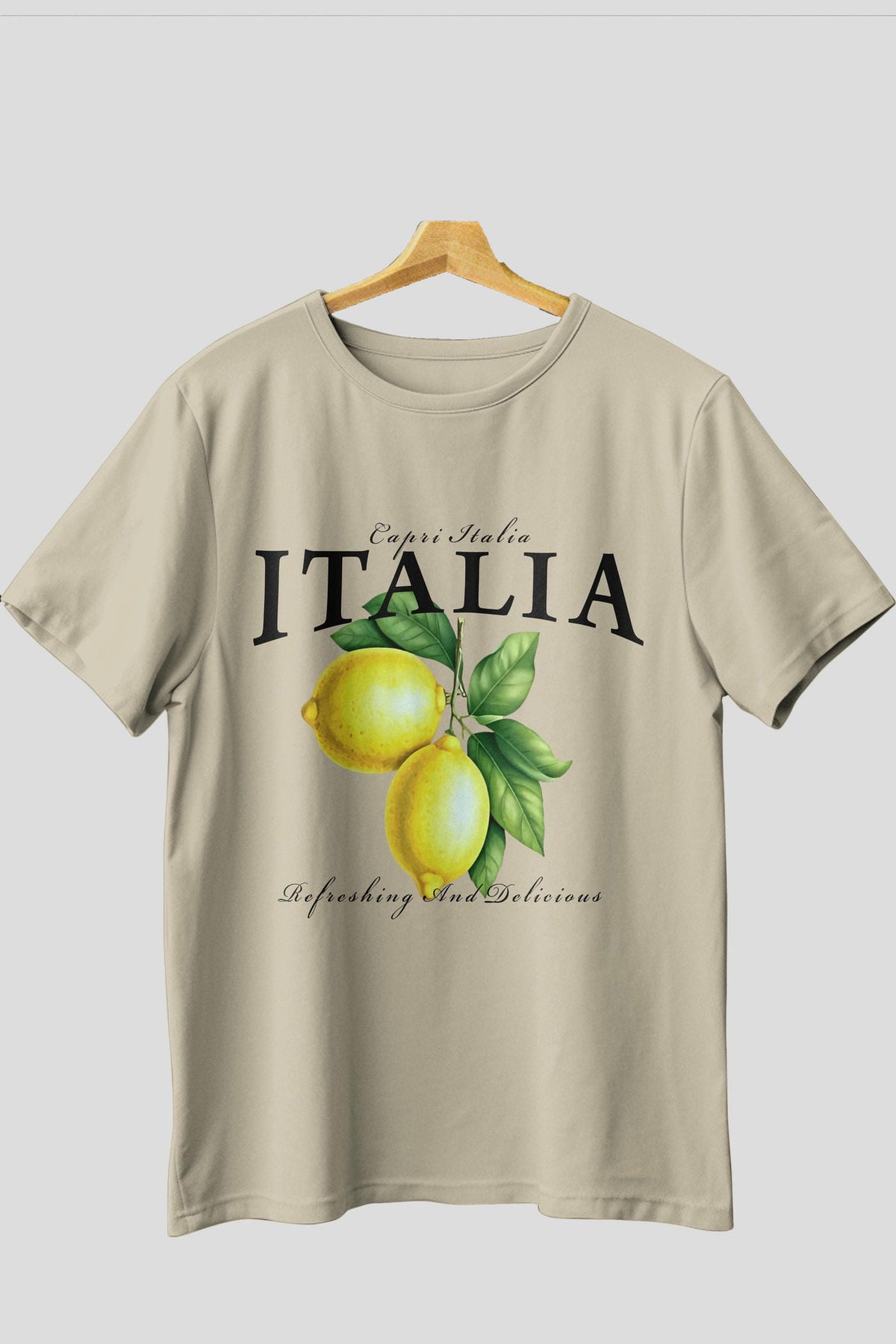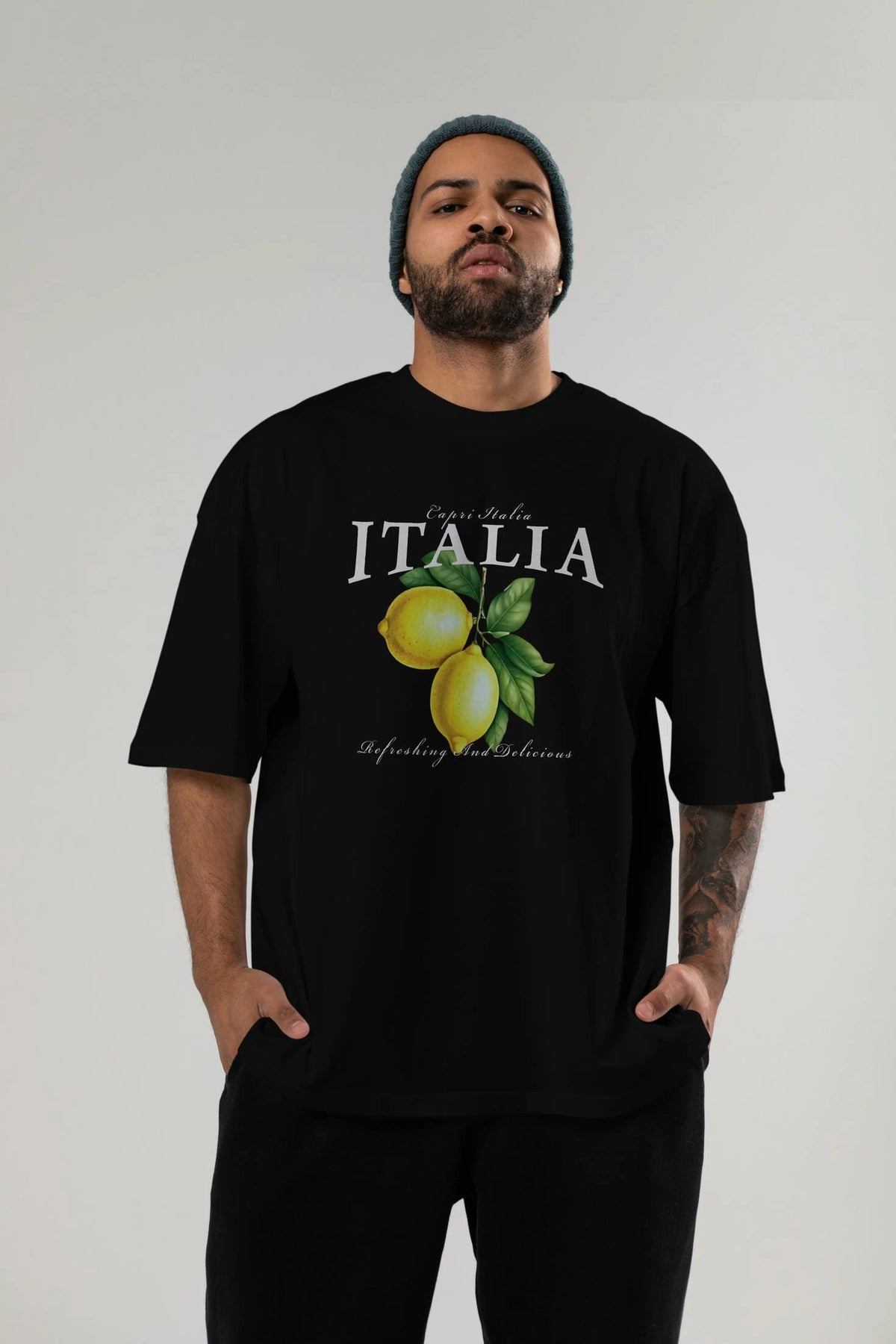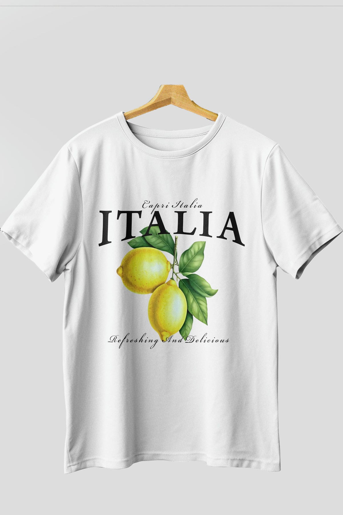 italia Lemon Ön Baskılı Oversize t-shirt Erkek Kadın Pamuk Bisiklet Yaka tişort