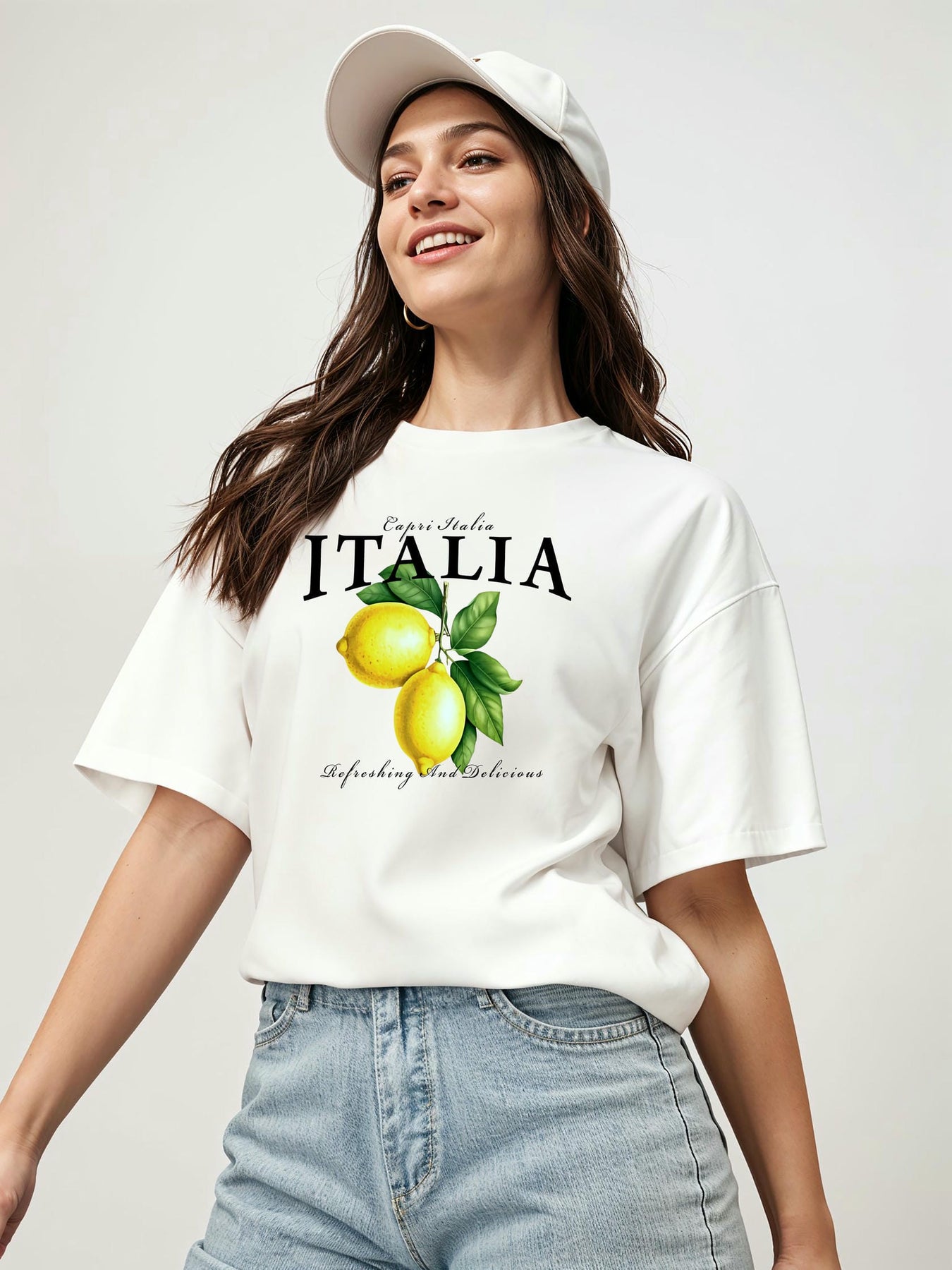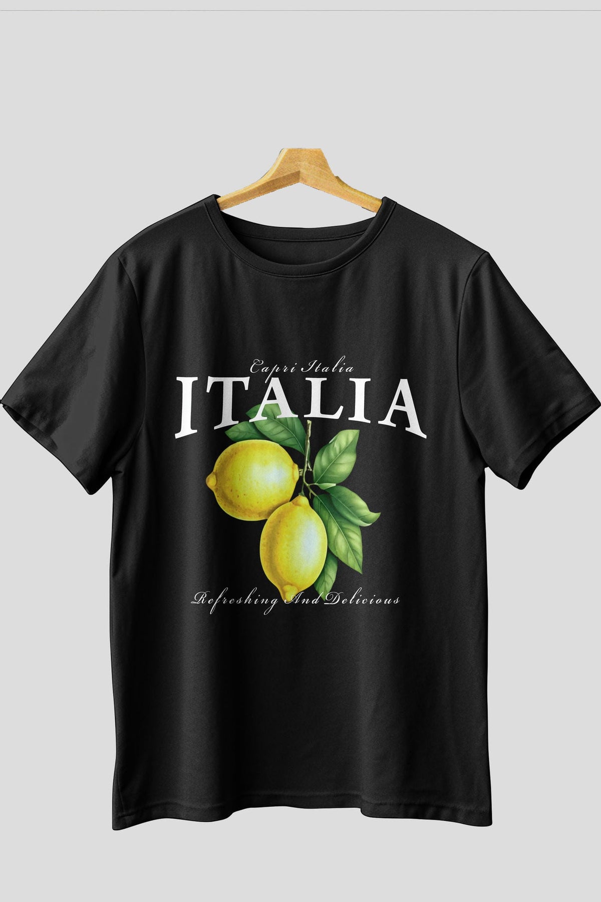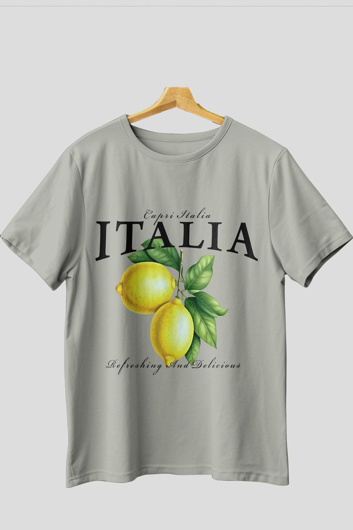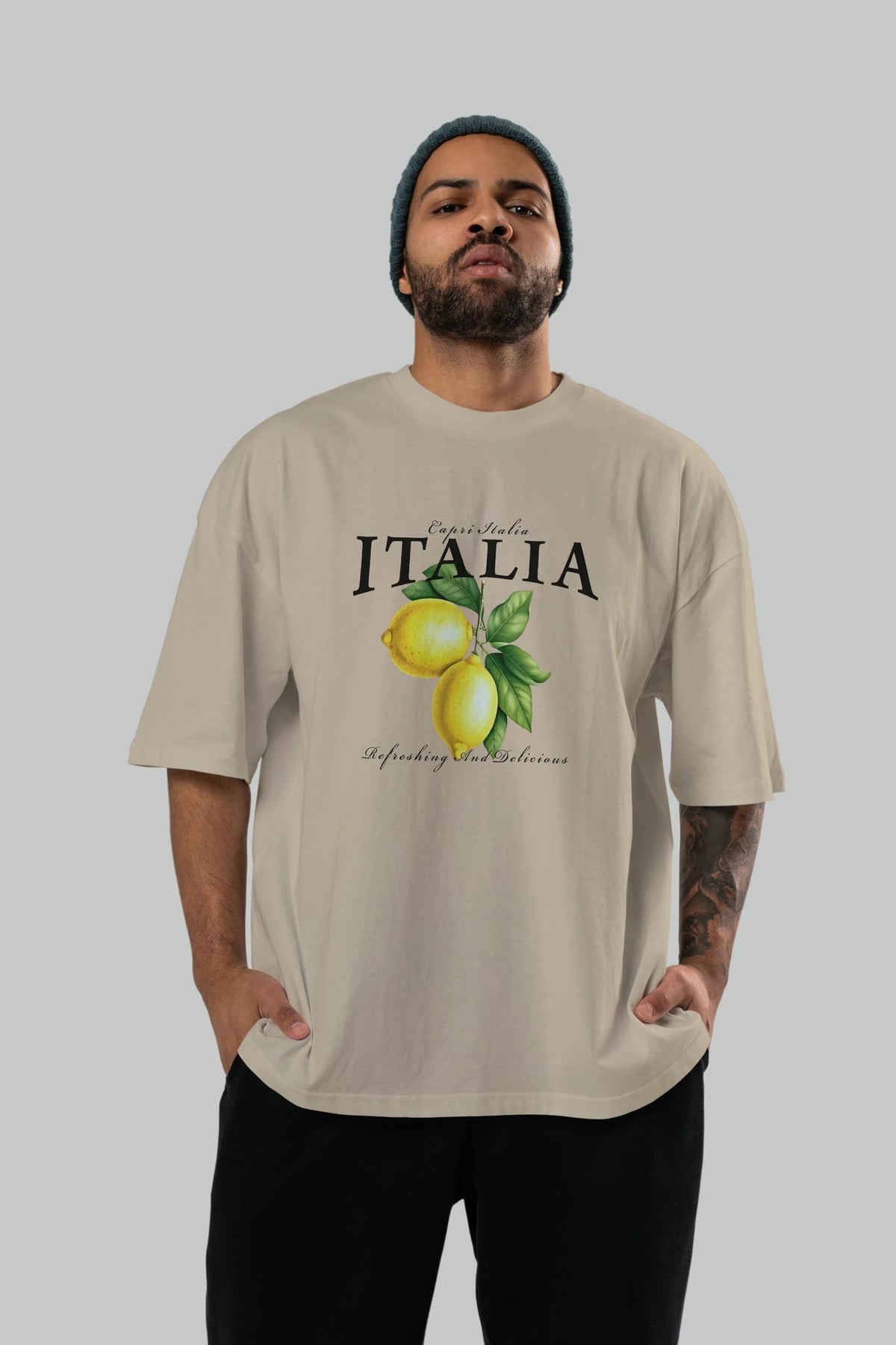 italia Lemon Ön Baskılı Oversize t-shirt Erkek Kadın Pamuk Bisiklet Yaka tişort