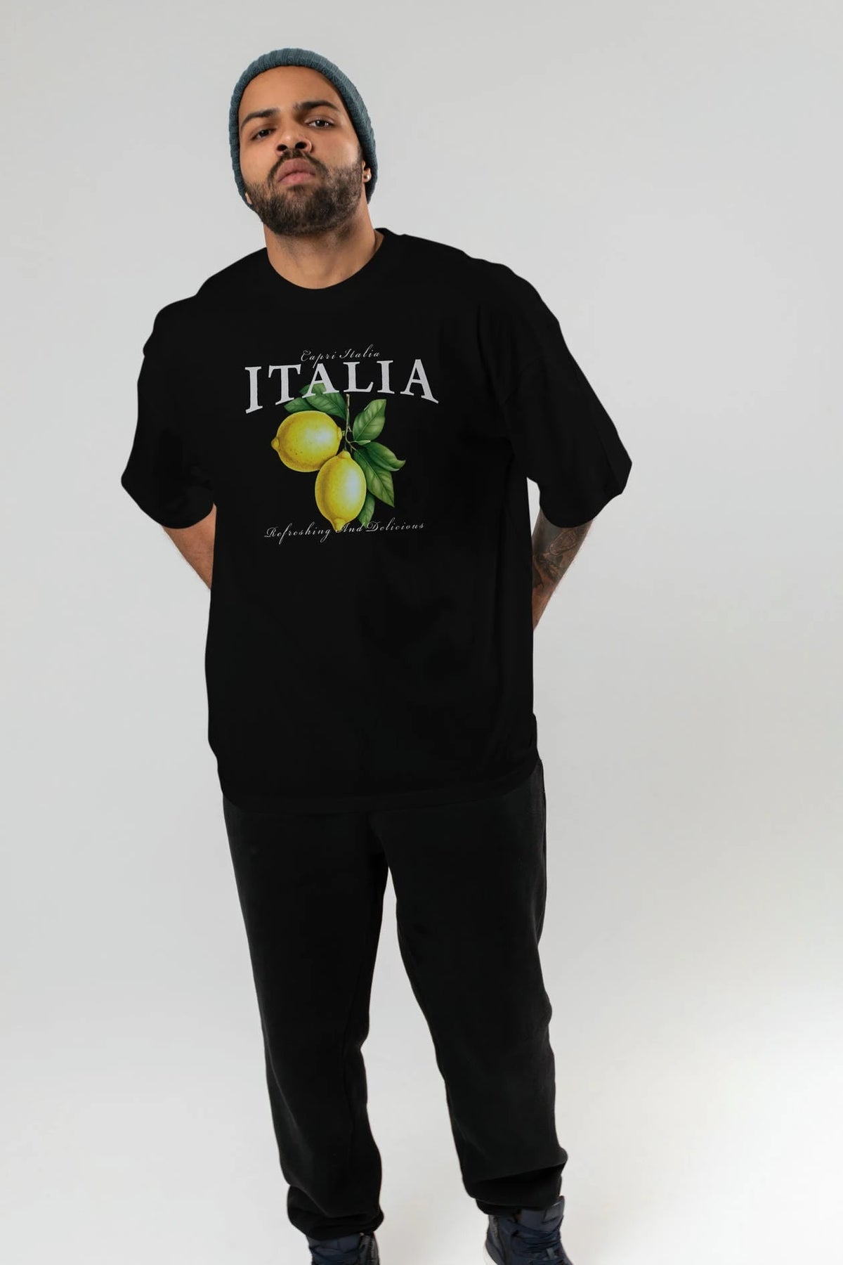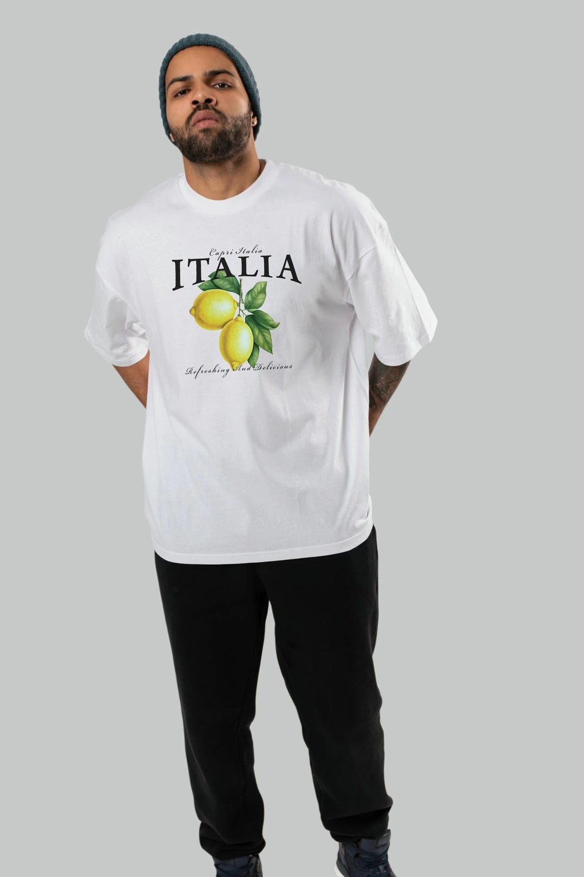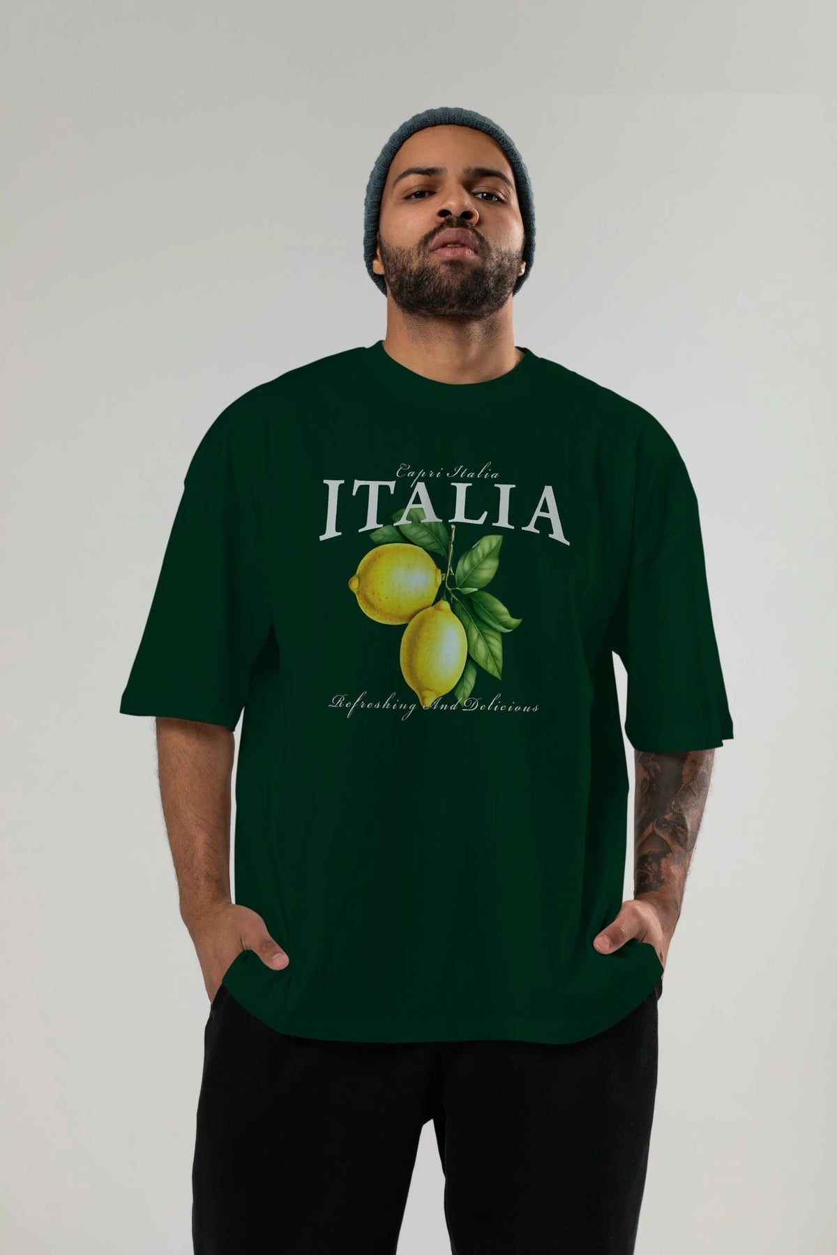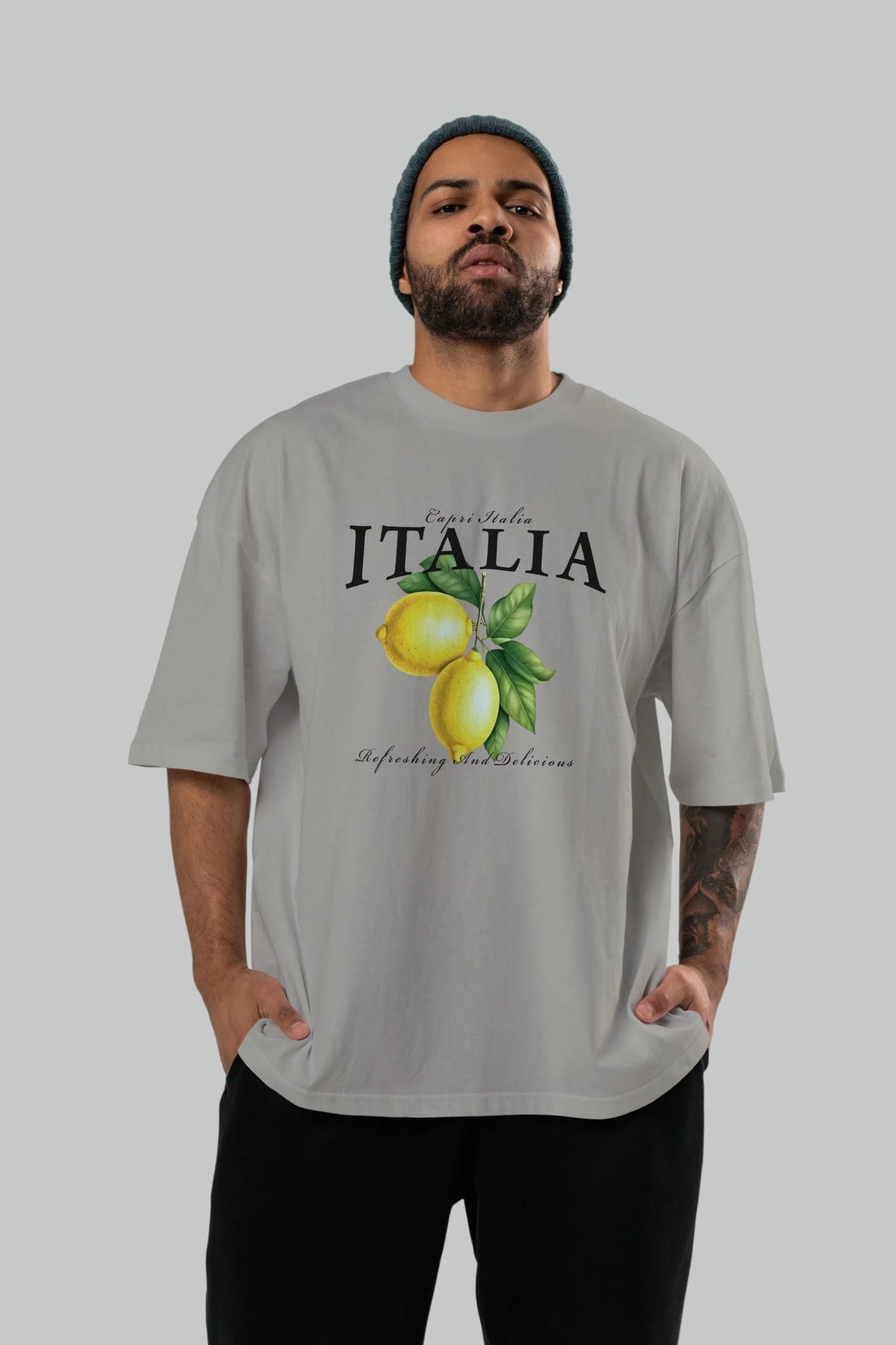 italia Lemon Ön Baskılı Oversize t-shirt Erkek Kadın Pamuk Bisiklet Yaka tişort
