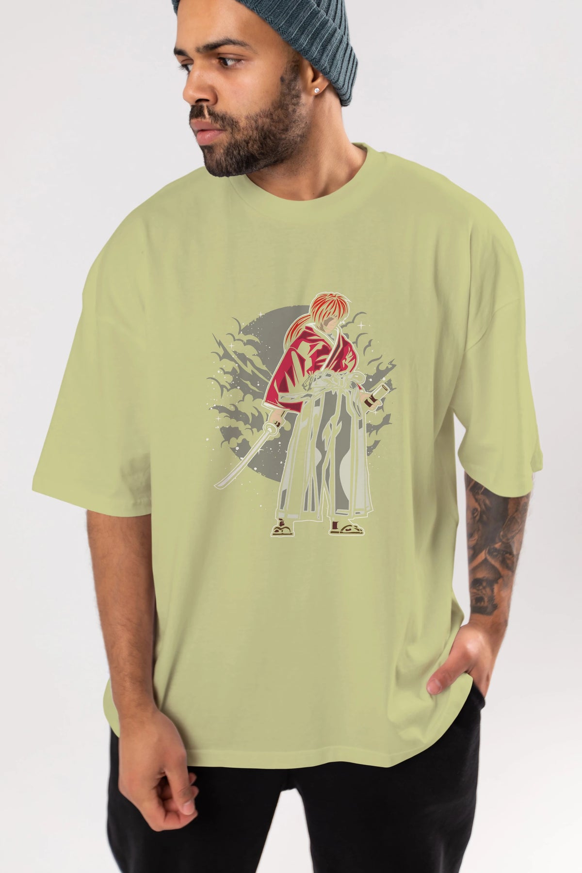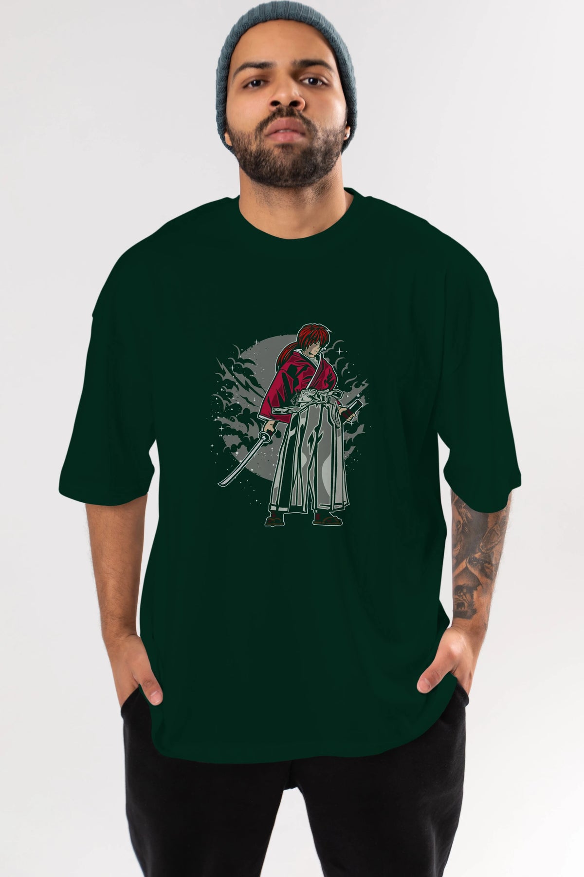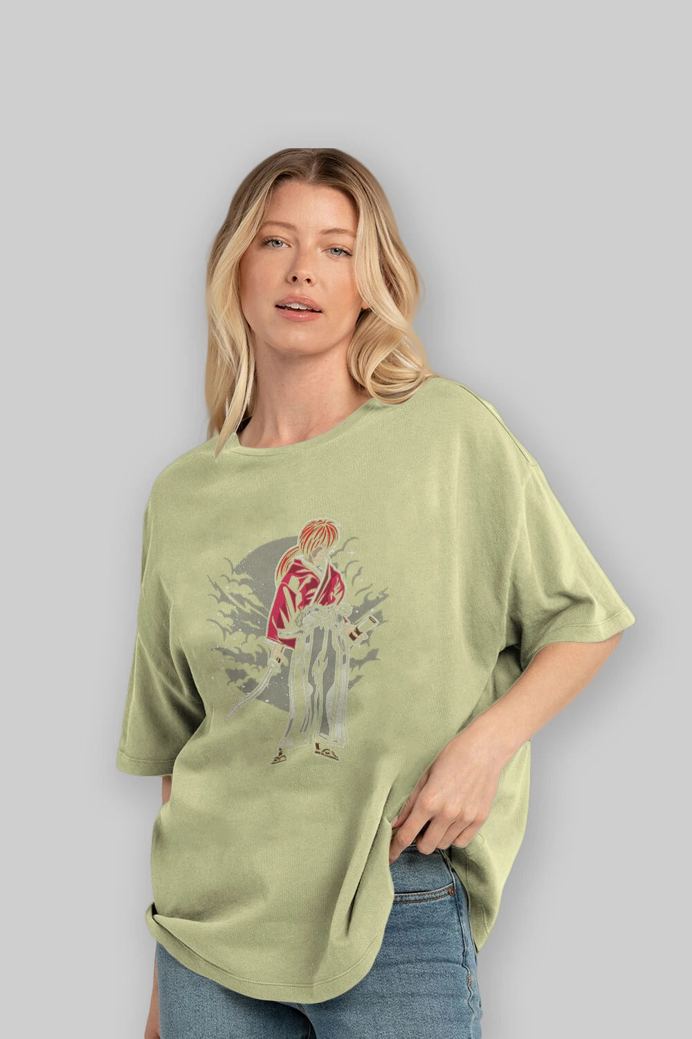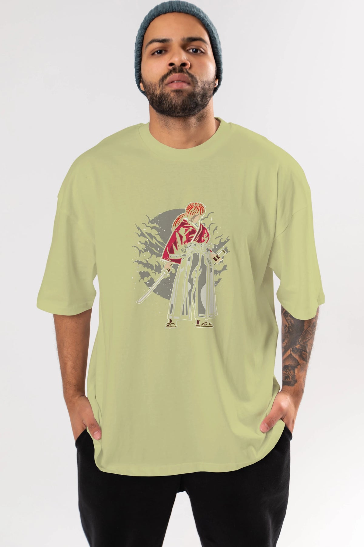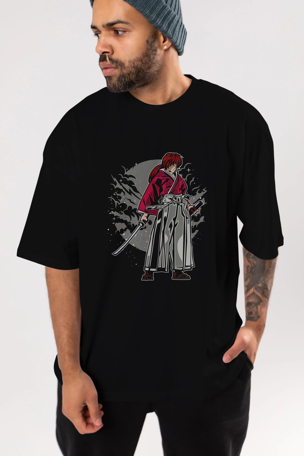 kenshin Ön Baskılı Oversize t-shirt Erkek Kadın Unisex %100 Pamuk tişort