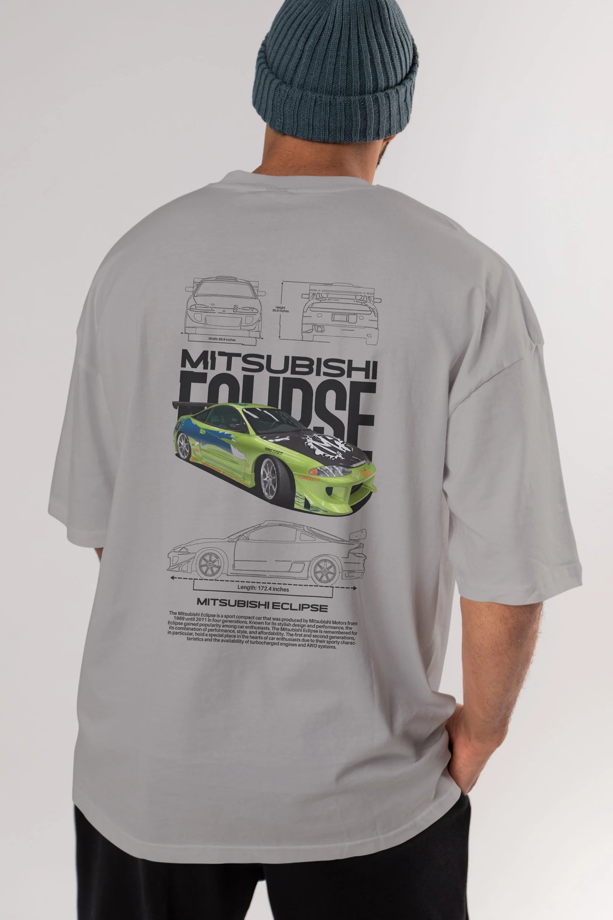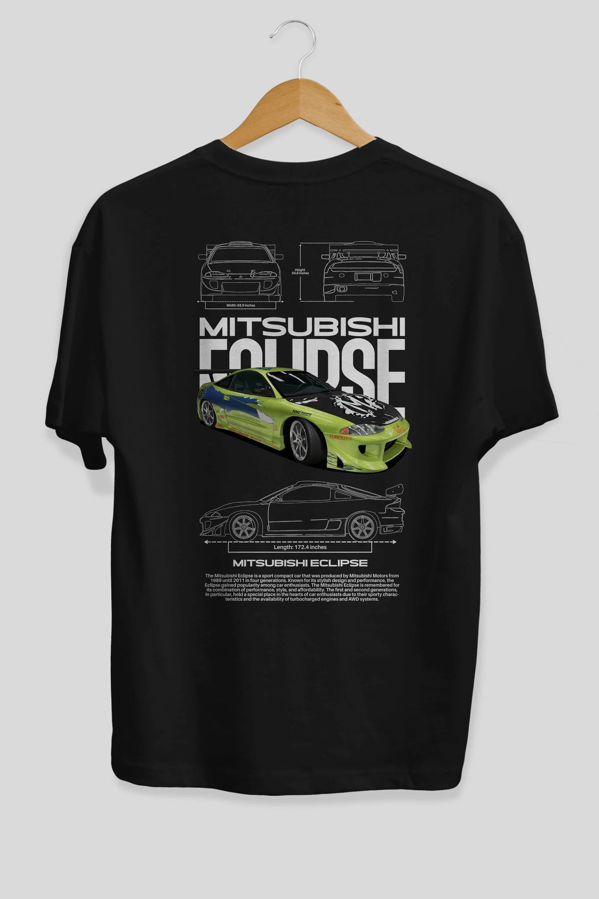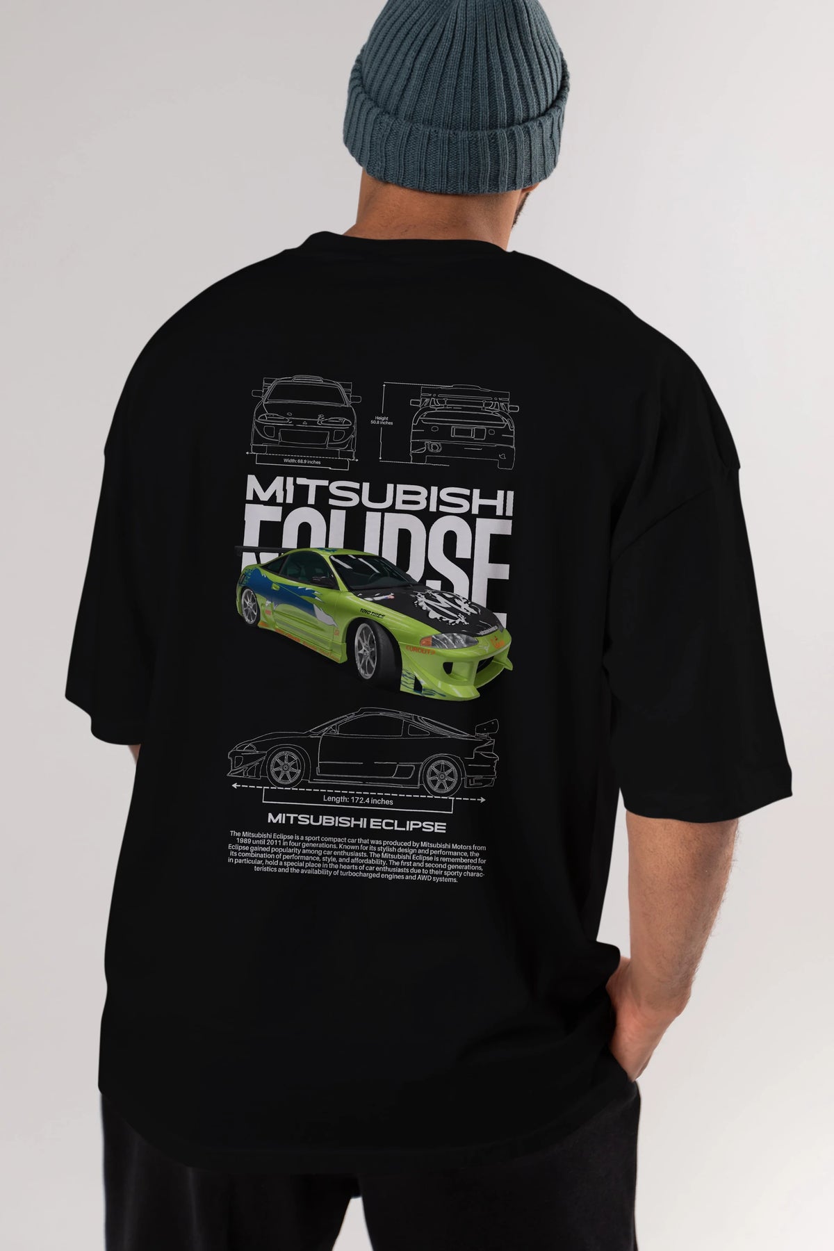 mitsubishi eclipse Arka Baskılı Oversize t-shirt Erkek Kadın Unisex %100 Pamuk Bisiklet Yaka tişort