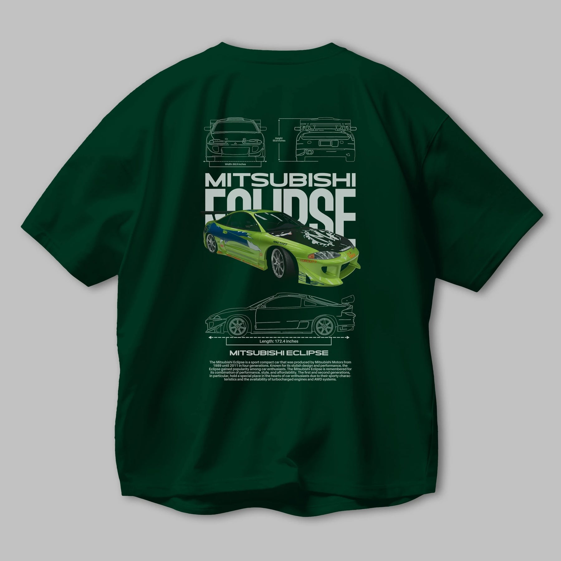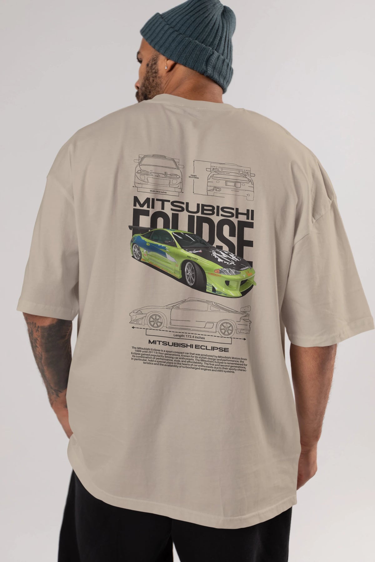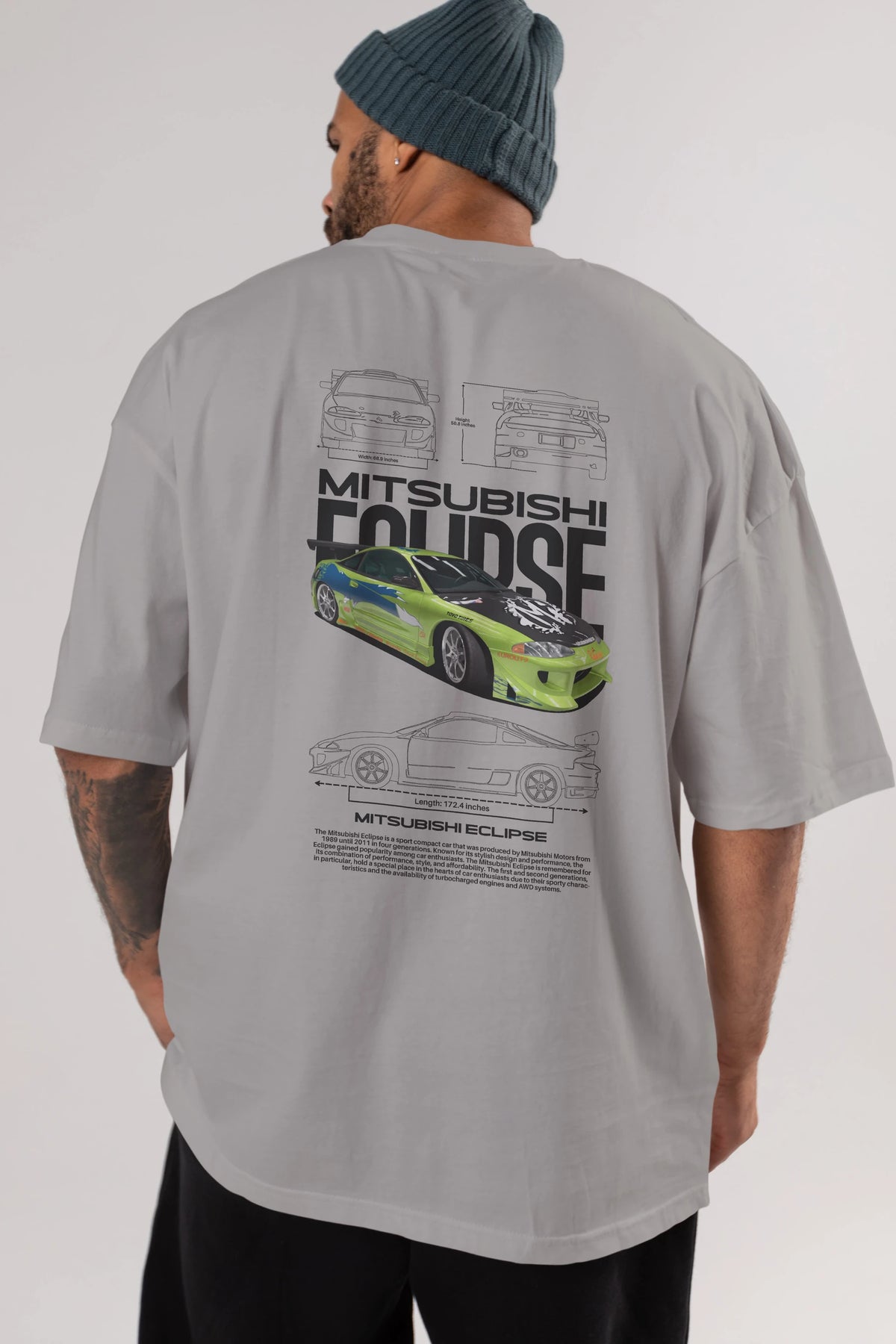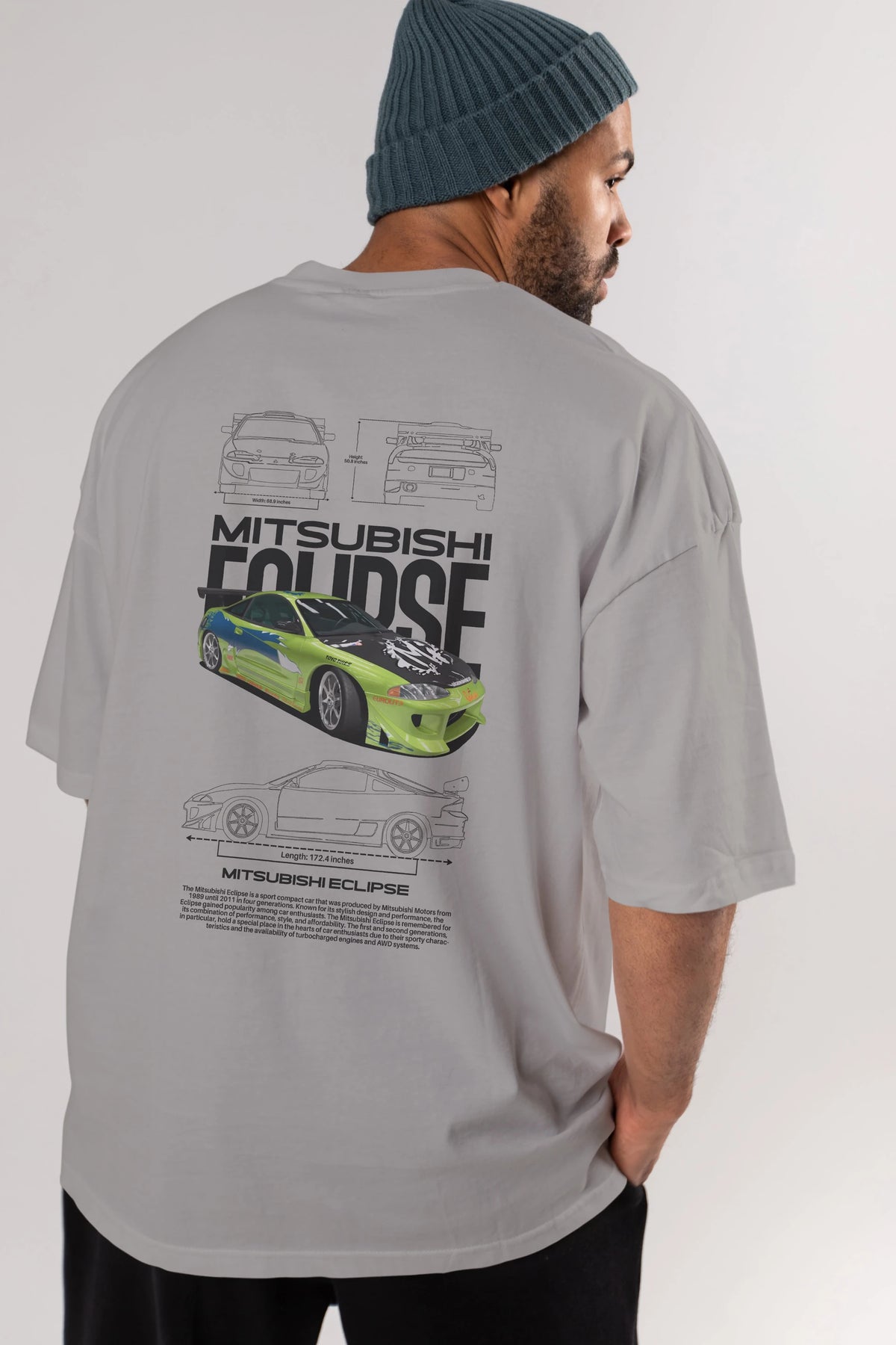mitsubishi eclipse Arka Baskılı Oversize t-shirt Erkek Kadın Unisex %100 Pamuk Bisiklet Yaka tişort