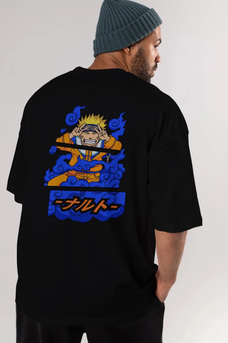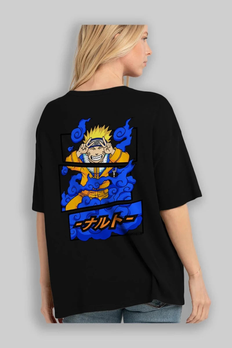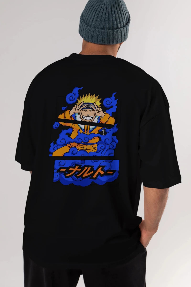 naruto uzumaki Anime Arka Baskılı Oversize t-shirt Erkek Kadın Unisex
