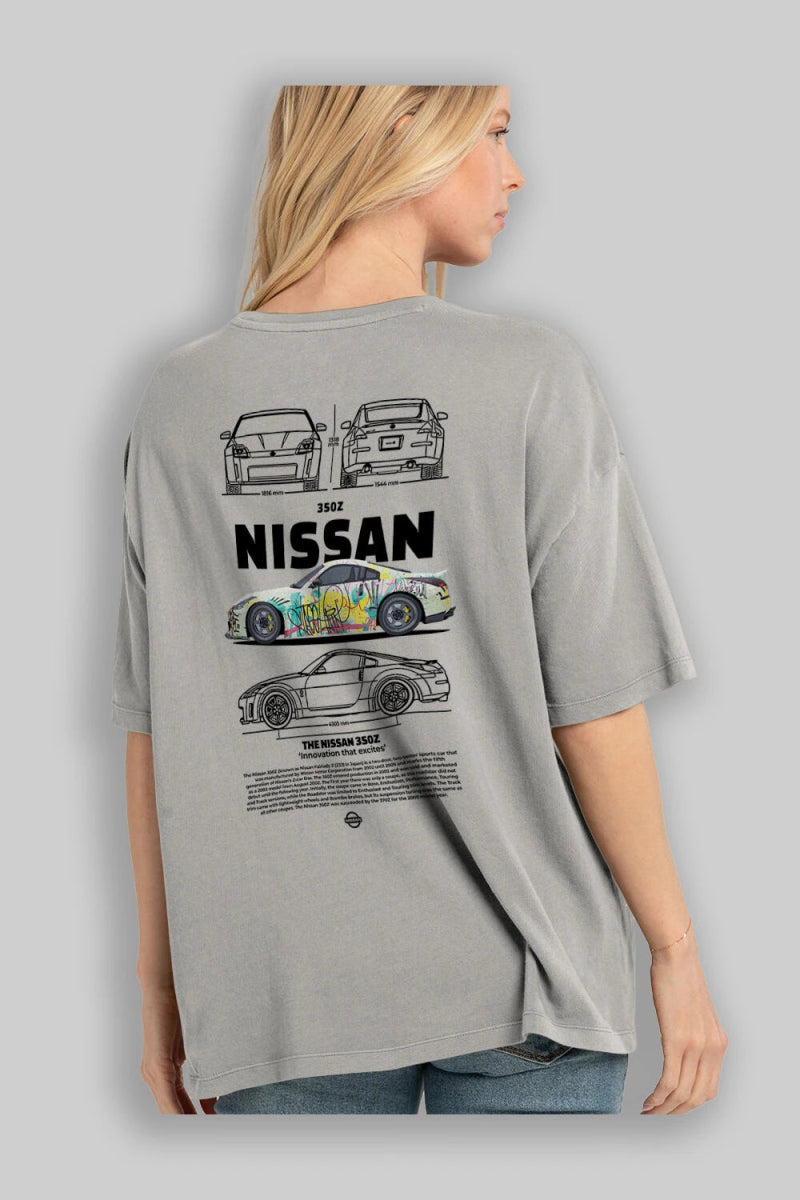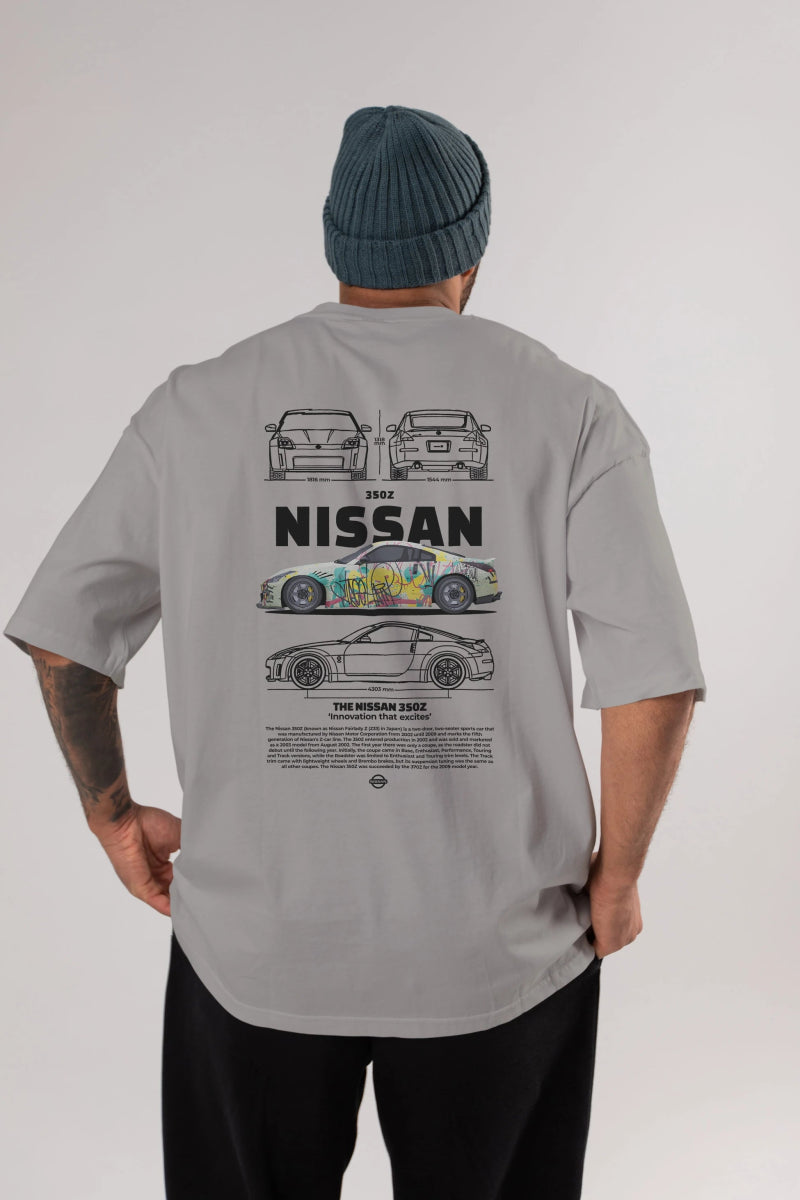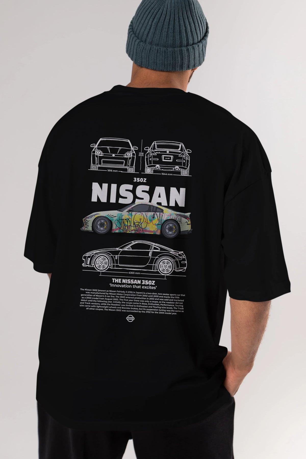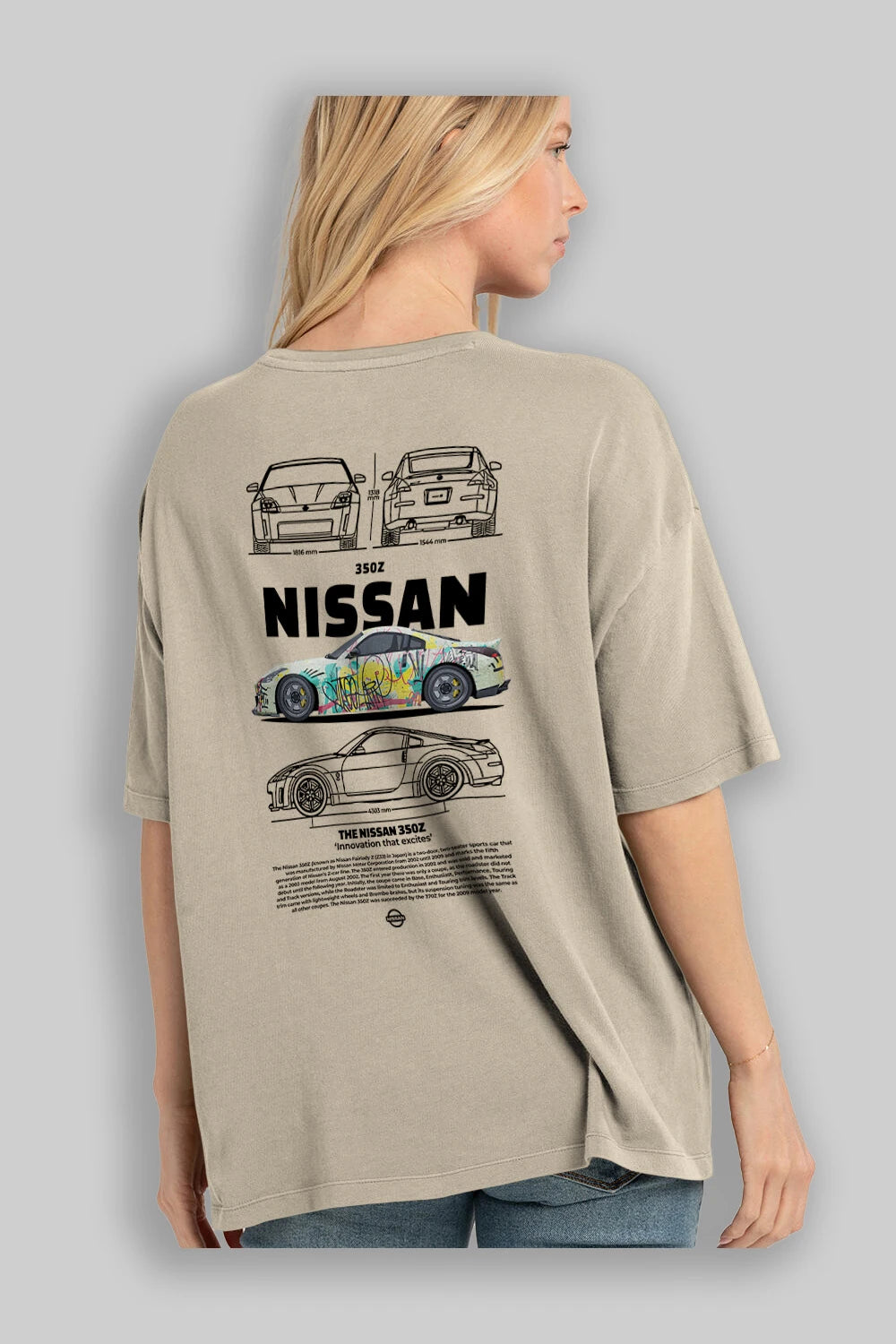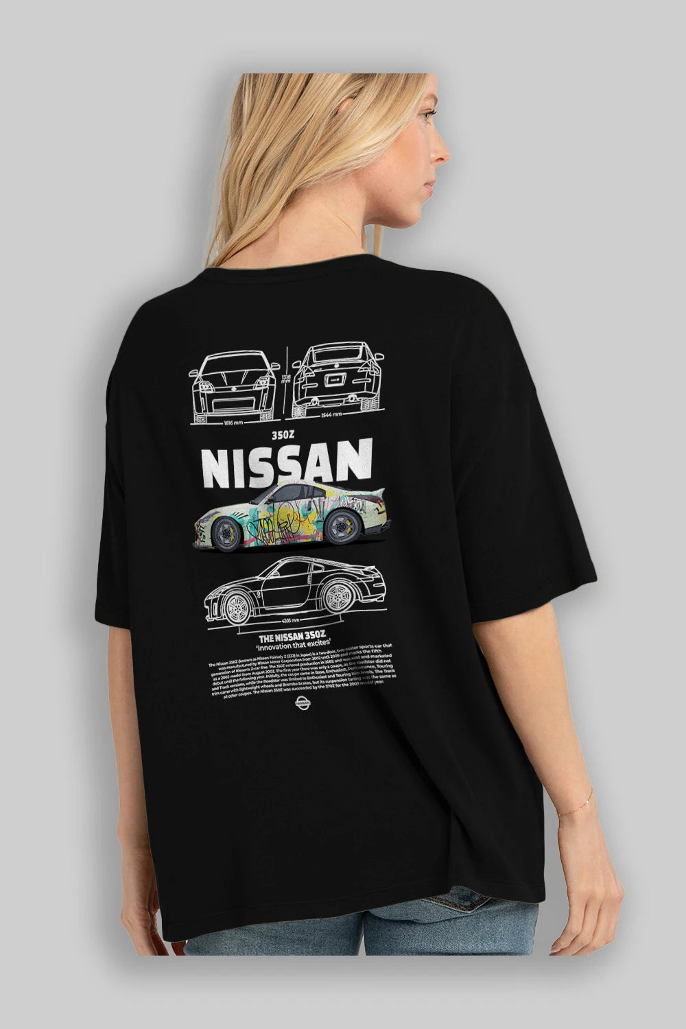 nissan 350z 2 Arka Baskılı Oversize t-shirt Erkek Kadın Unisex %100 Pamuk Bisiklet Yaka tişort