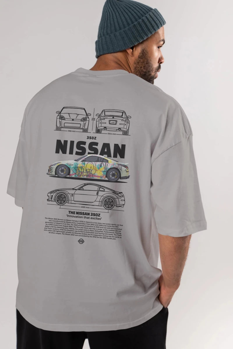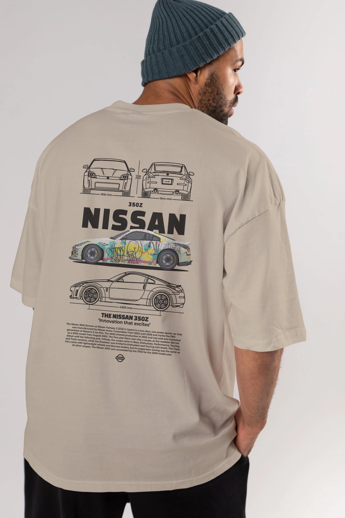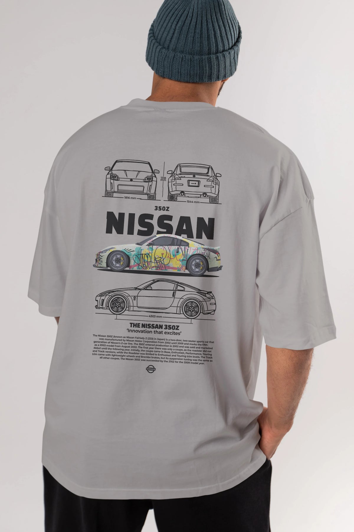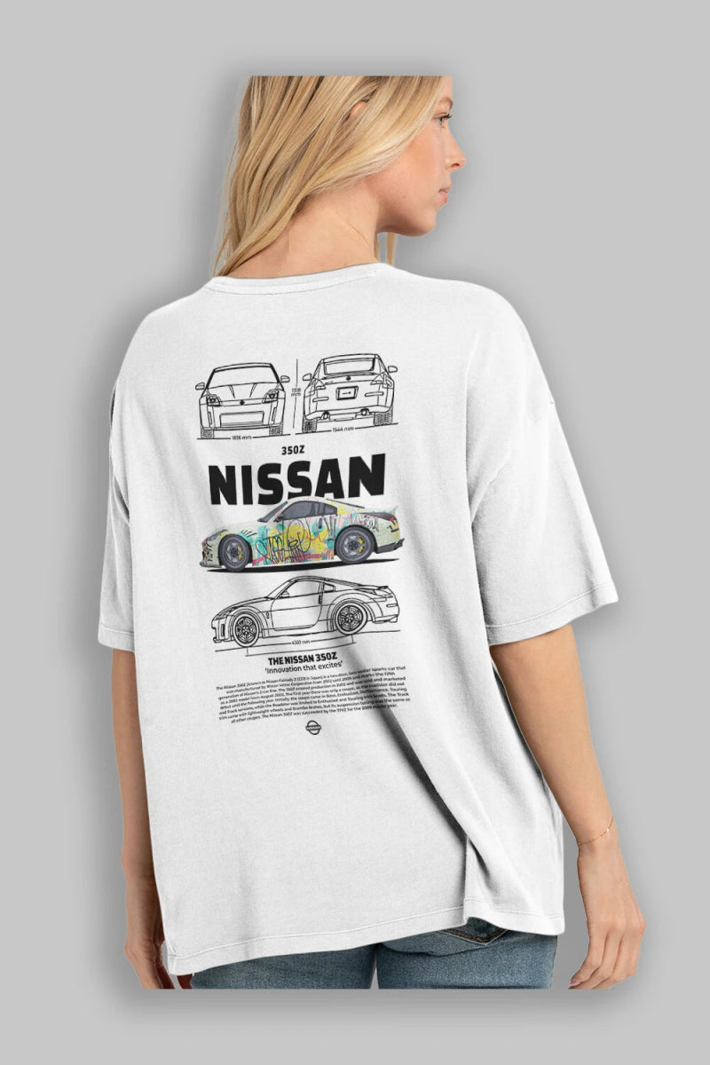 nissan 350z 2 Arka Baskılı Oversize t-shirt Erkek Kadın Unisex %100 Pamuk Bisiklet Yaka tişort
