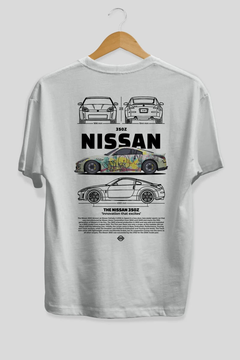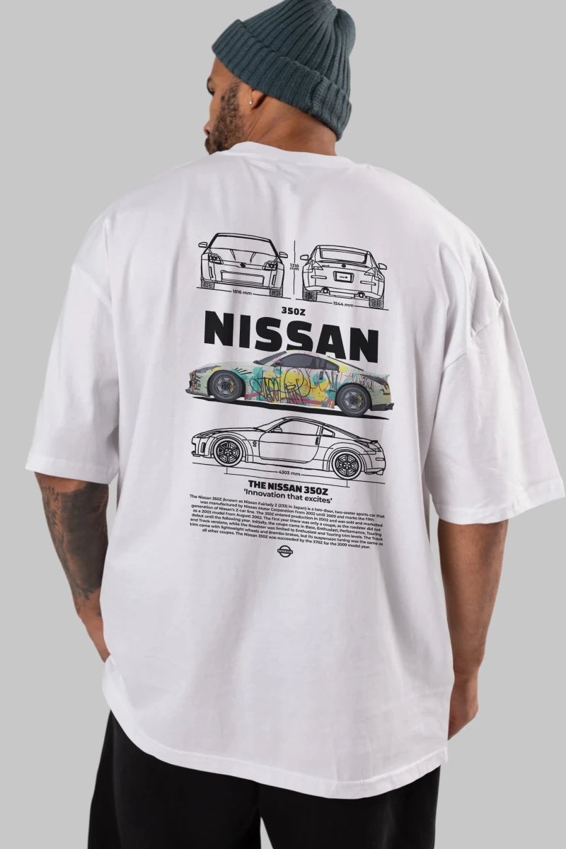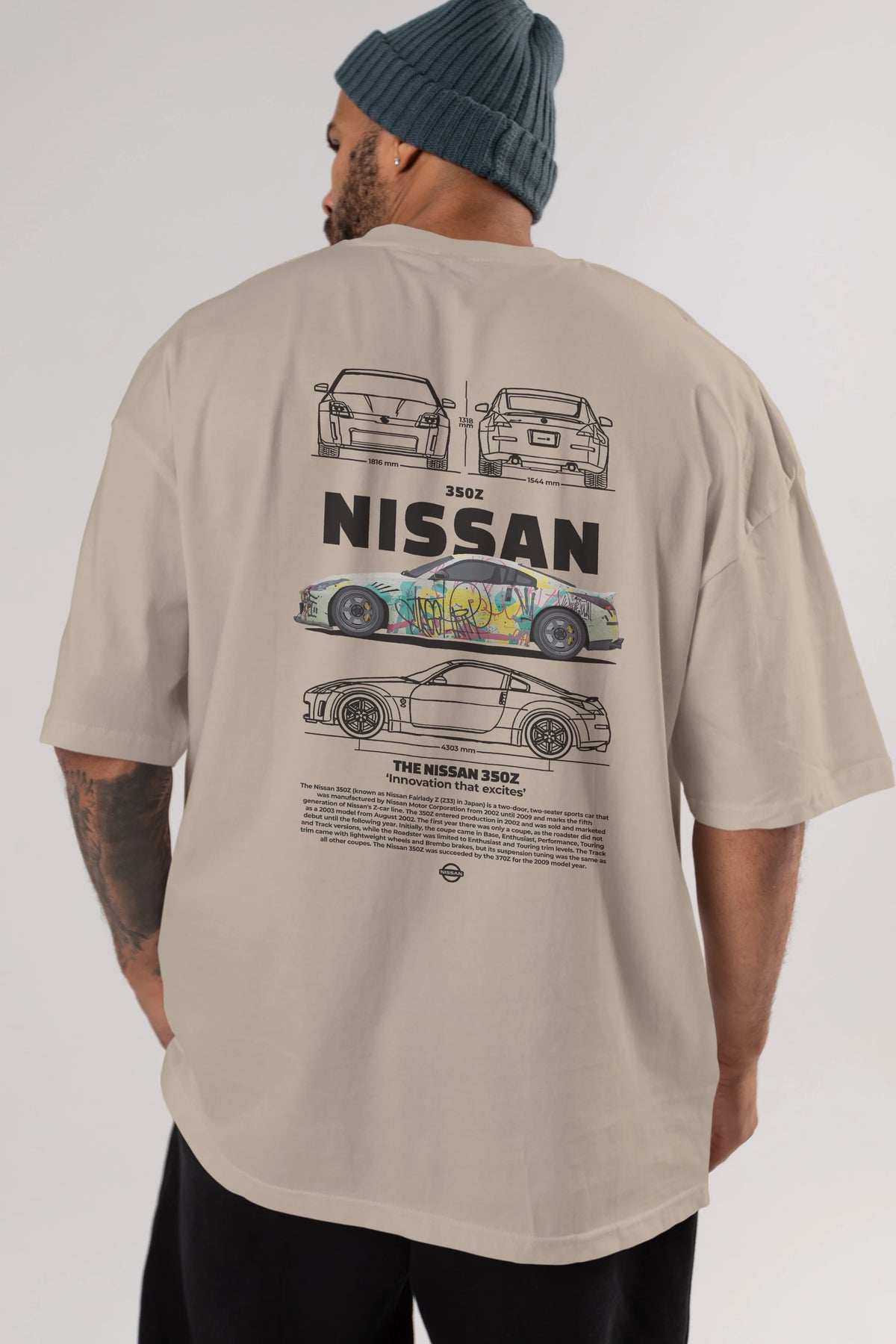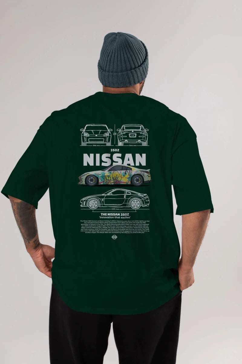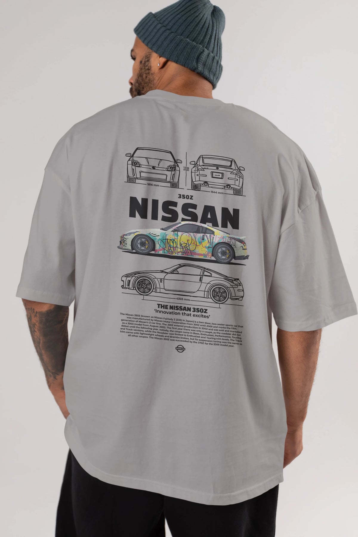 nissan 350z 2 Arka Baskılı Oversize t-shirt Erkek Kadın Unisex %100 Pamuk Bisiklet Yaka tişort