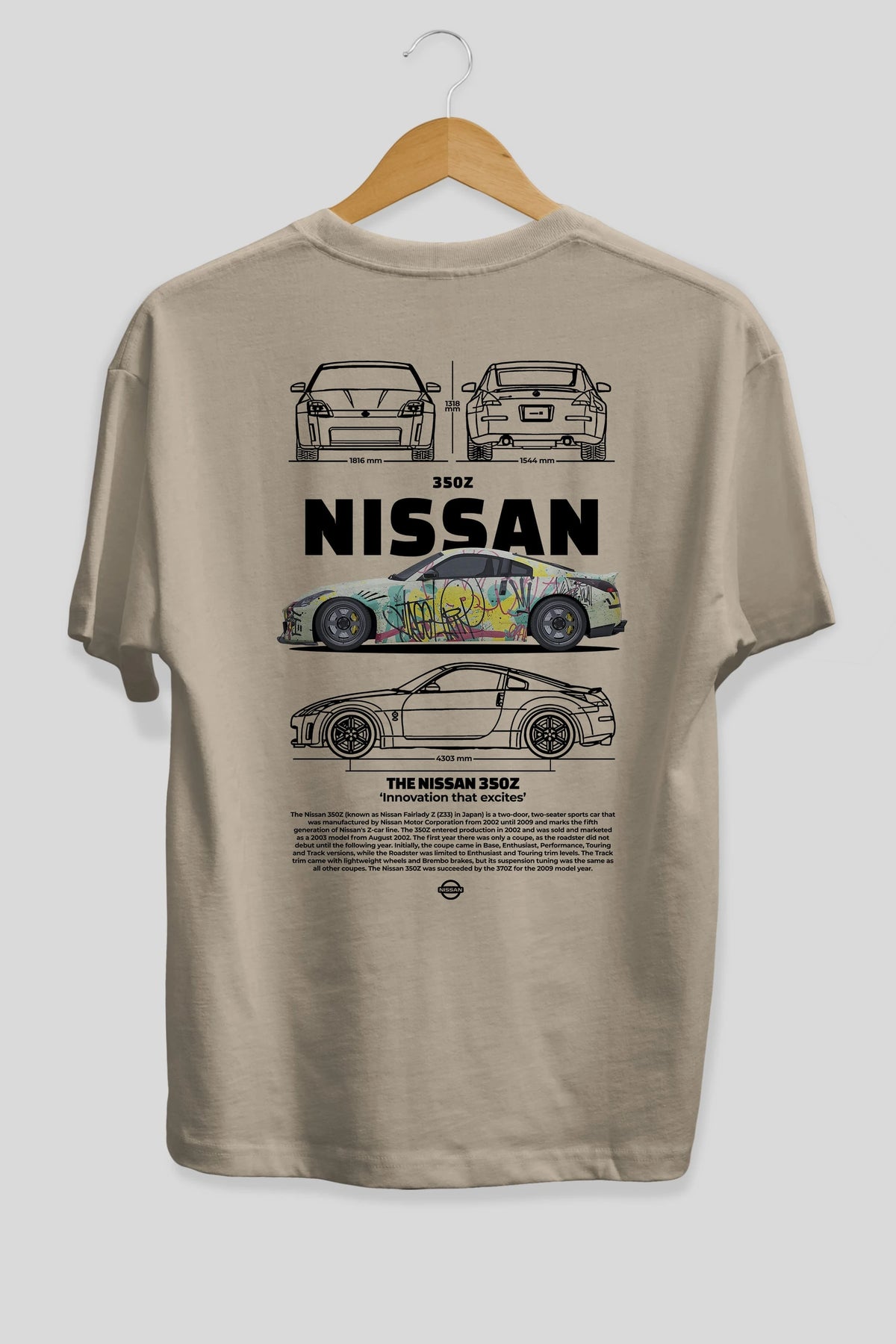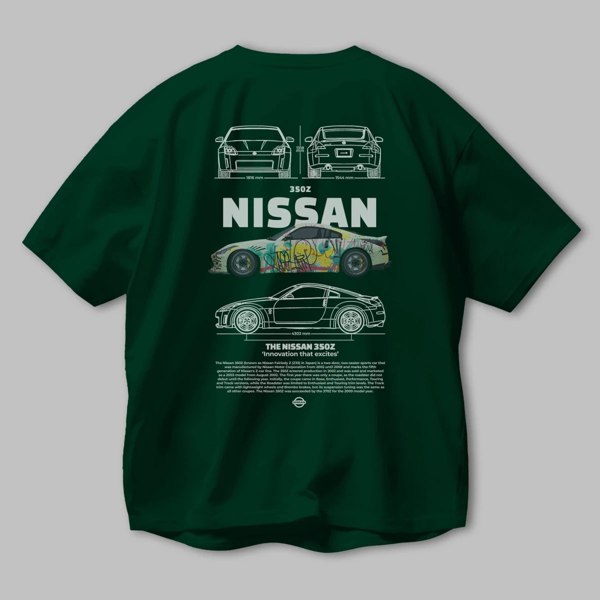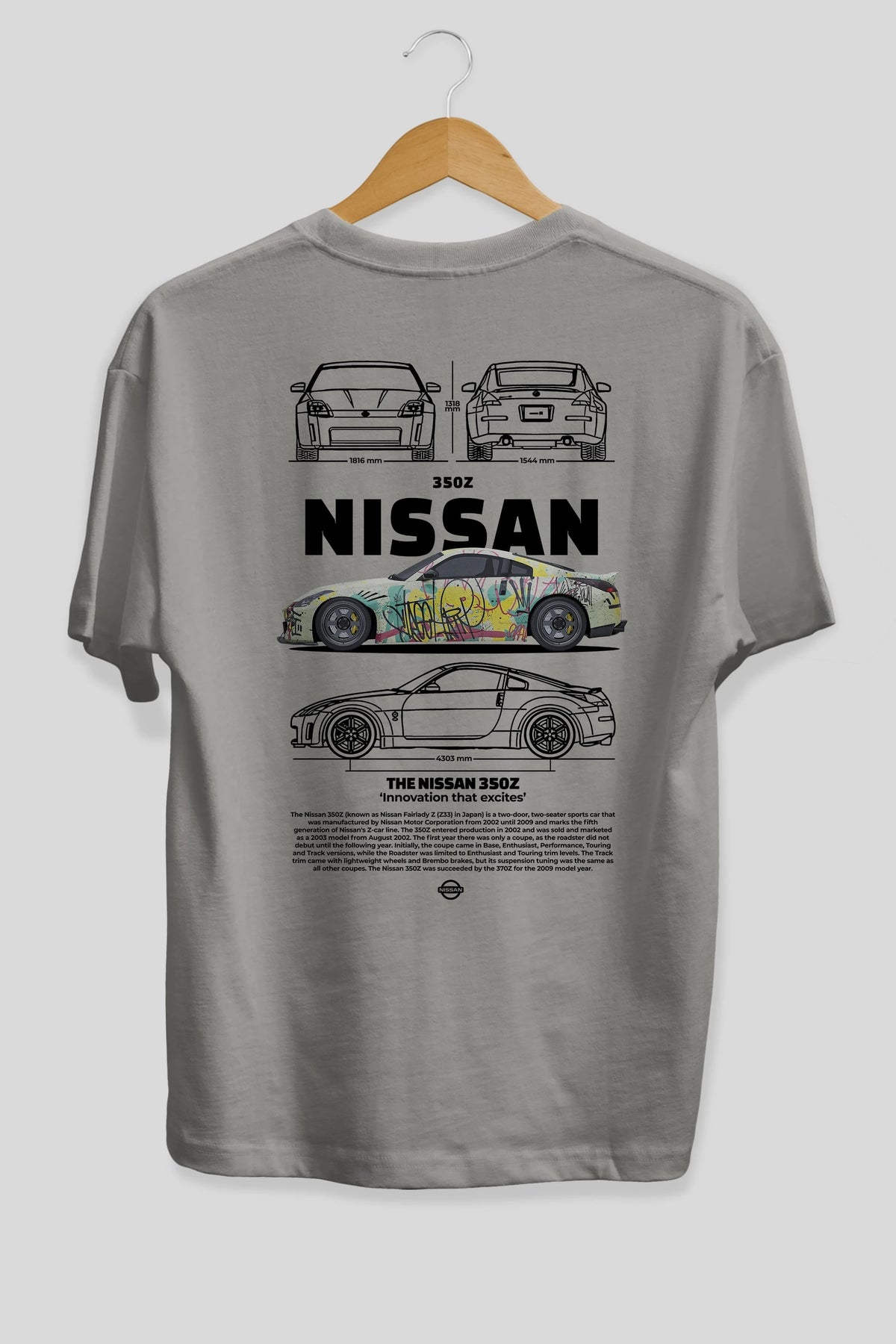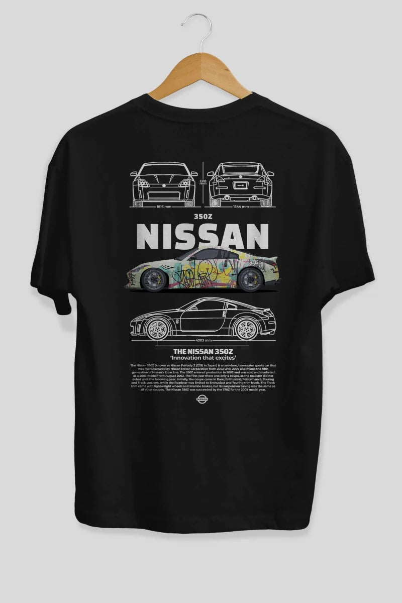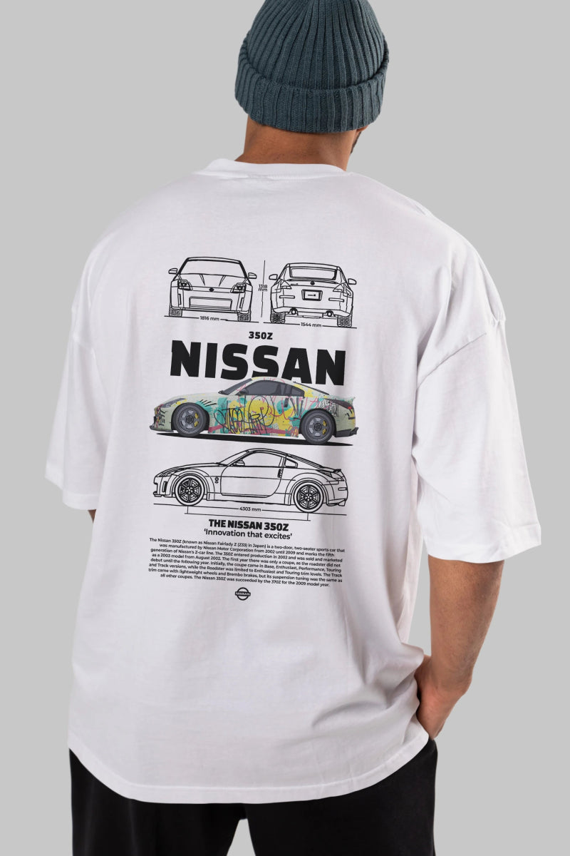 nissan 350z 2 Arka Baskılı Oversize t-shirt Erkek Kadın Unisex %100 Pamuk Bisiklet Yaka tişort