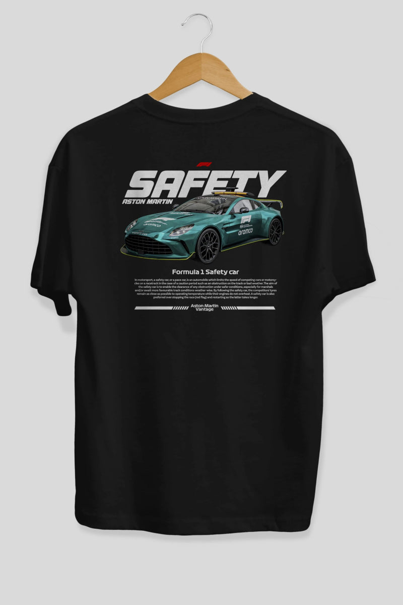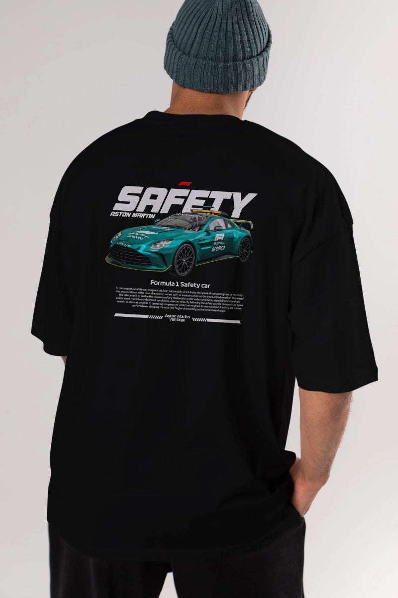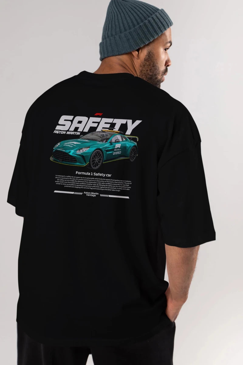 safety car f1 Arka Baskılı Oversize t-shirt Erkek Kadın Unisex %100 Pamuk Bisiklet Yaka tişort