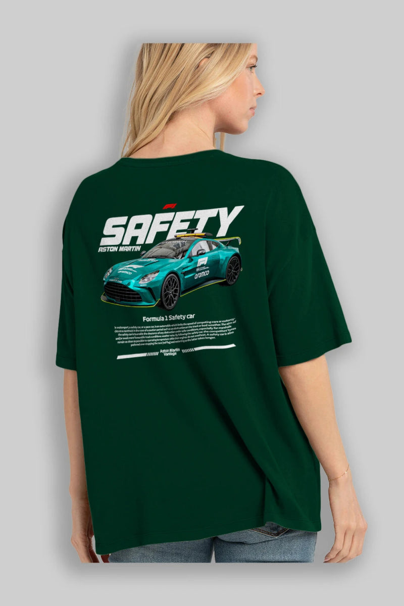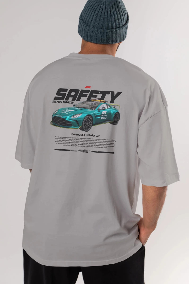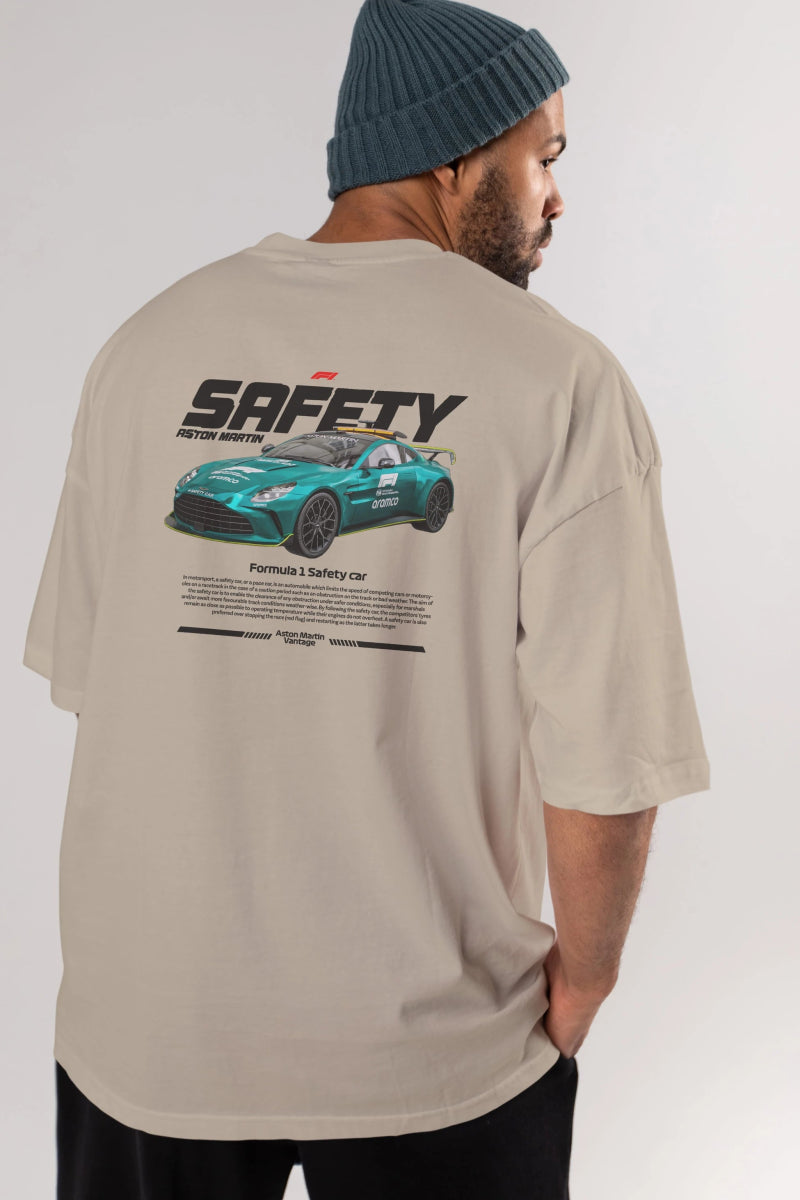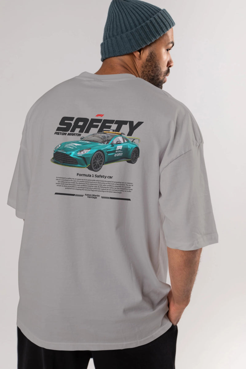safety car f1 Arka Baskılı Oversize t-shirt Erkek Kadın Unisex %100 Pamuk Bisiklet Yaka tişort