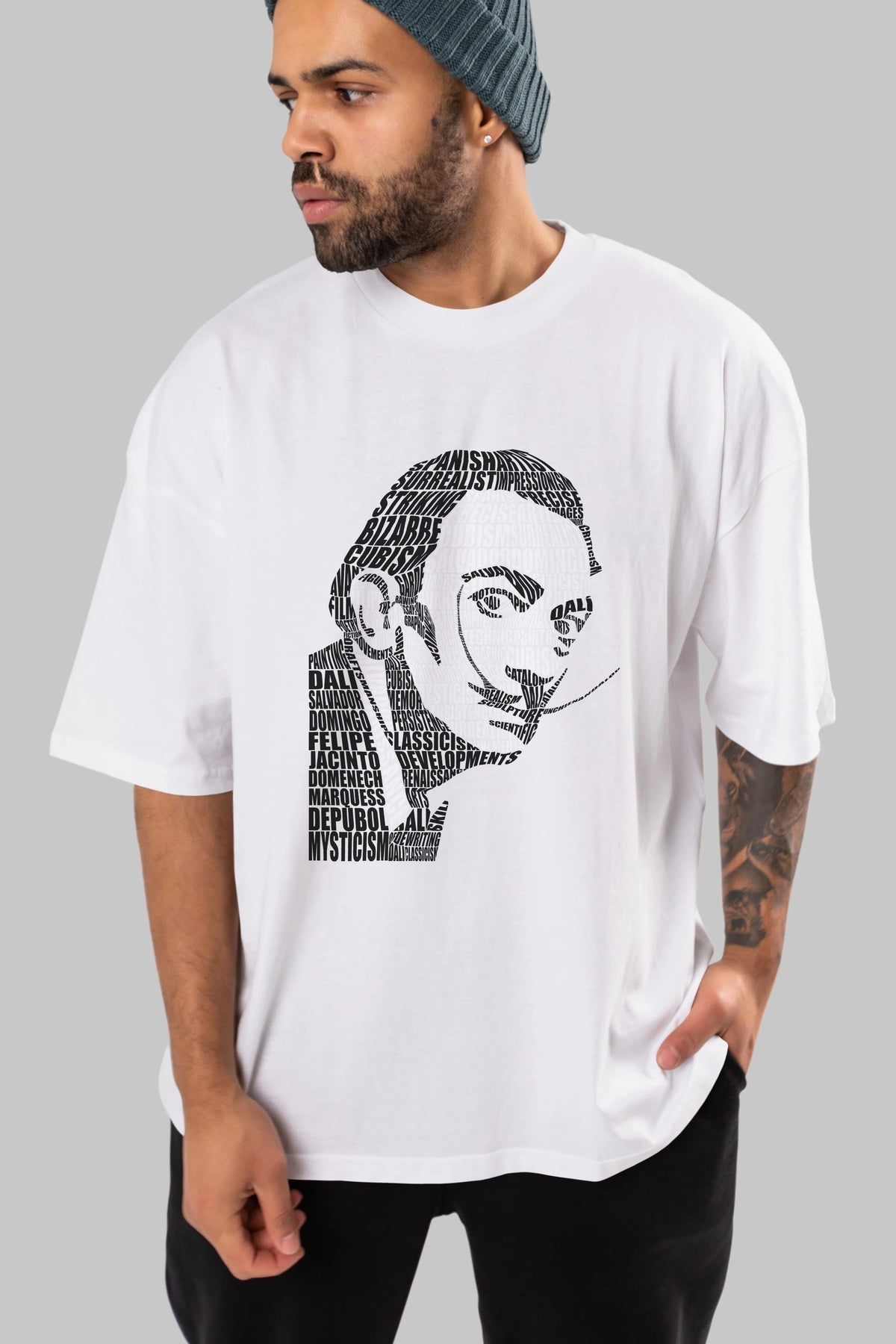 Salvador Dali Calligram Ön Baskılı Oversize t-shirt %100 pamuk Erkek Kadın Unisex