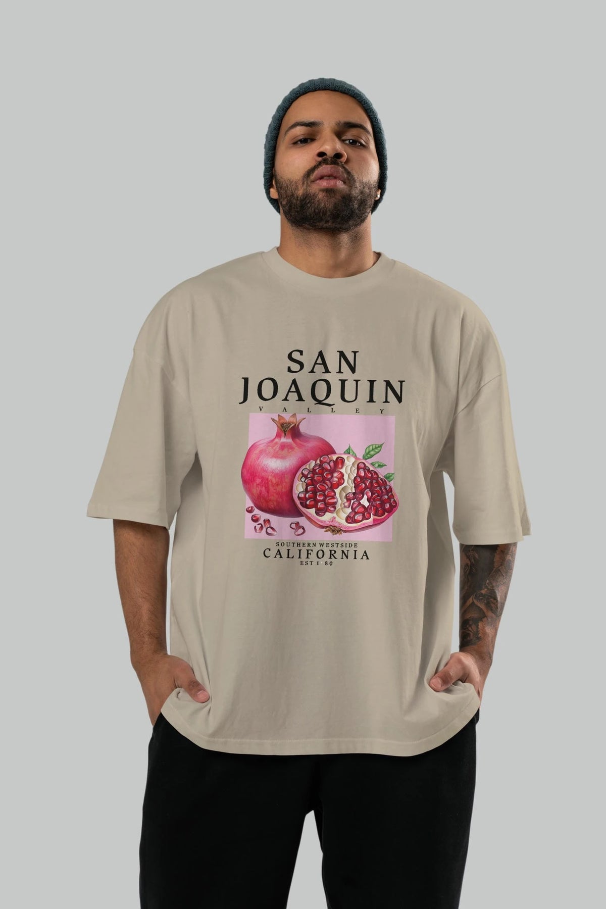 San Joaquin Nar Ön Baskılı Oversize t-shirt Erkek Kadın Pamuk Bisiklet Yaka tişort