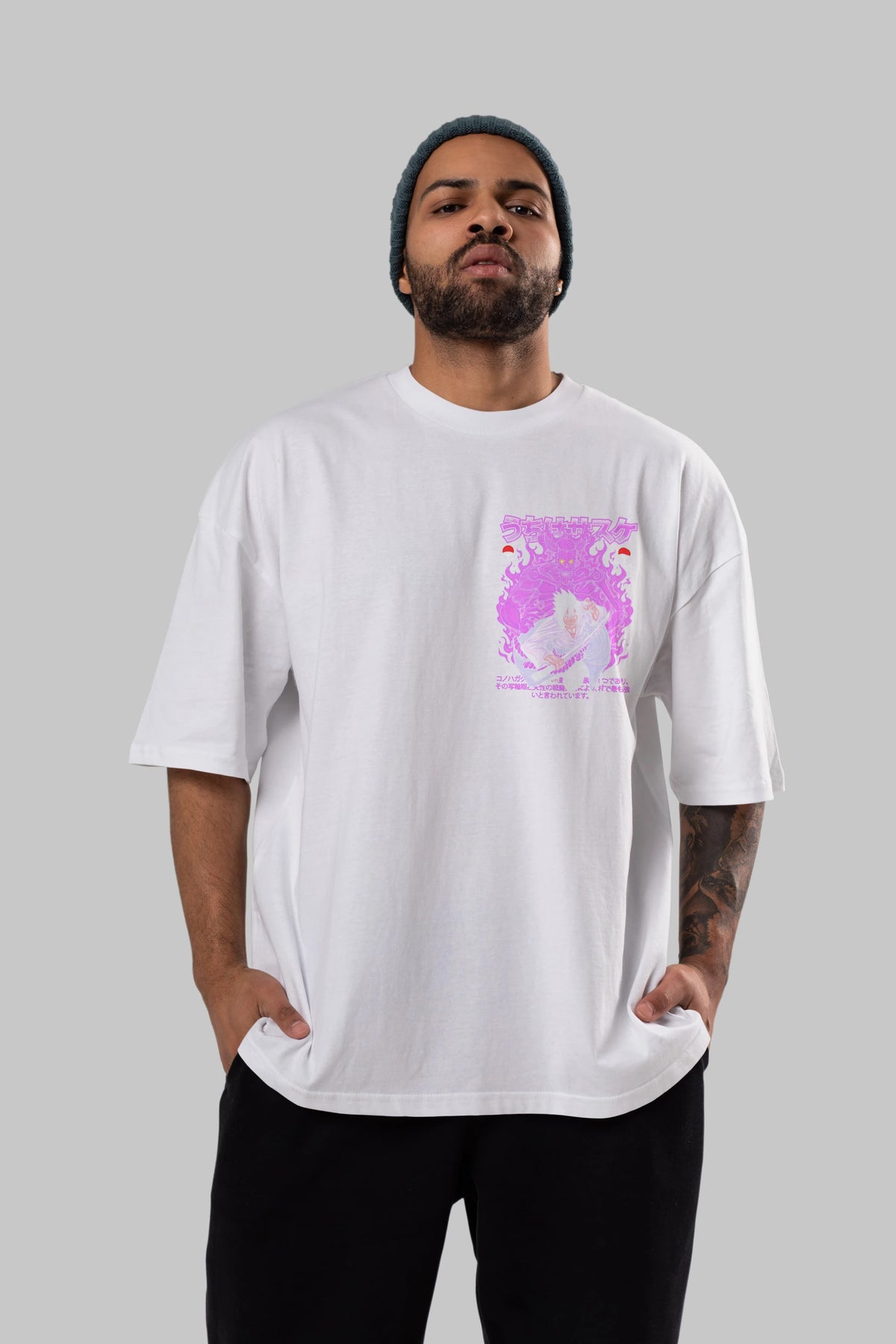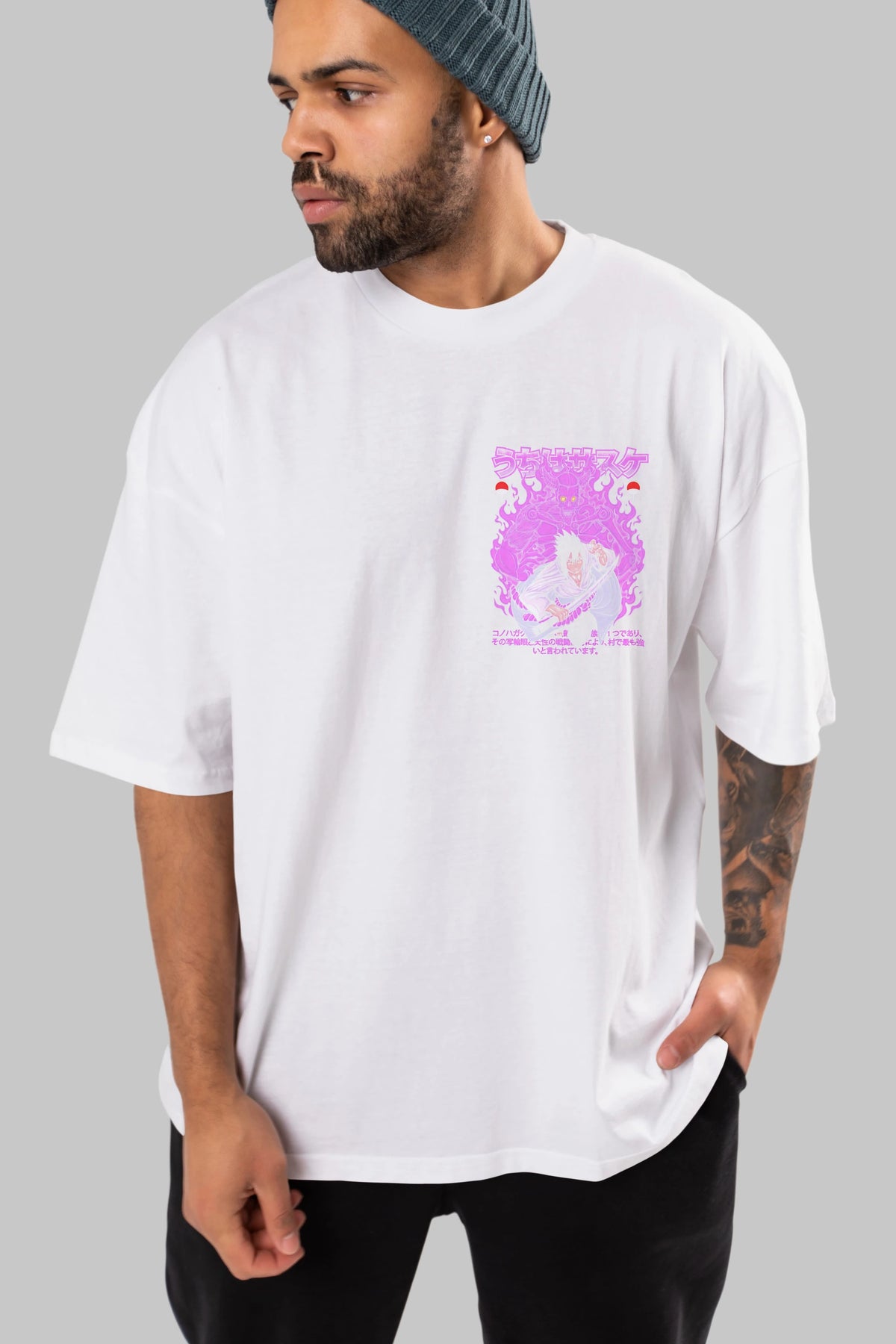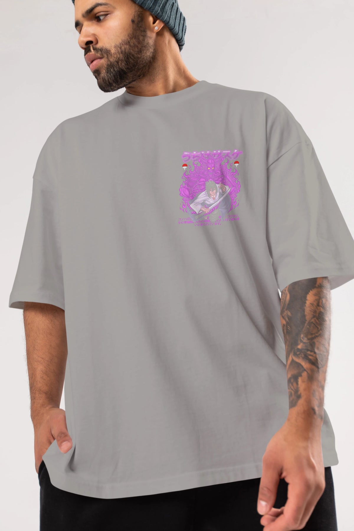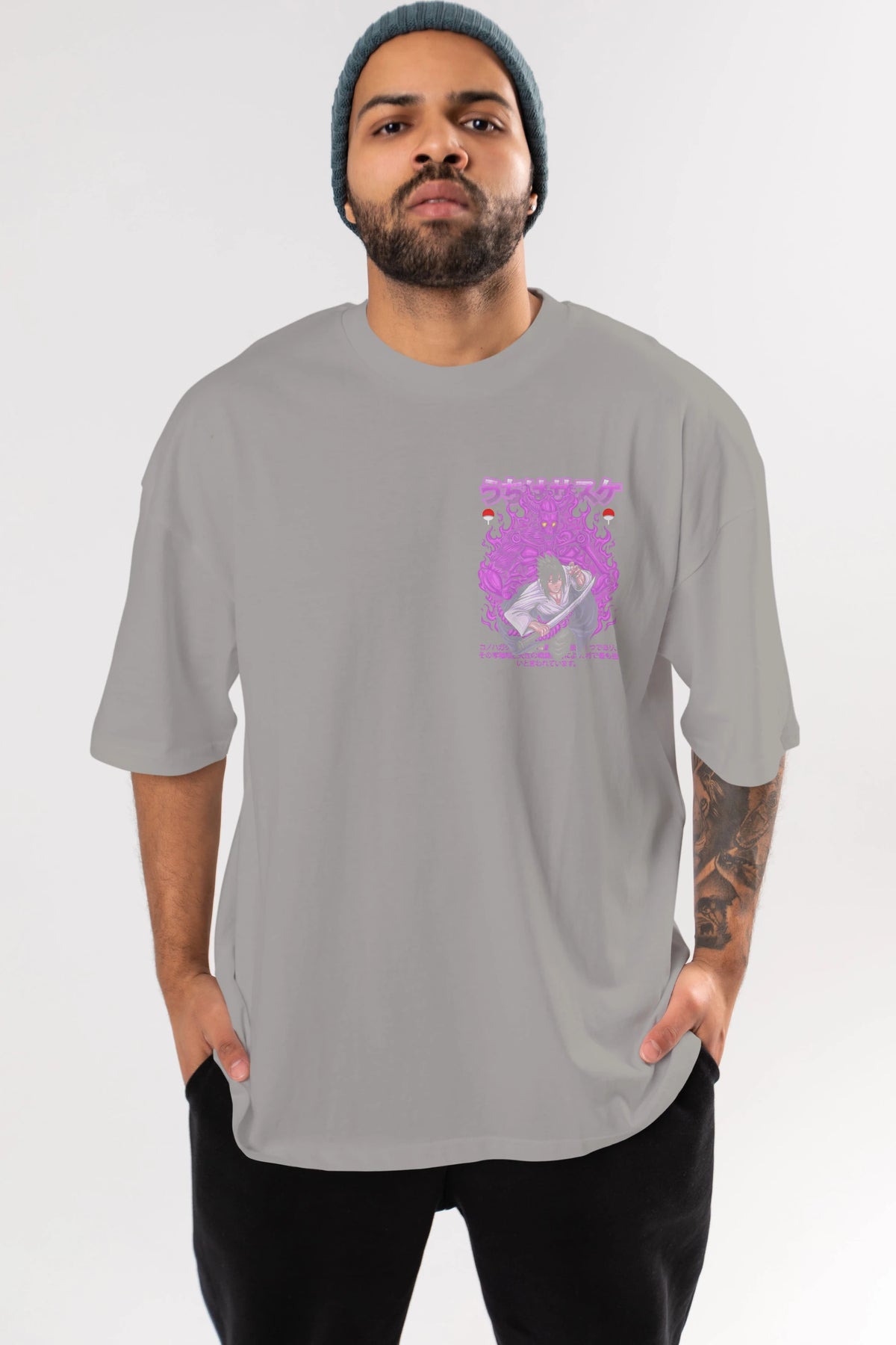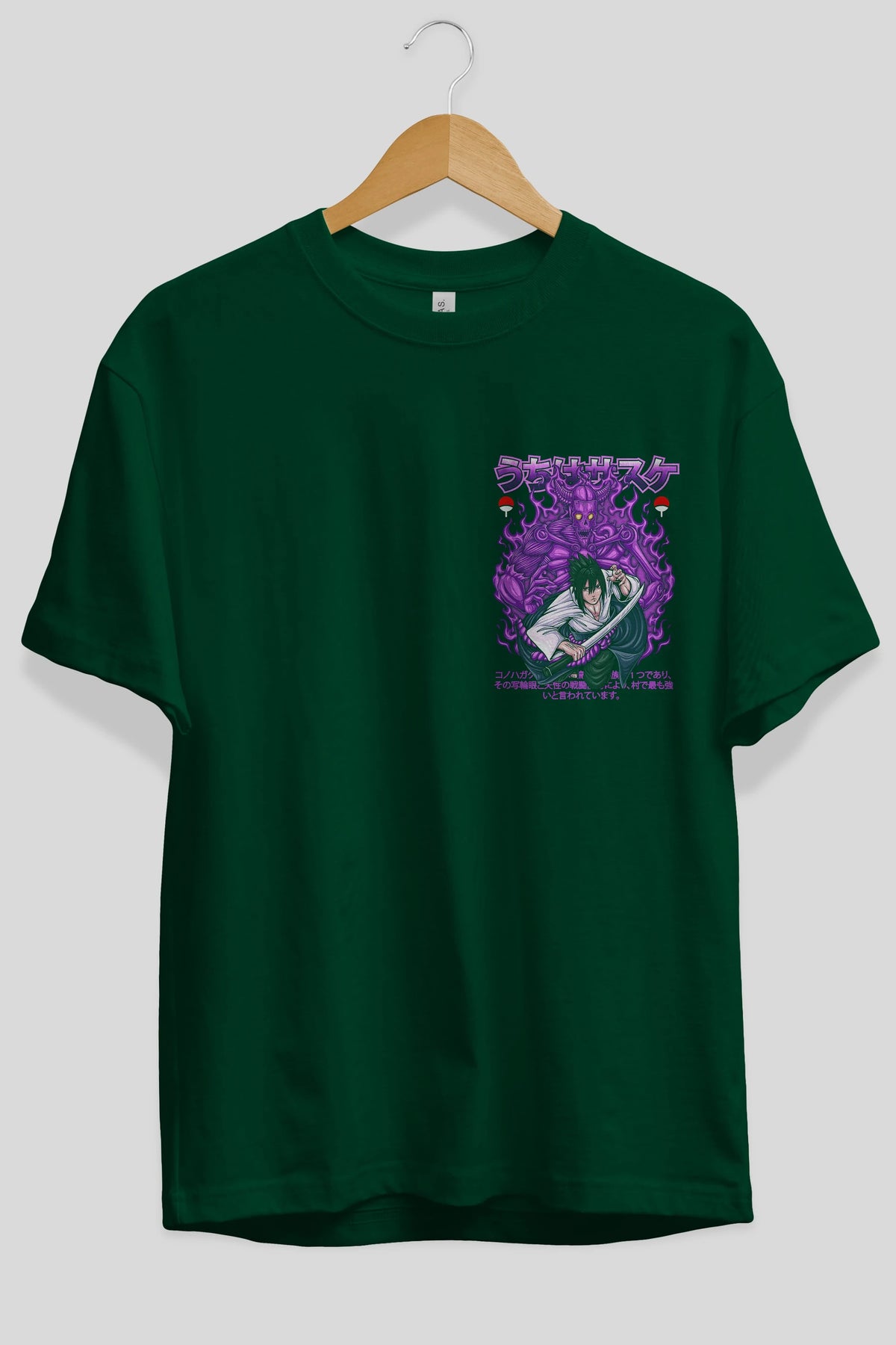 SASUKE UCHIHA NARUTO Ön Sol Baskılı Oversize t-shirt Erkek Kadın Unisex %100 Pamuk Bisiklet Yaka tişort