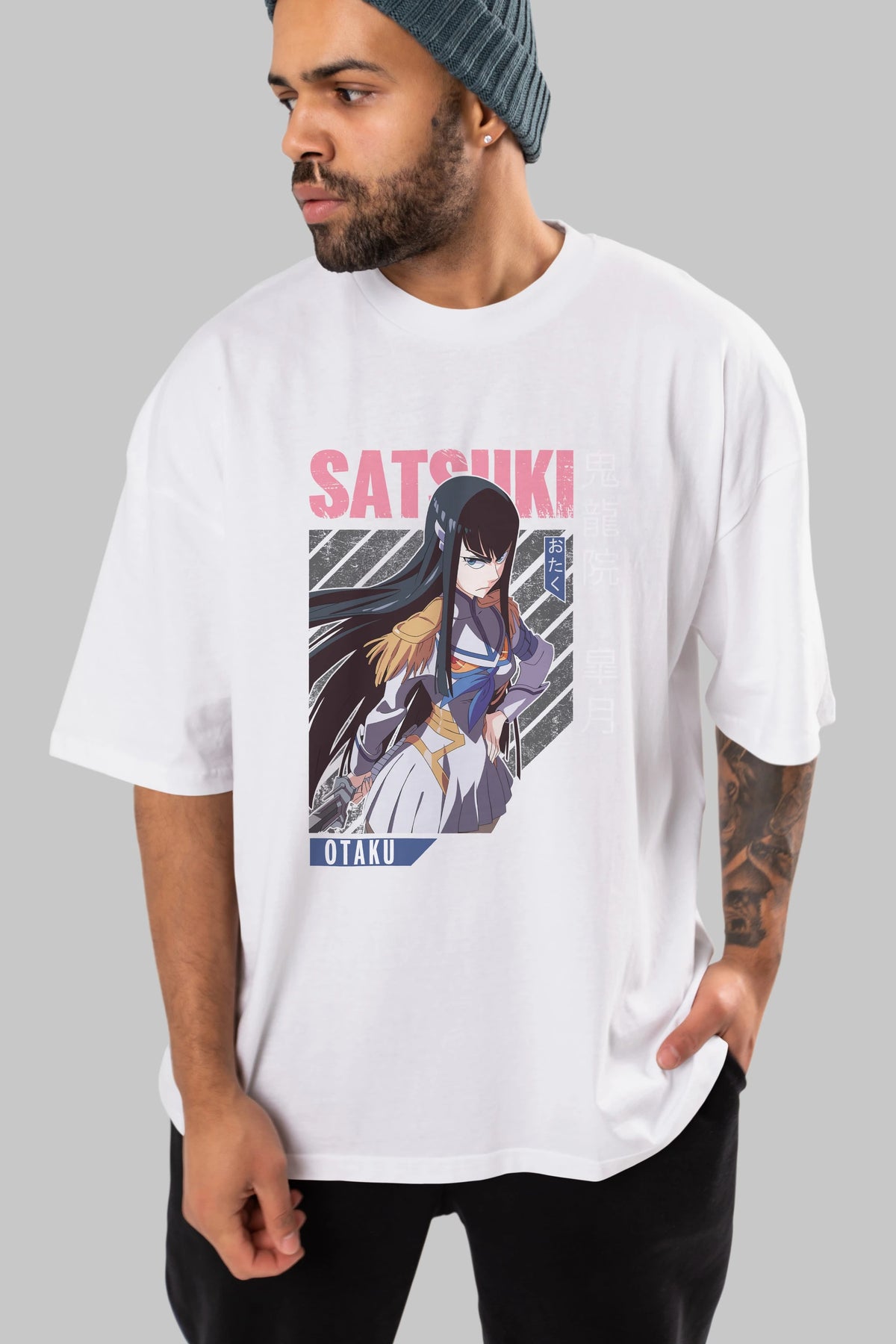 Satsuki Kiryuuin 8 Anime Ön Baskılı Oversize t-shirt %100 pamuk Erkek Kadın Unisex