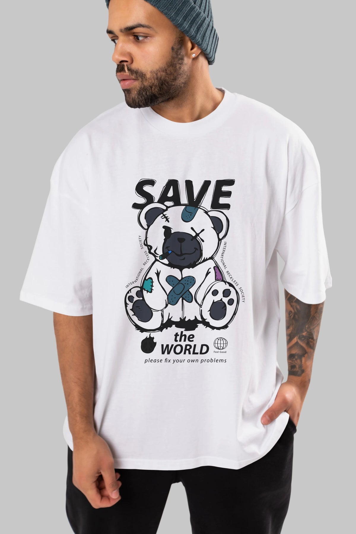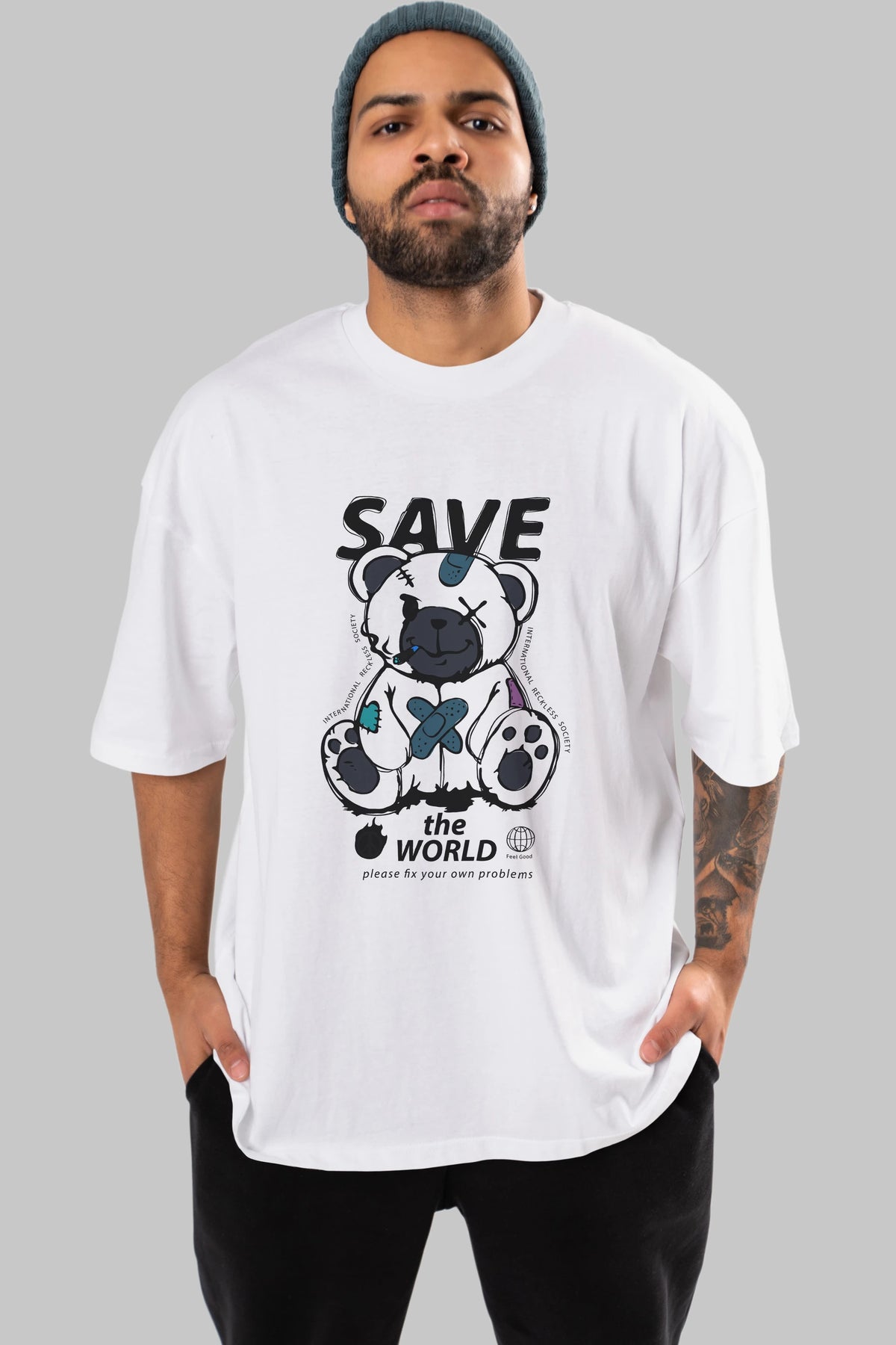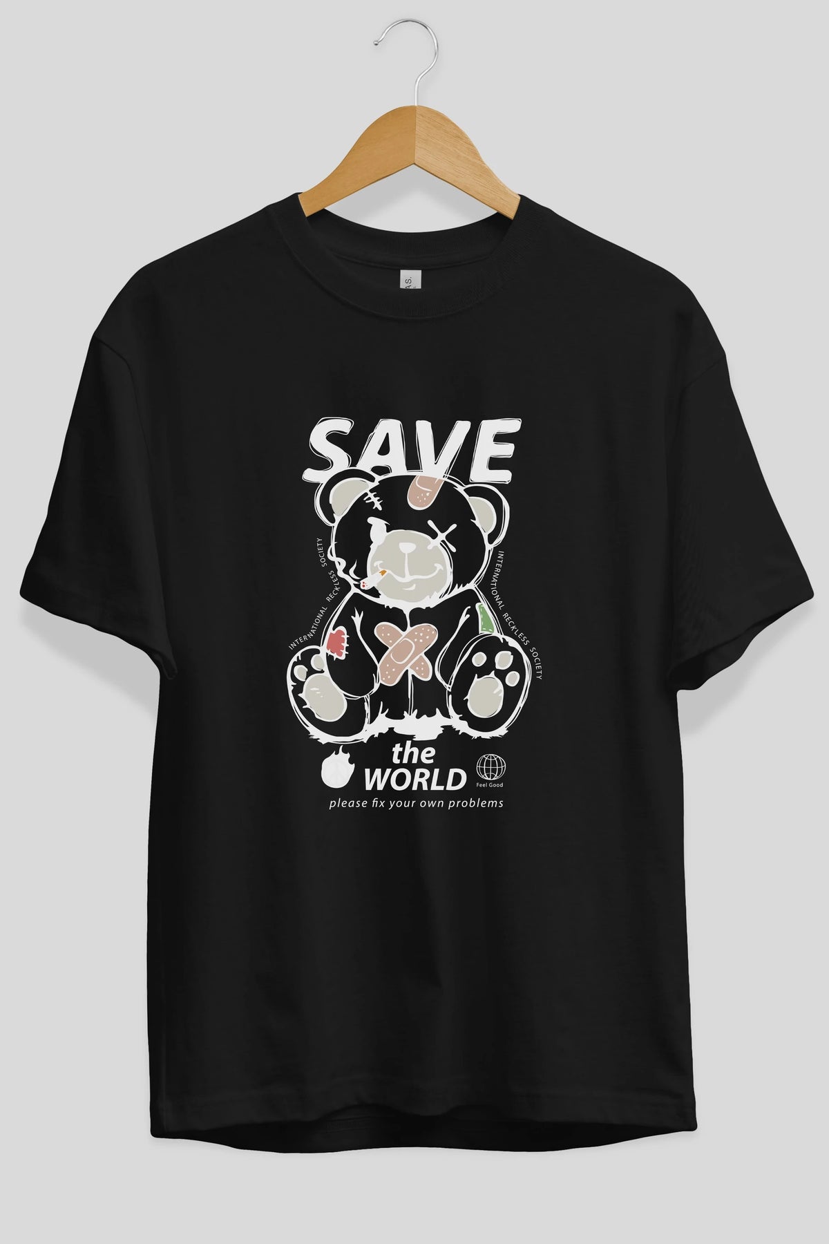 Save the World Bear Ön Baskılı Oversize t-shirt Erkek Kadın Unisex