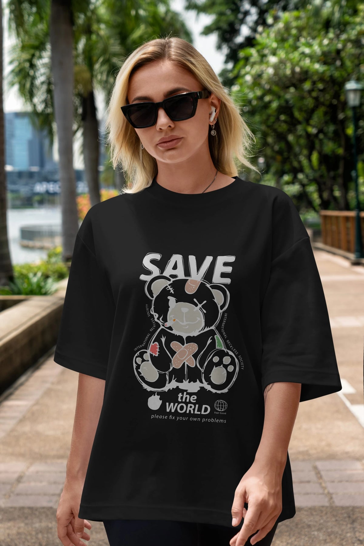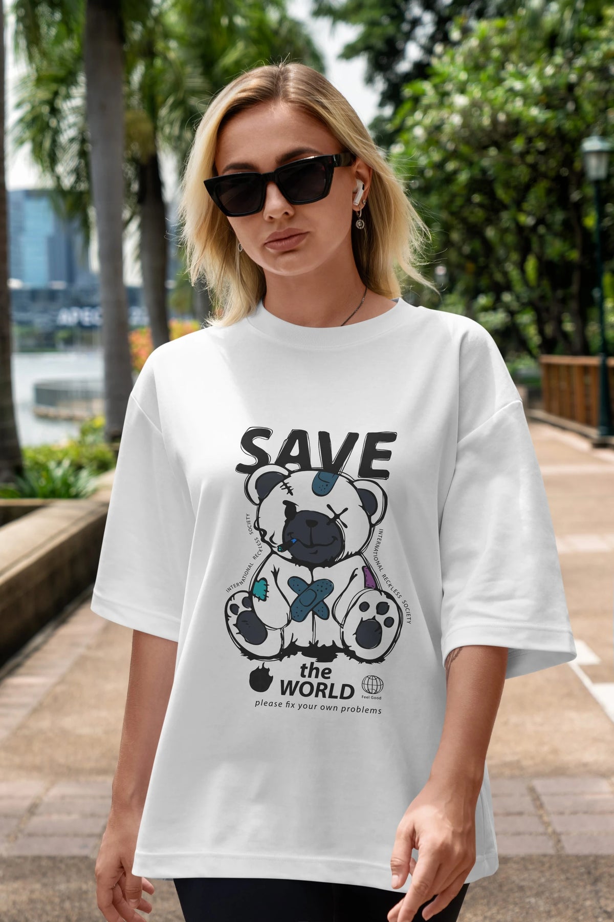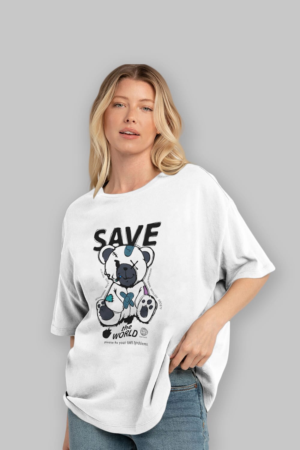 Save the World Bear Ön Baskılı Oversize t-shirt Erkek Kadın Unisex