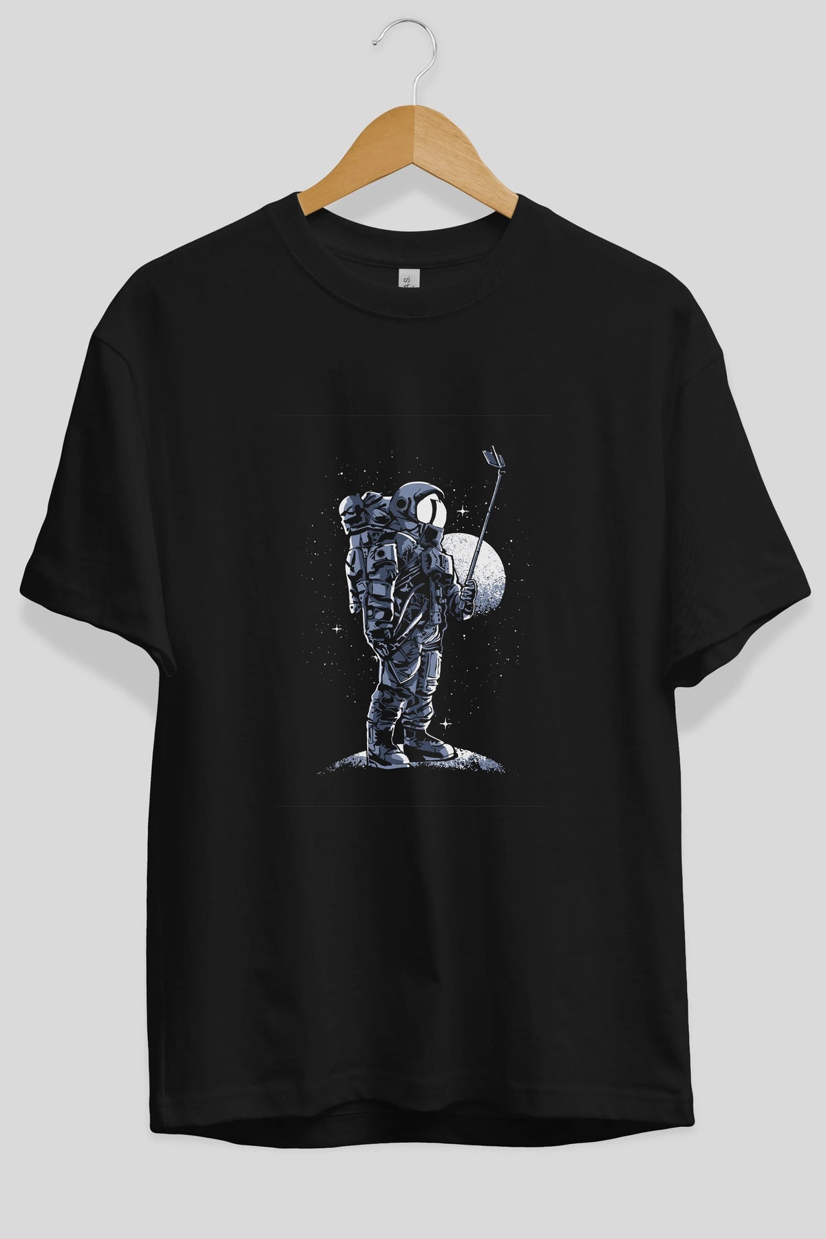 Selfie Astronaut Ön Baskılı Oversize t-shirt Erkek Kadın Unisex %100 Pamuk tişort
