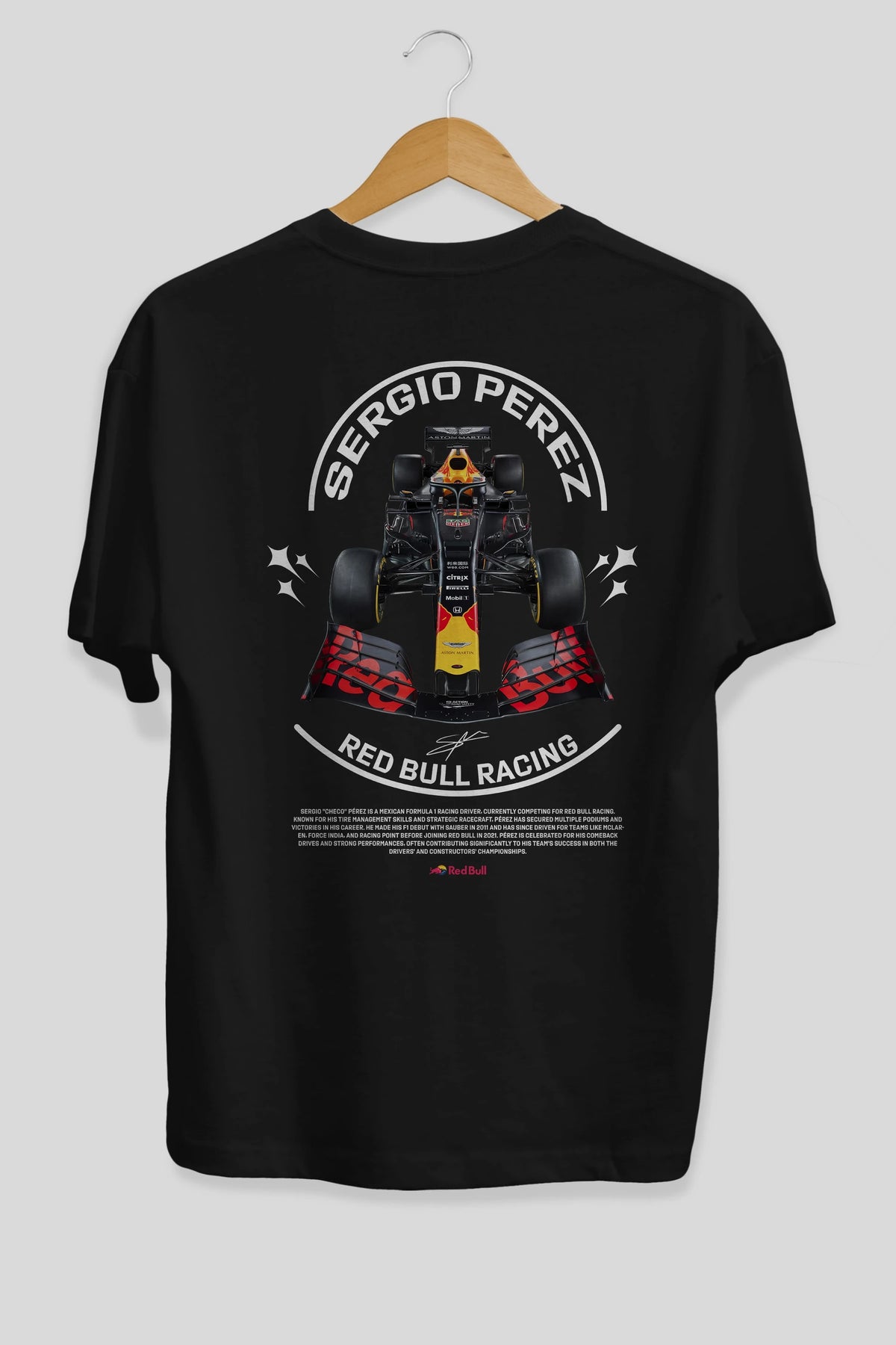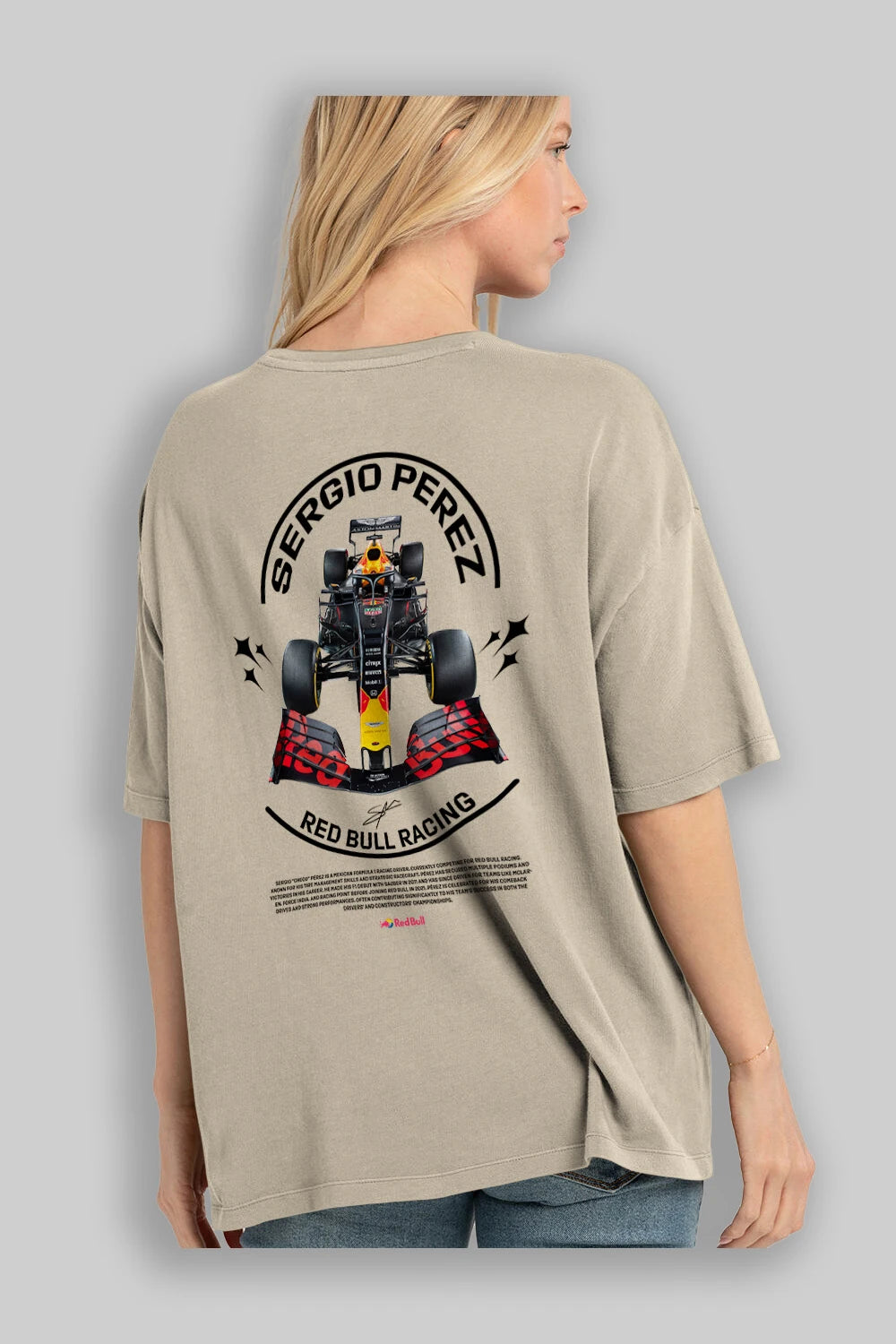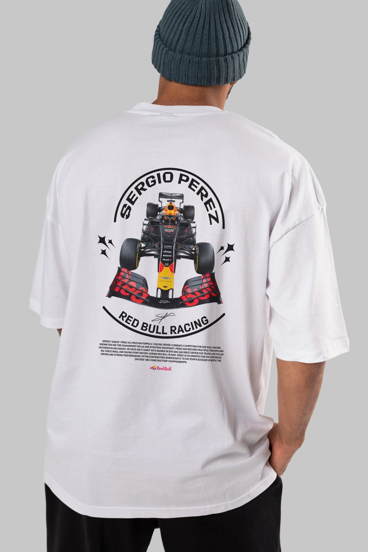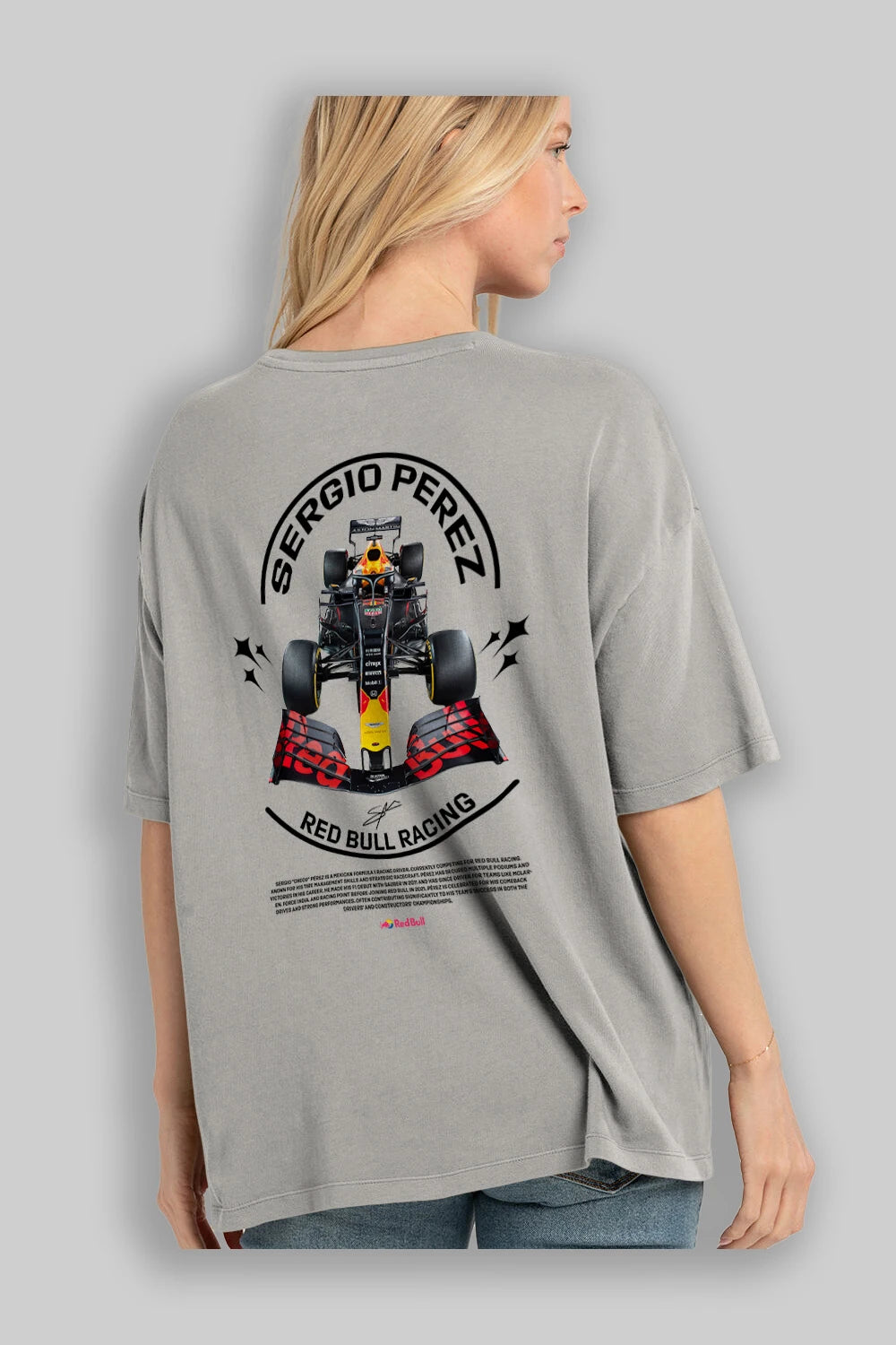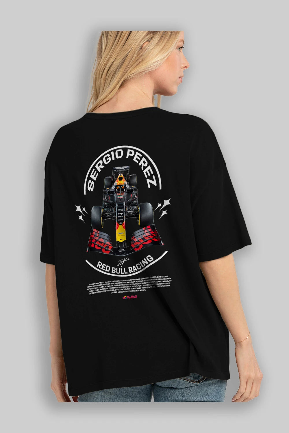 Sergio Perez Redbull Racing F1 Arka Baskılı Oversize t-shirt Erkek Kadın Unisex %100 Pamuk Bisiklet Yaka tişort