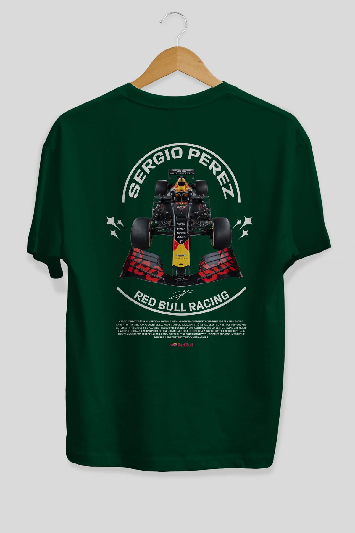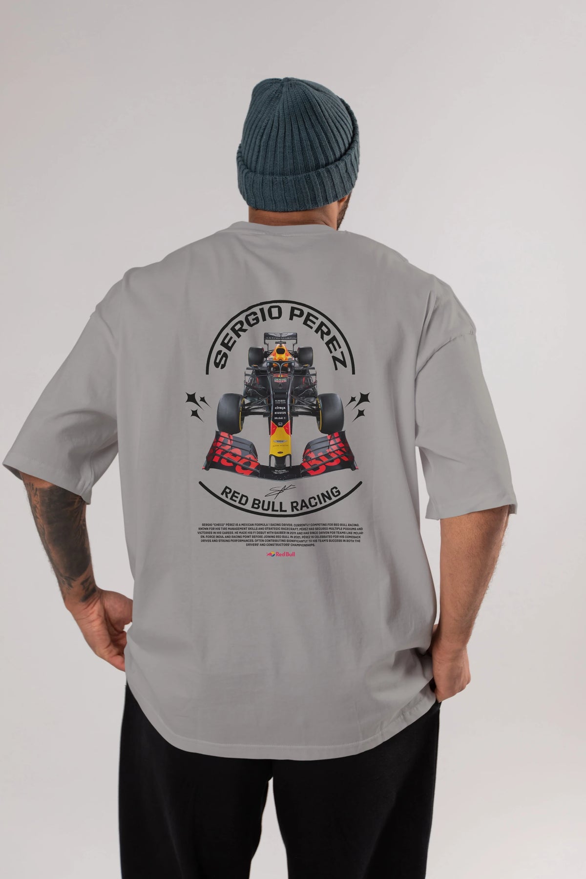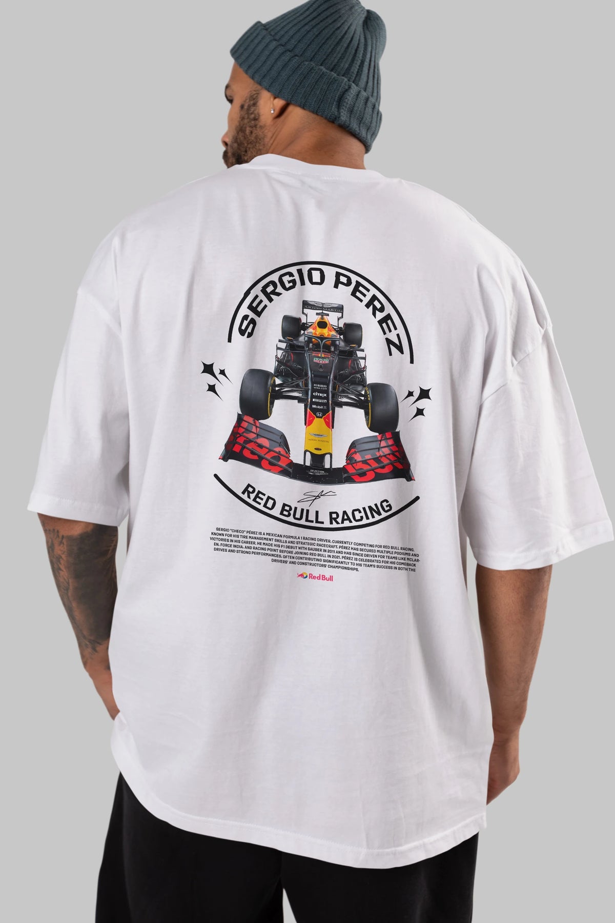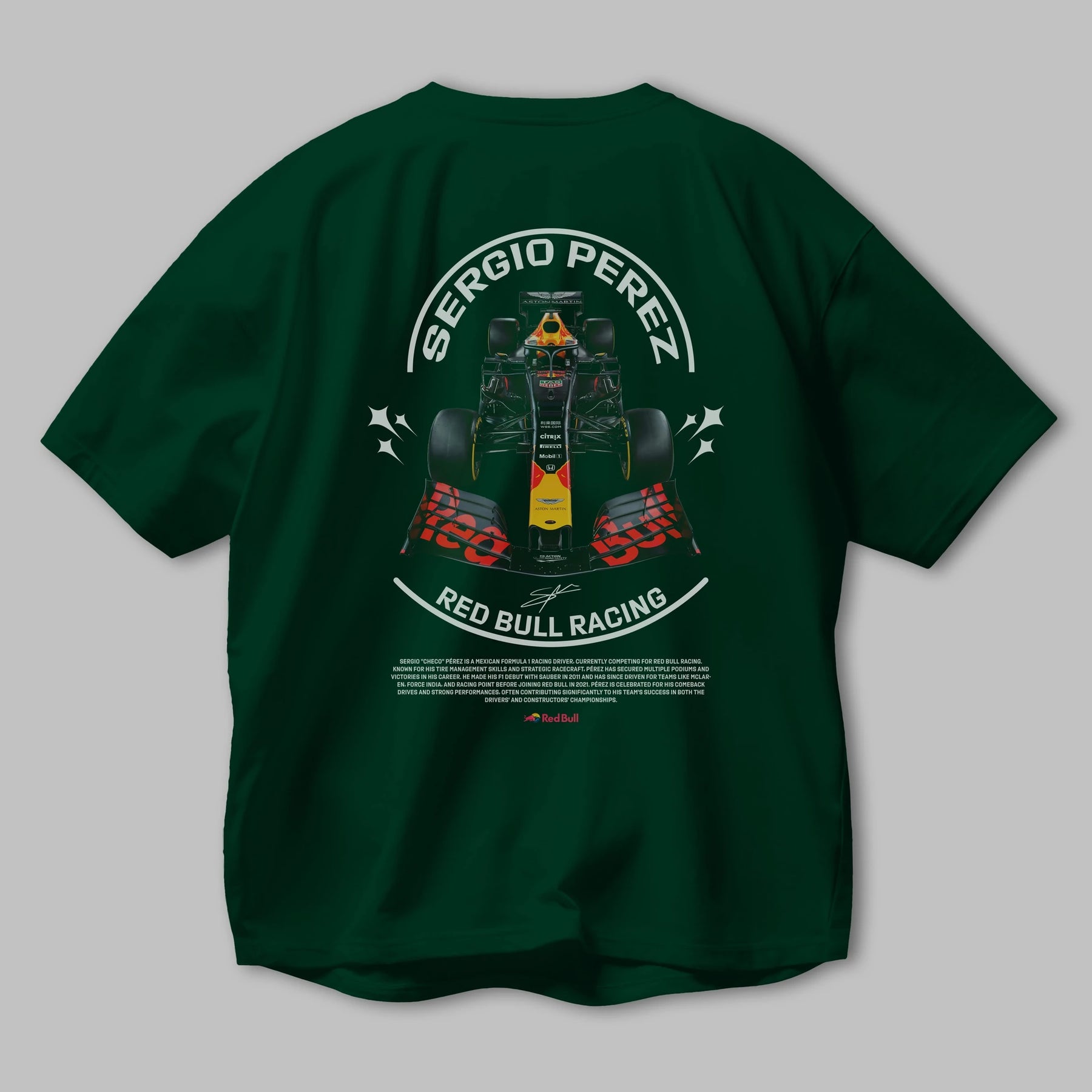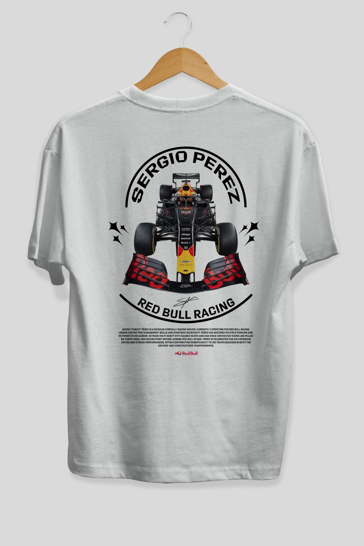 Sergio Perez Redbull Racing F1 Arka Baskılı Oversize t-shirt Erkek Kadın Unisex %100 Pamuk Bisiklet Yaka tişort