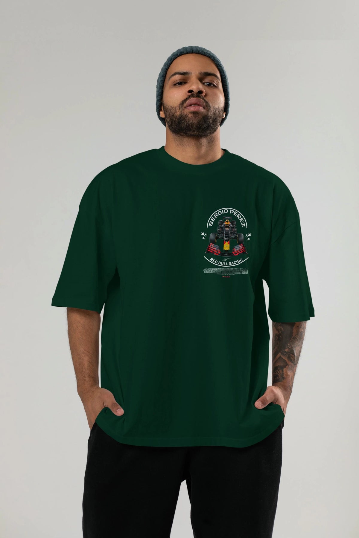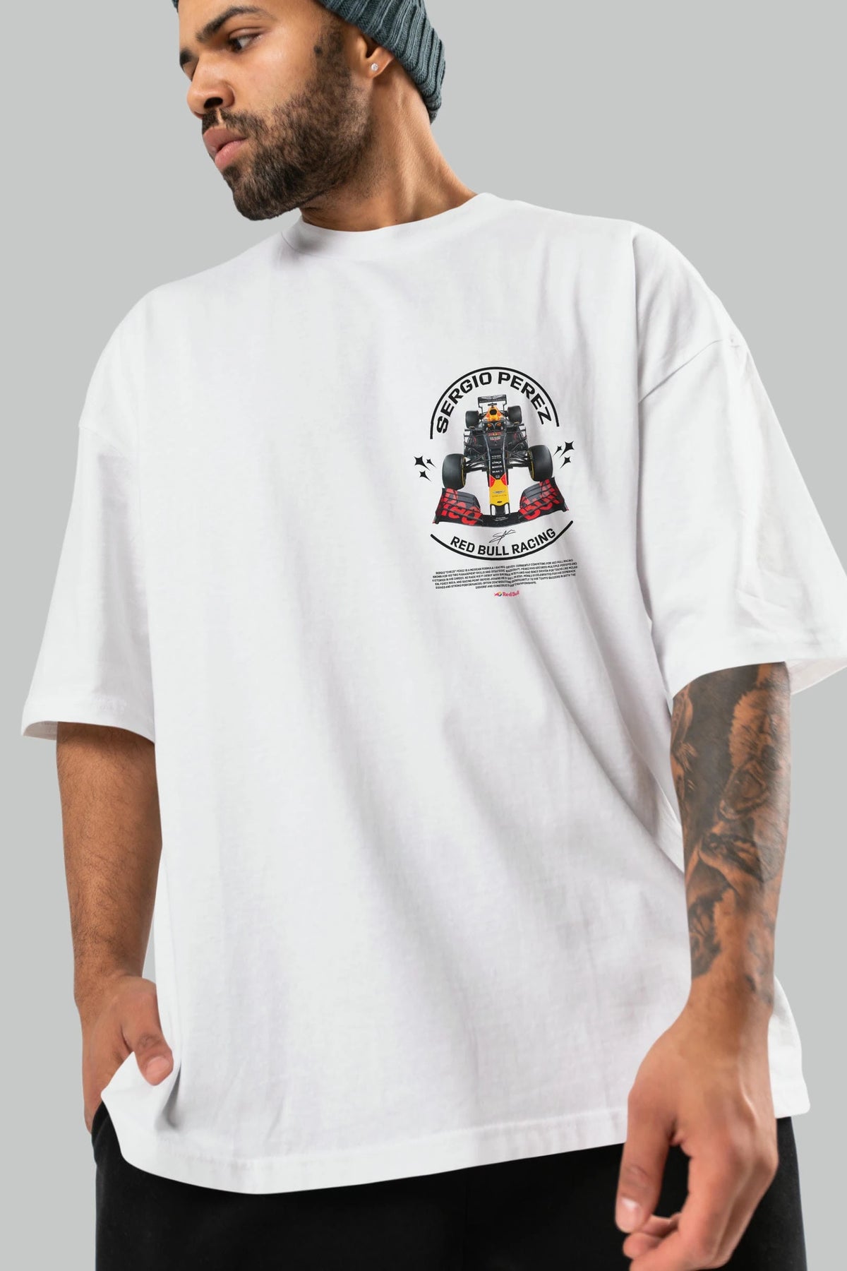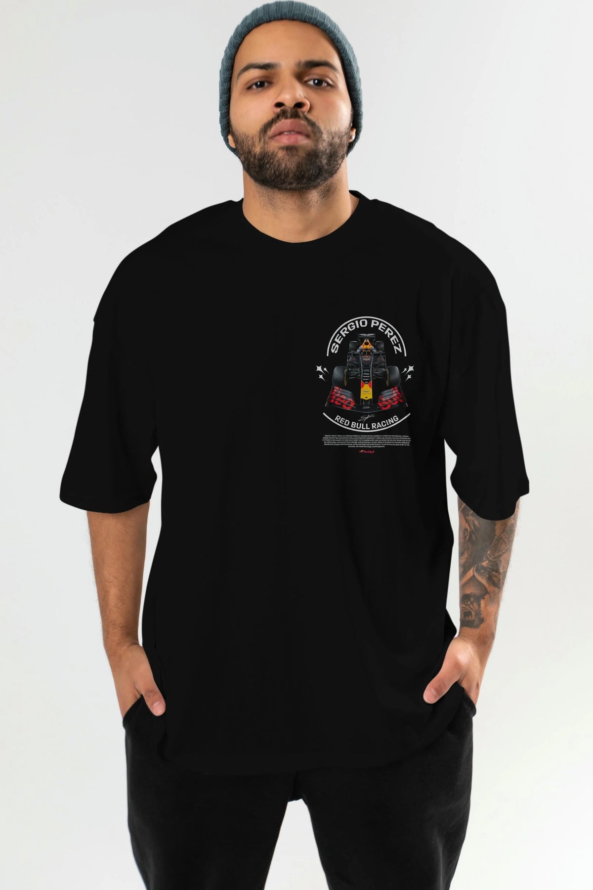 Sergio Perez Redbull Racing F1 Ön Sol Baskılı Oversize t-shirt Erkek Kadın Unisex %100 Pamuk Bisiklet Yaka tişort