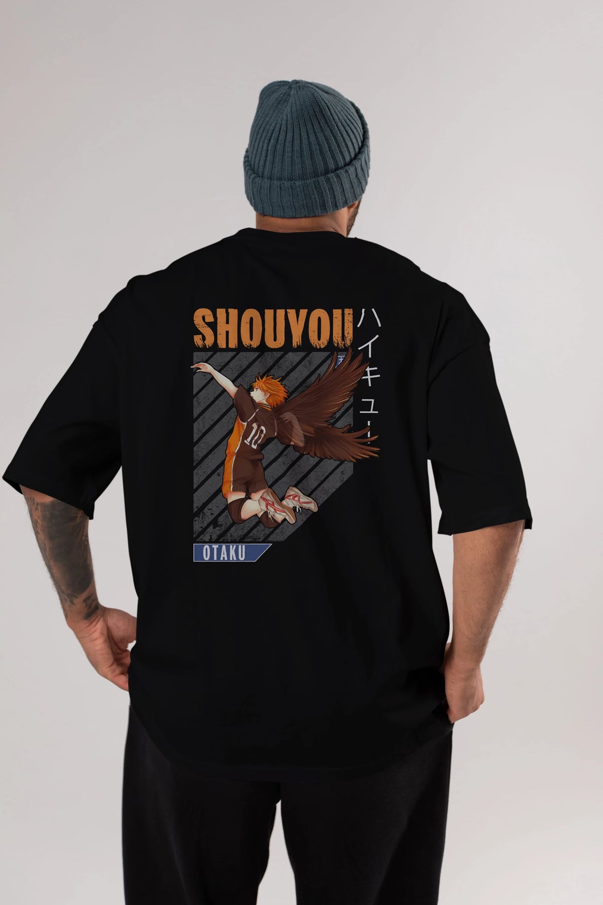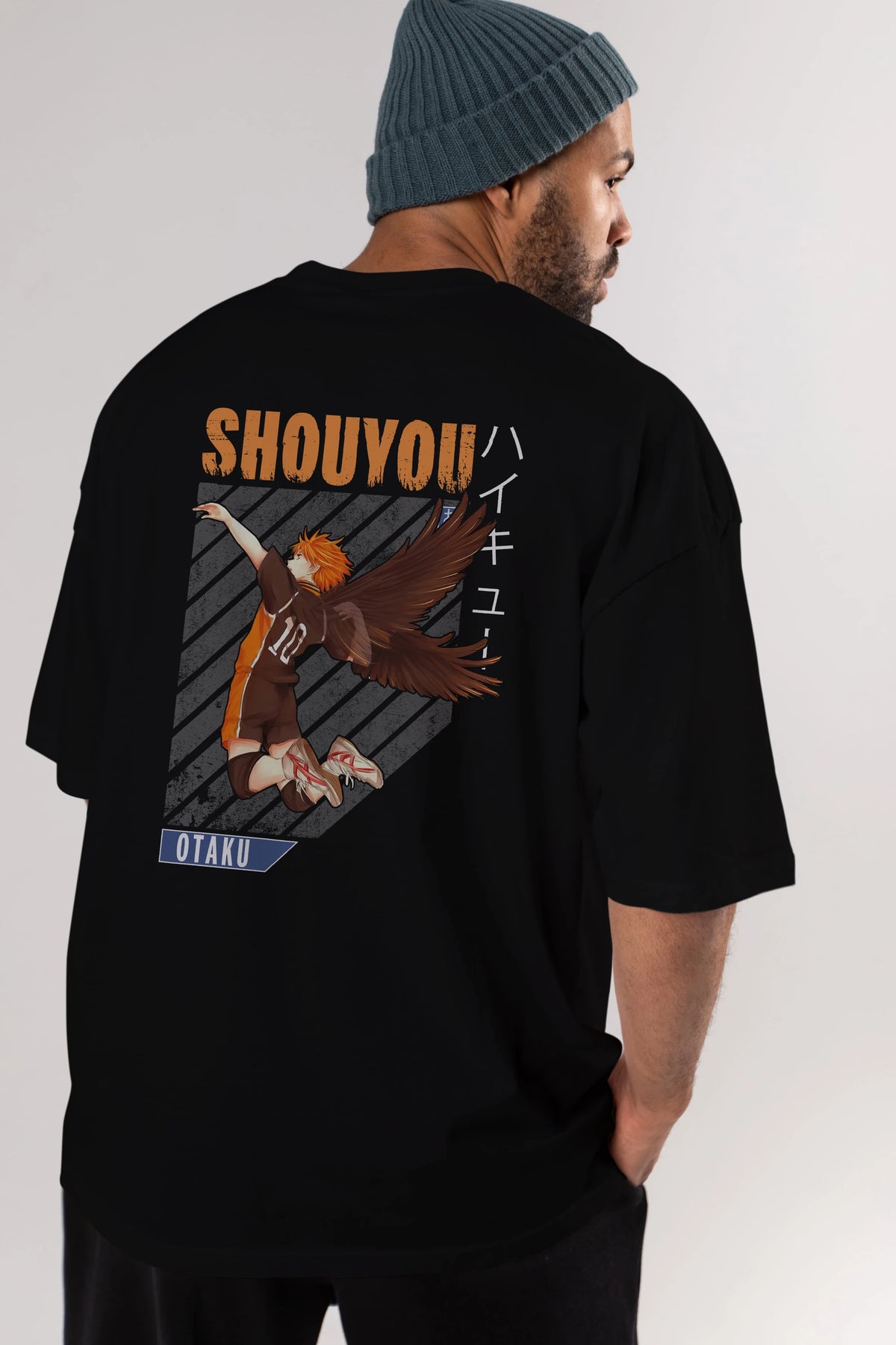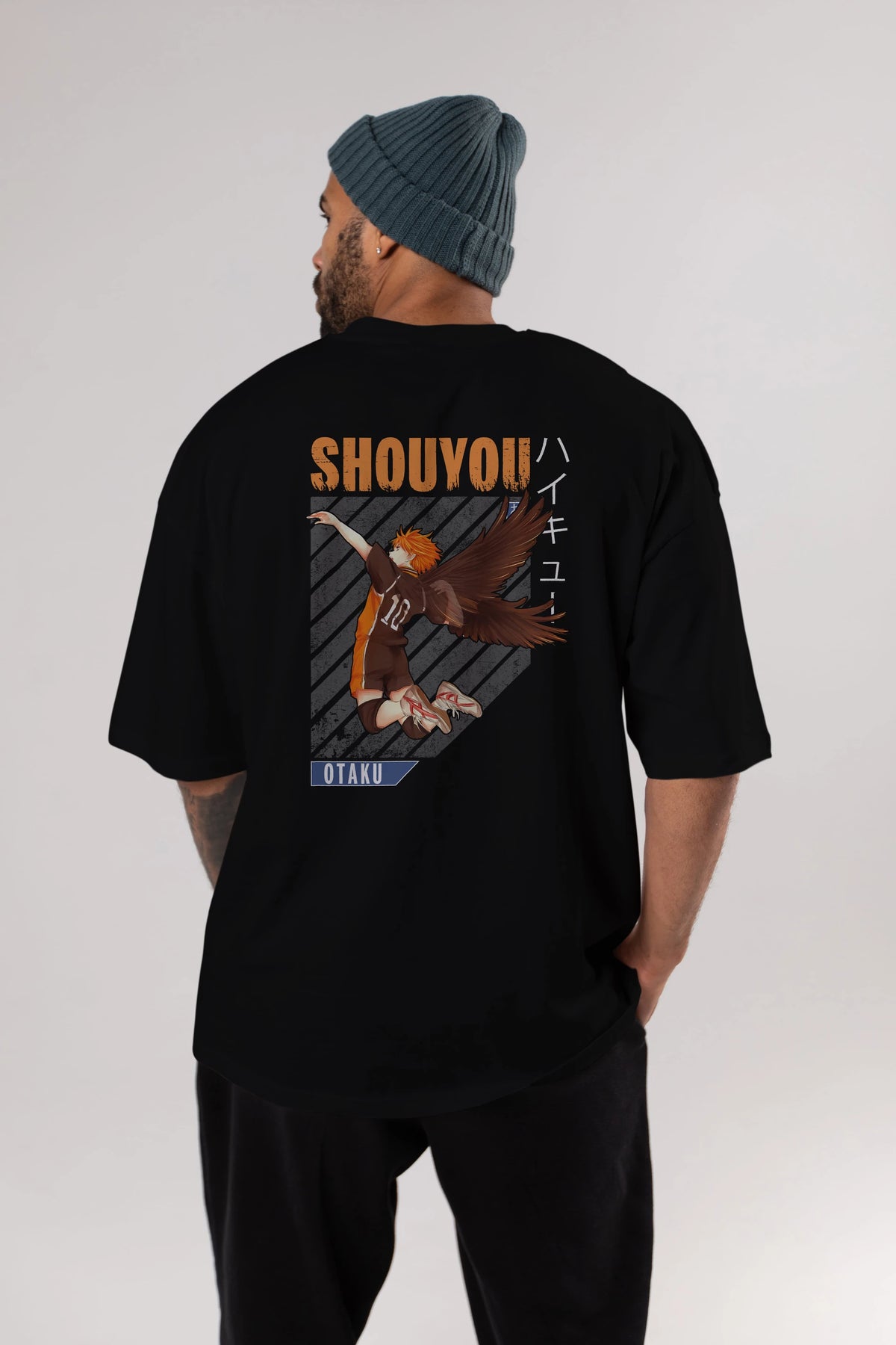 Shouyou Hinata 10 Anime Arka Baskılı Oversize t-shirt Erkek Kadın Unisex