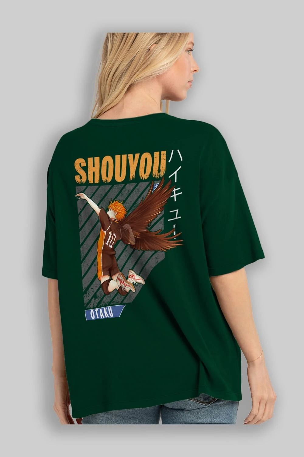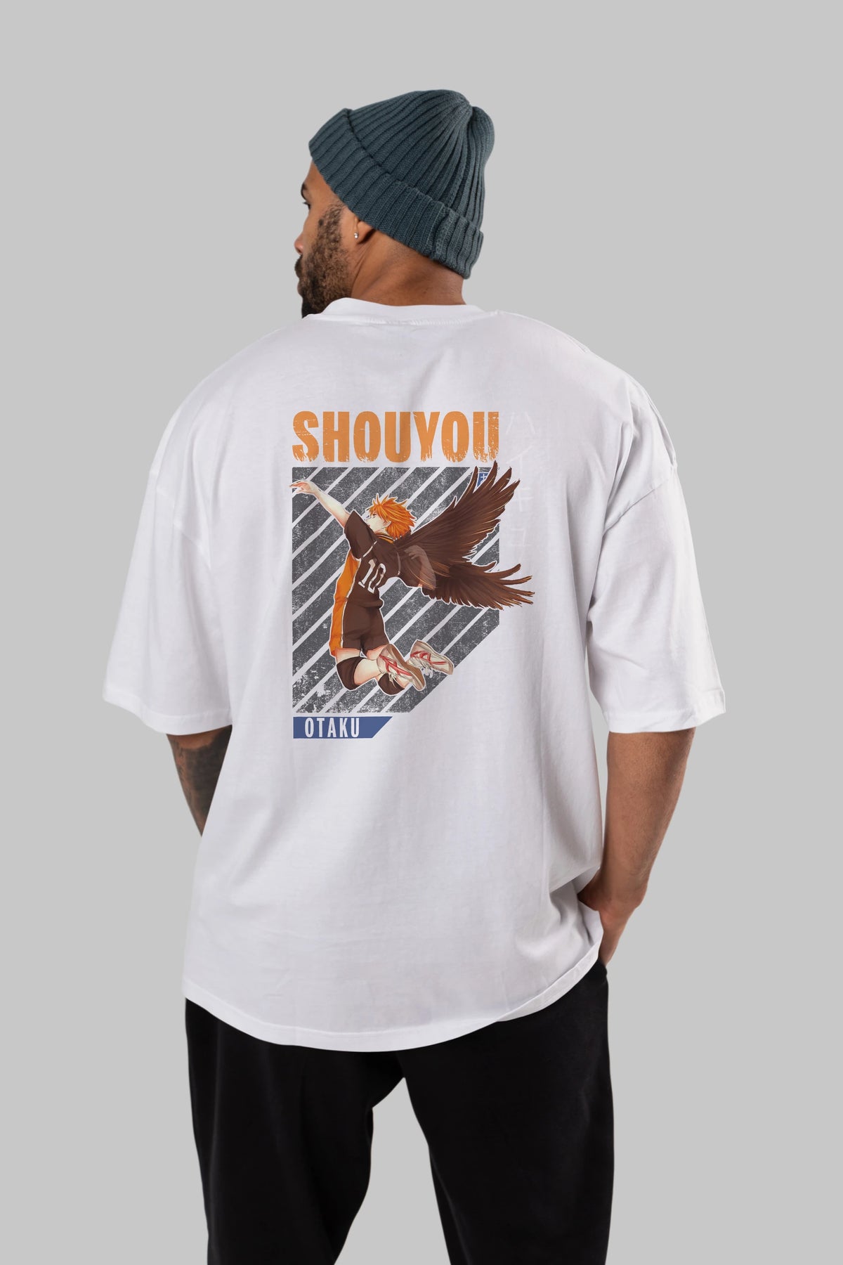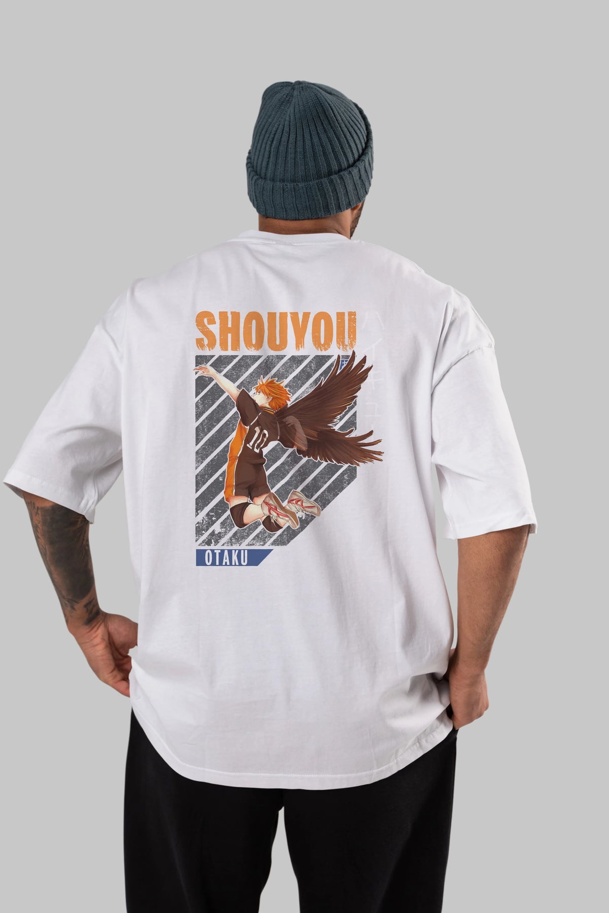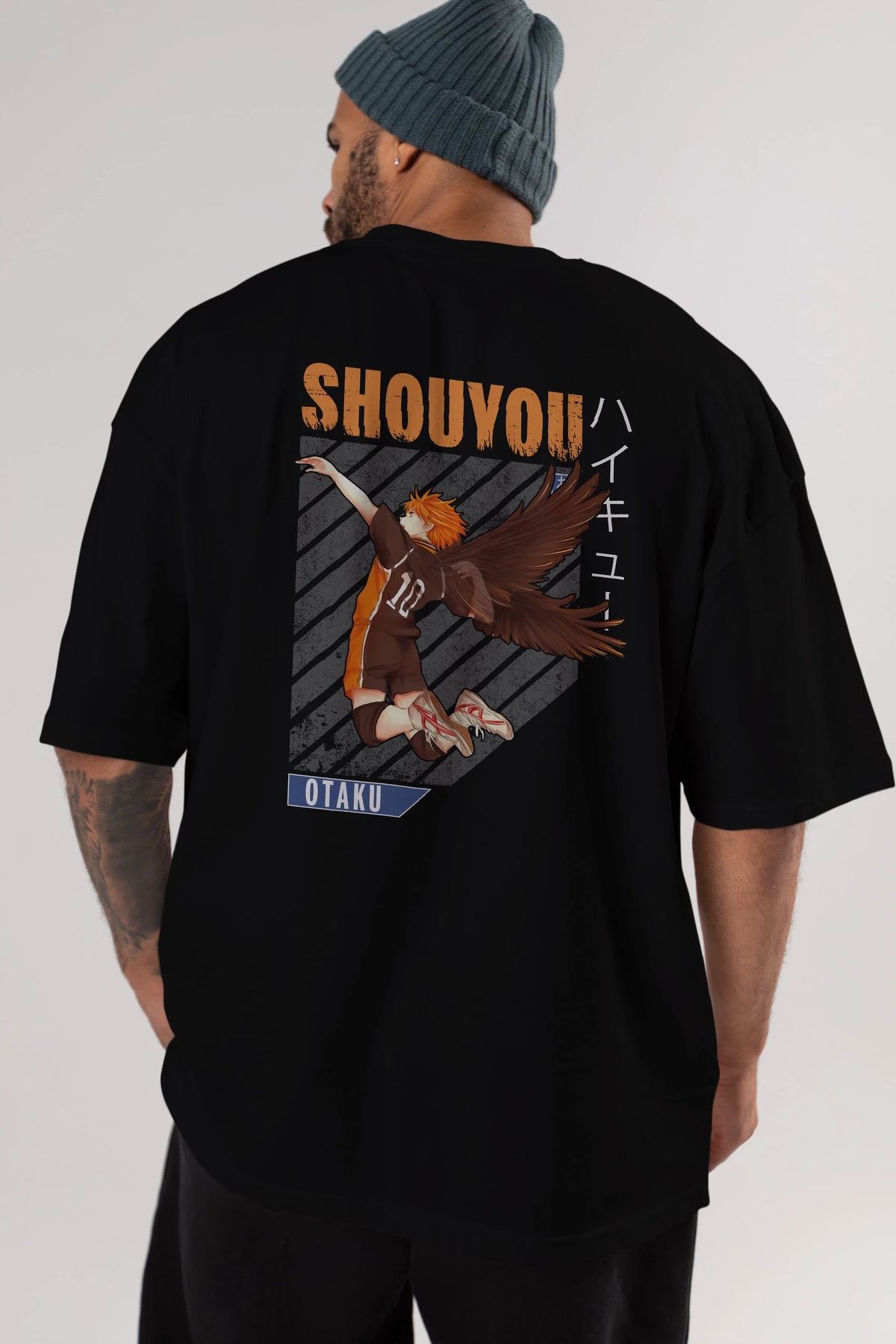 Shouyou Hinata 10 Anime Arka Baskılı Oversize t-shirt Erkek Kadın Unisex