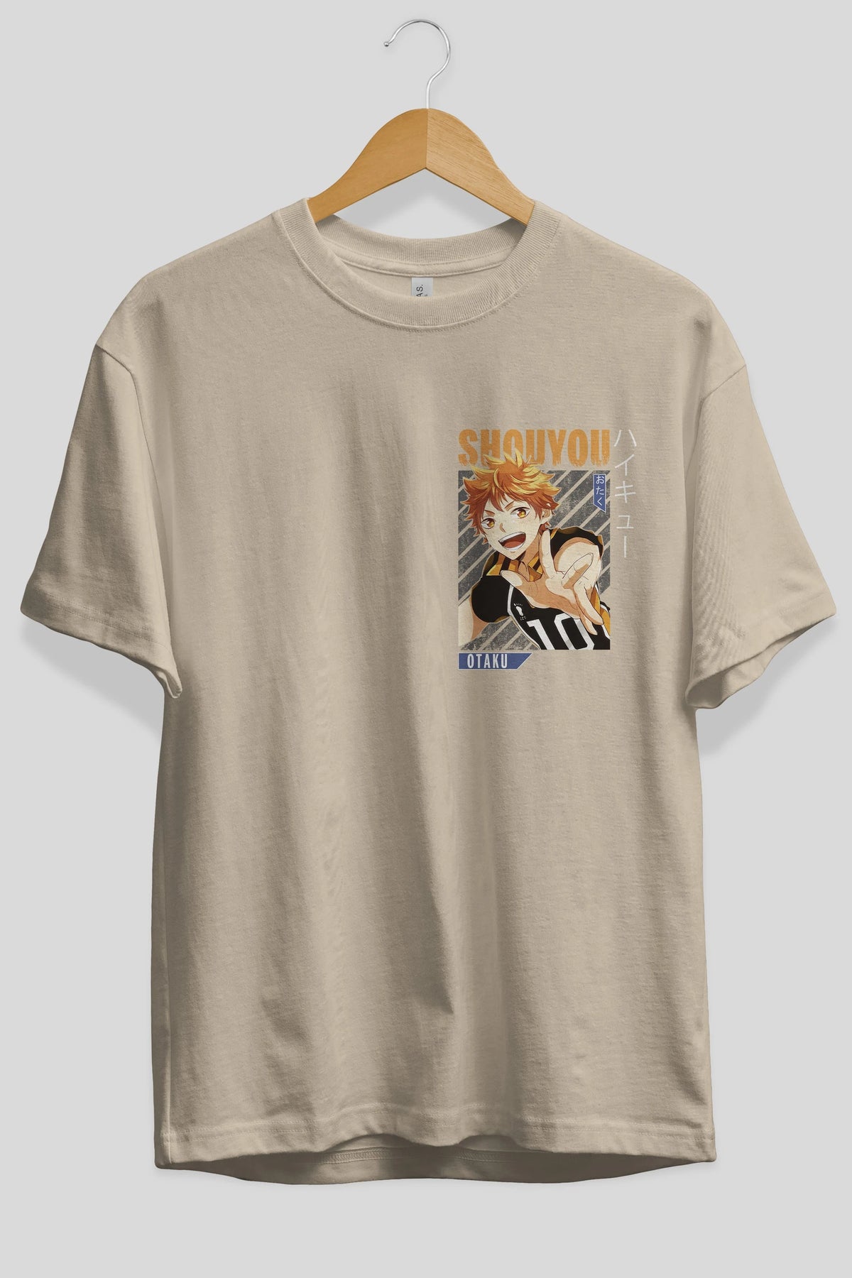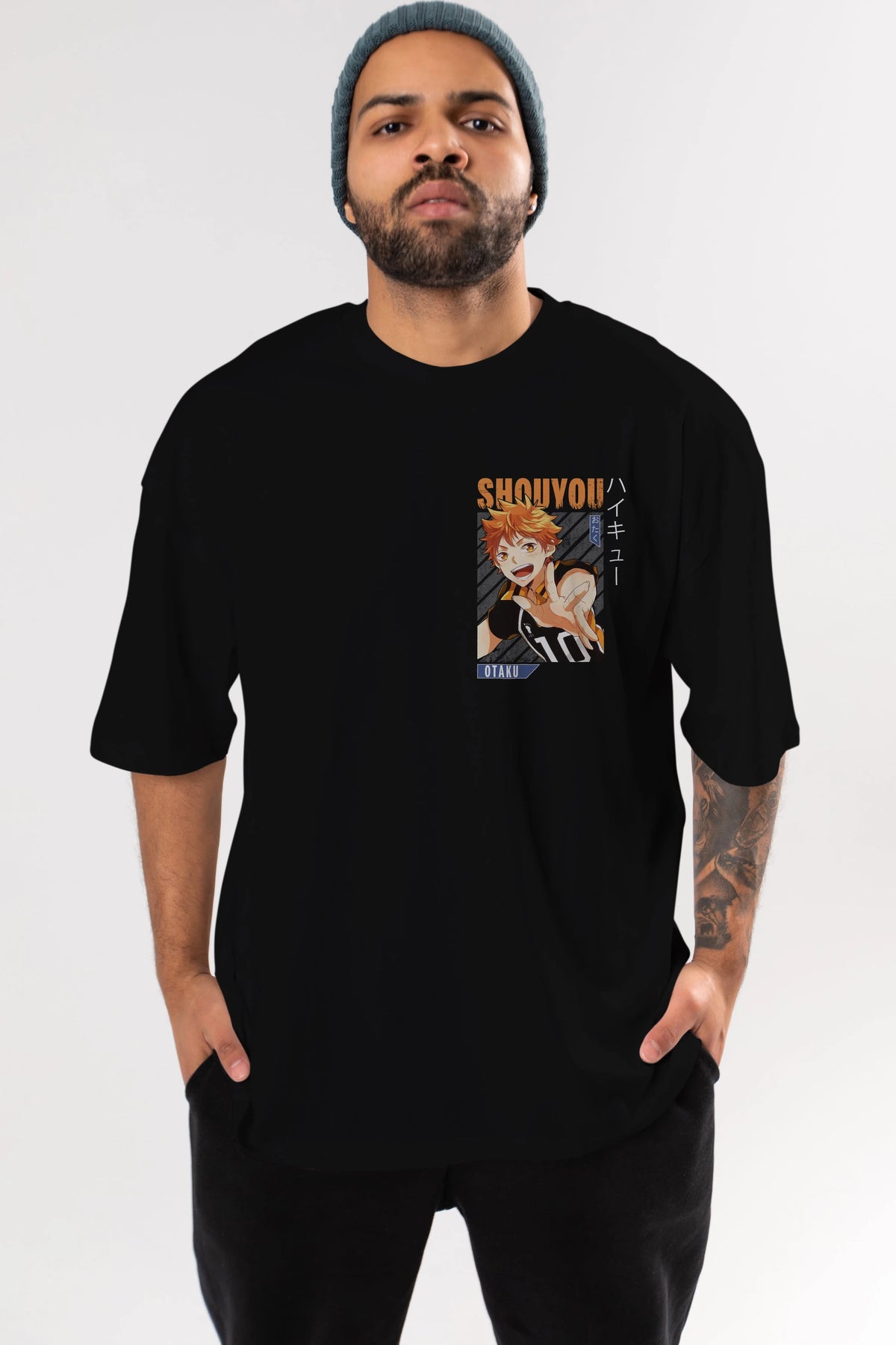Shouyou Hinata 9 Ön Sol Baskılı Oversize t-shirt Erkek Kadın Unisex %100 Pamuk Bisiklet Yaka tişort