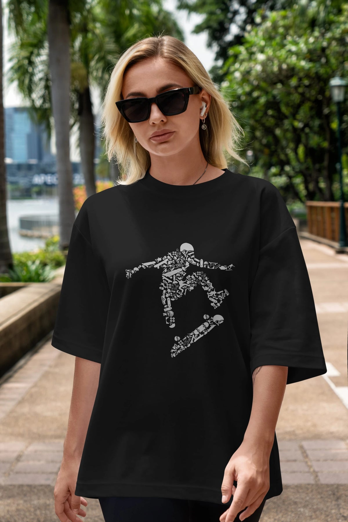 Skater Ön Baskılı Oversize t-shirt %100 pamuk Erkek Kadın Unisex