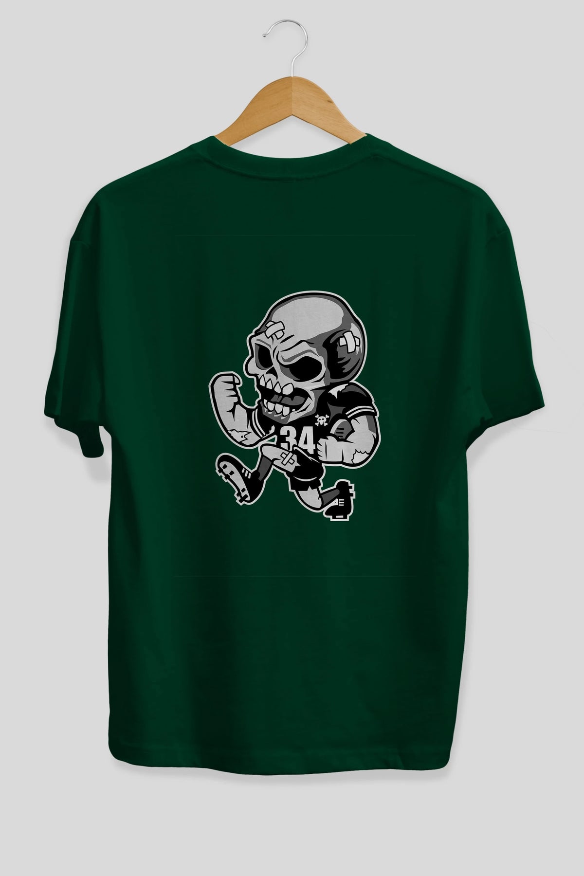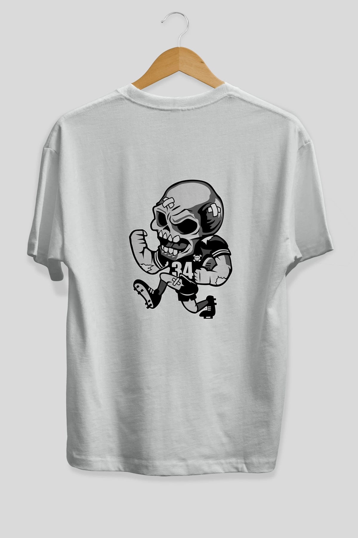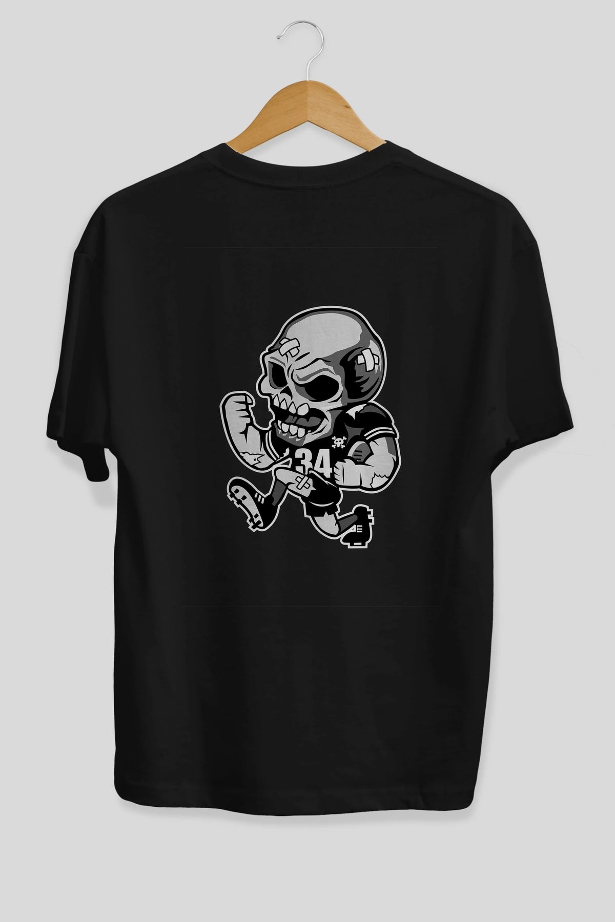 Skull Football Arka Baskılı Oversize t-shirt Erkek Kadın Unisex %100 Pamuk tişort