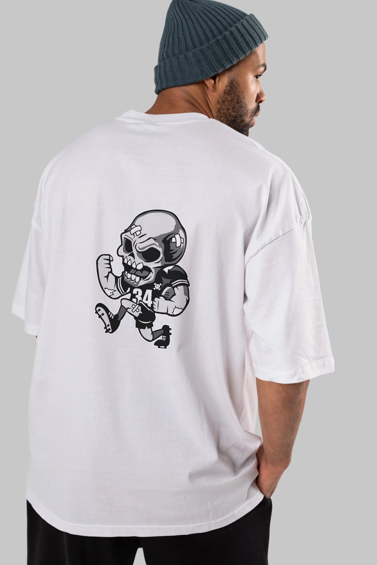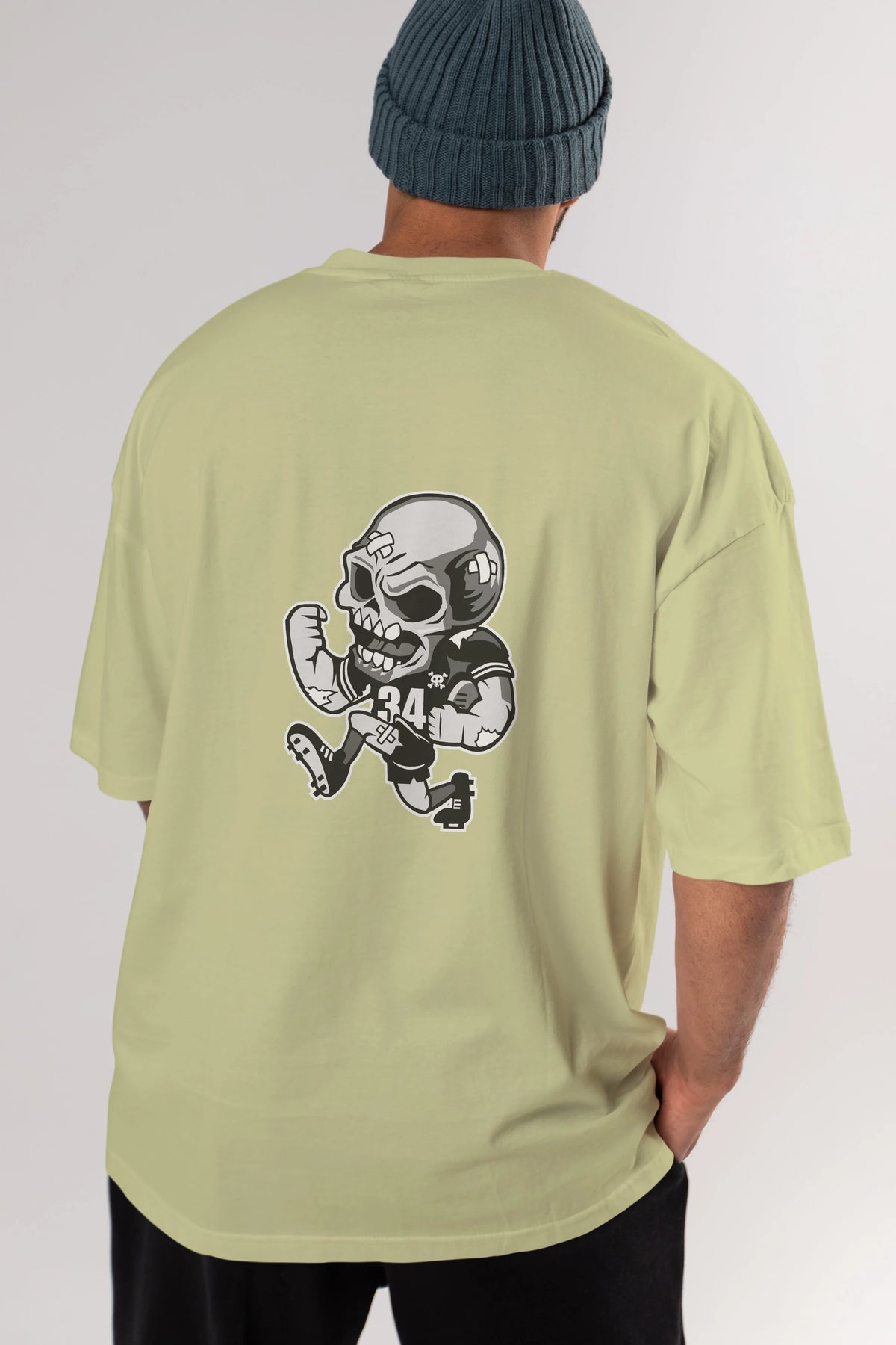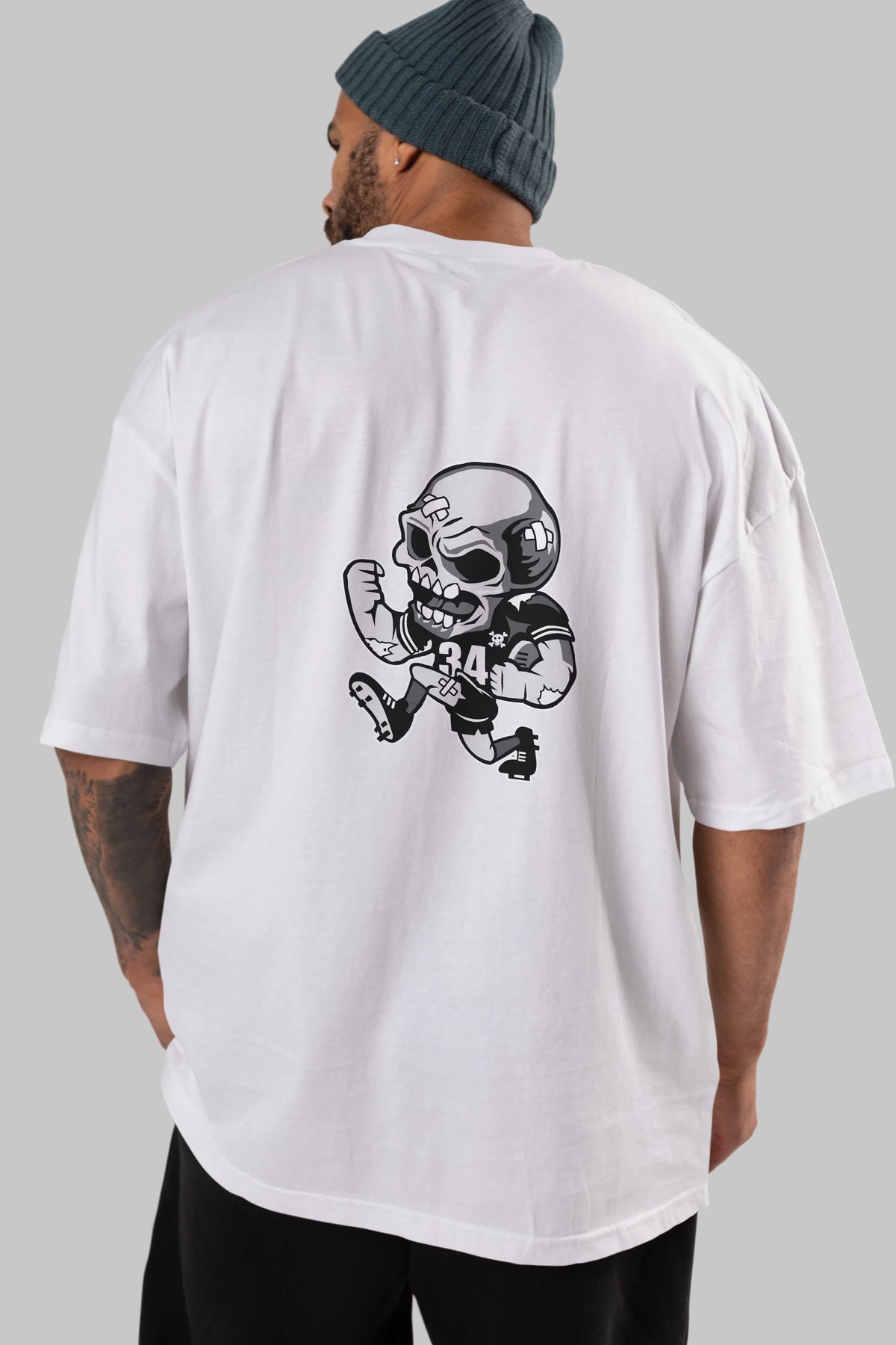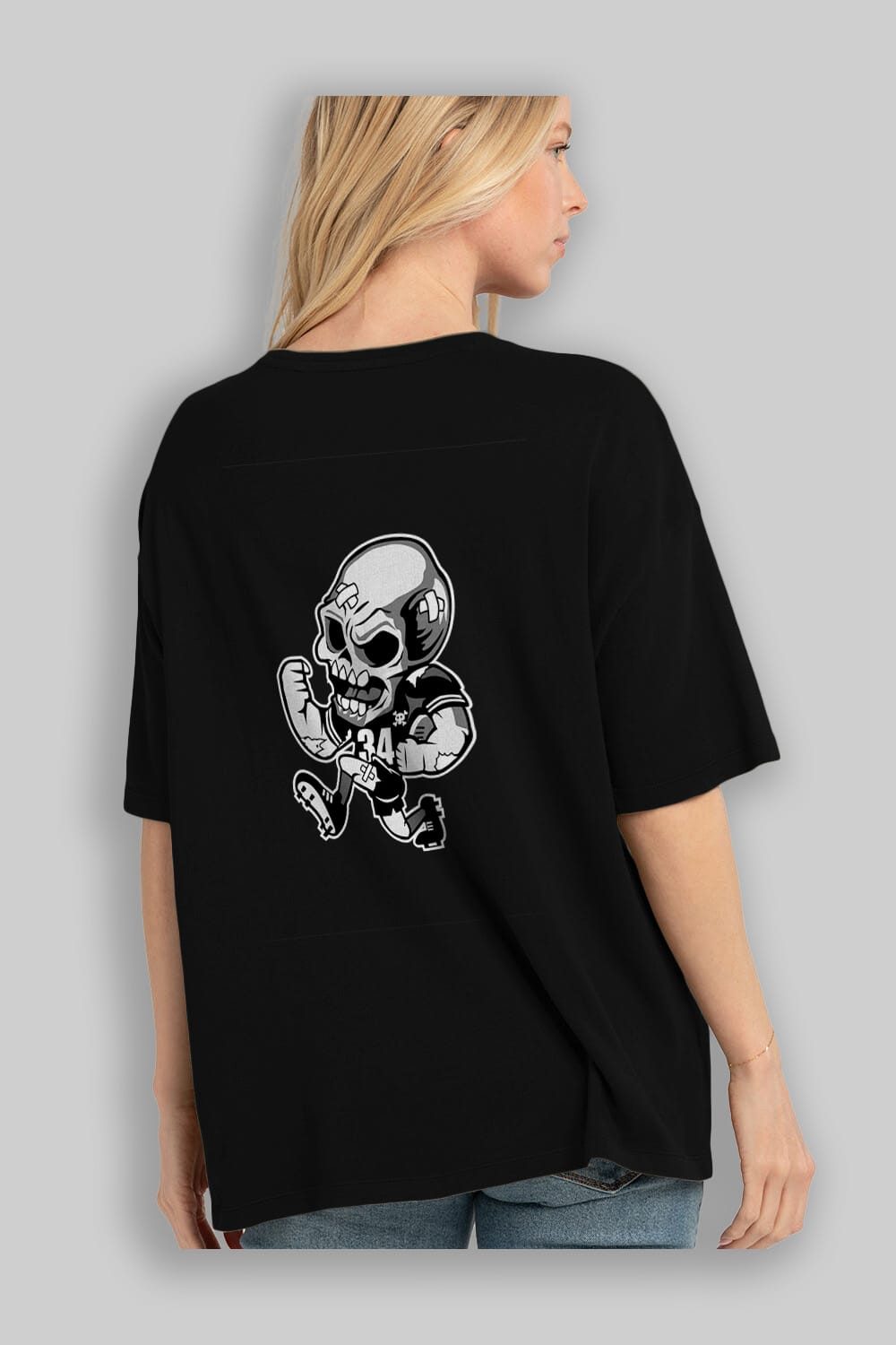 Skull Football Arka Baskılı Oversize t-shirt Erkek Kadın Unisex %100 Pamuk tişort