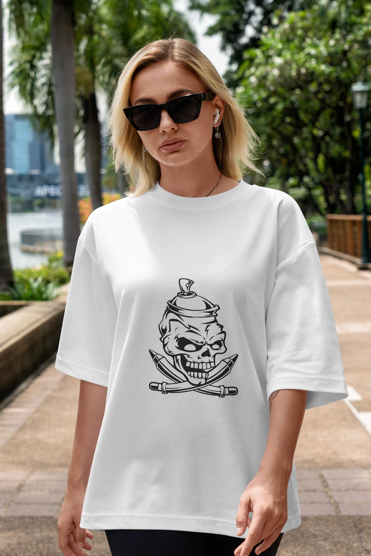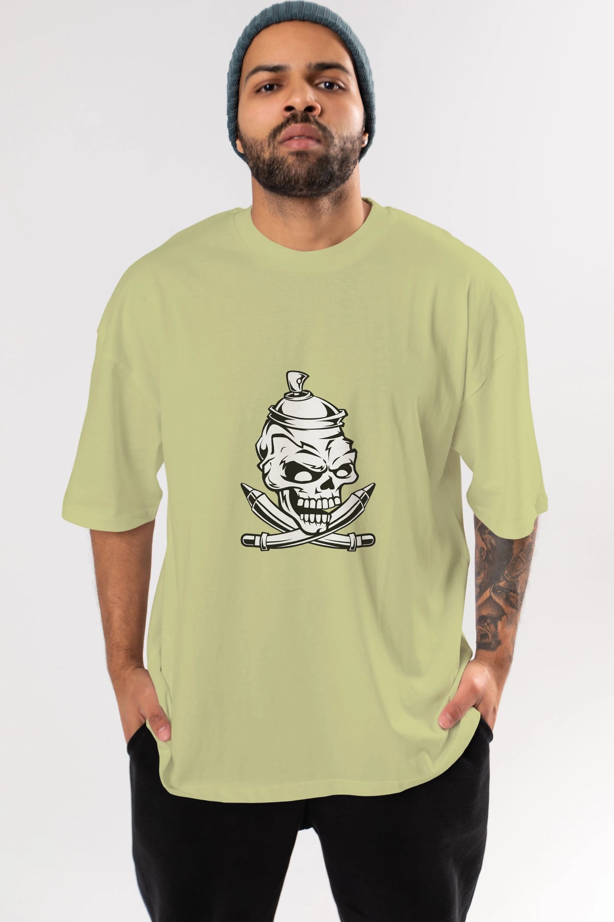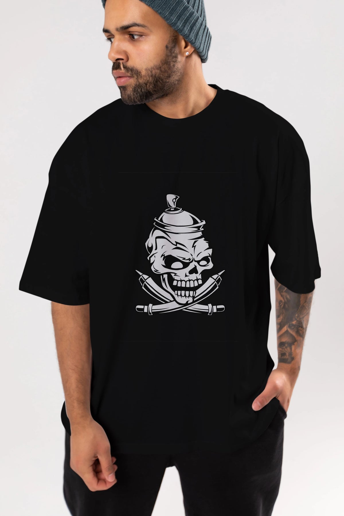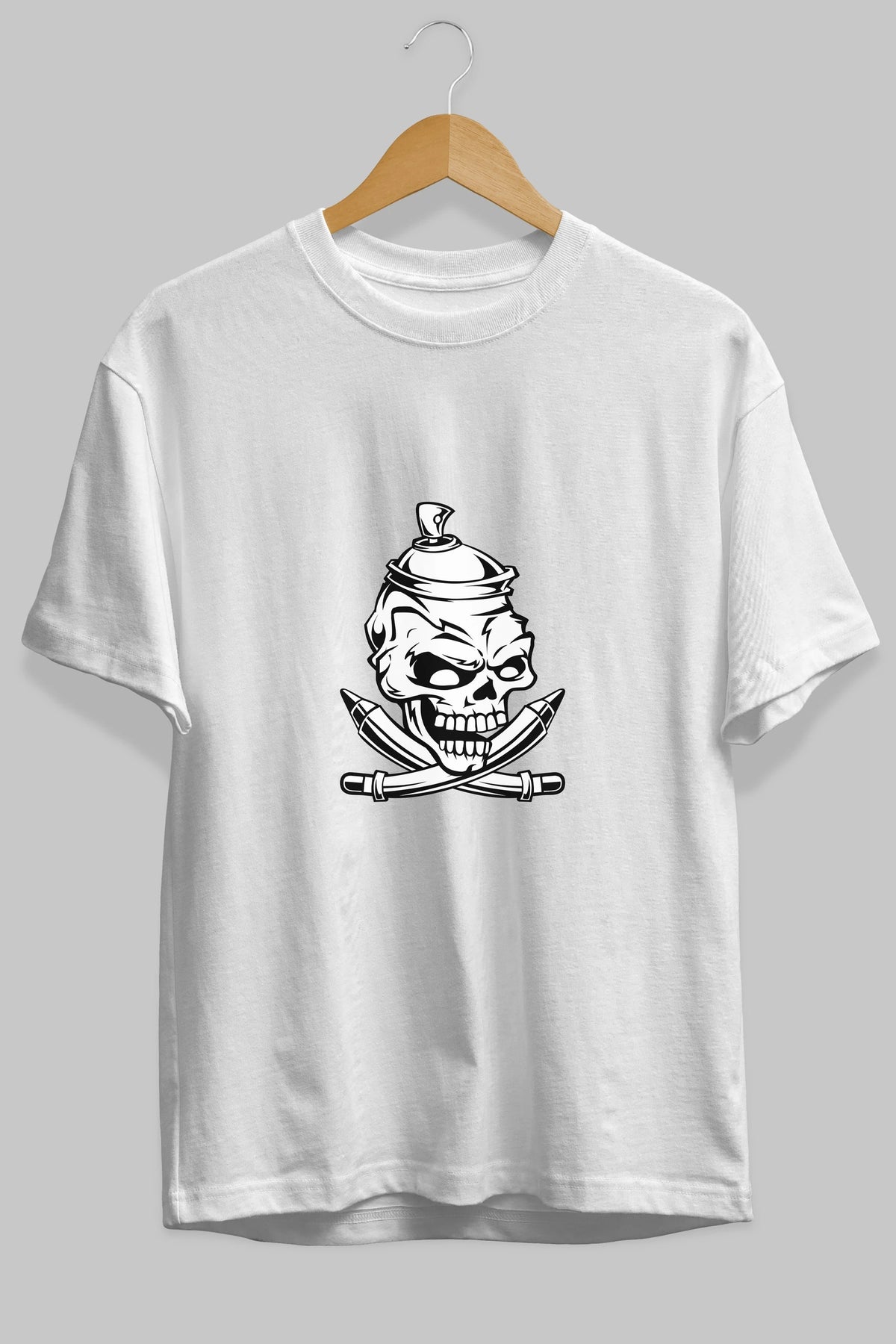 Skull Grafity Ön Baskılı Oversize t-shirt Erkek Kadın Unisex %100 Pamuk tişort