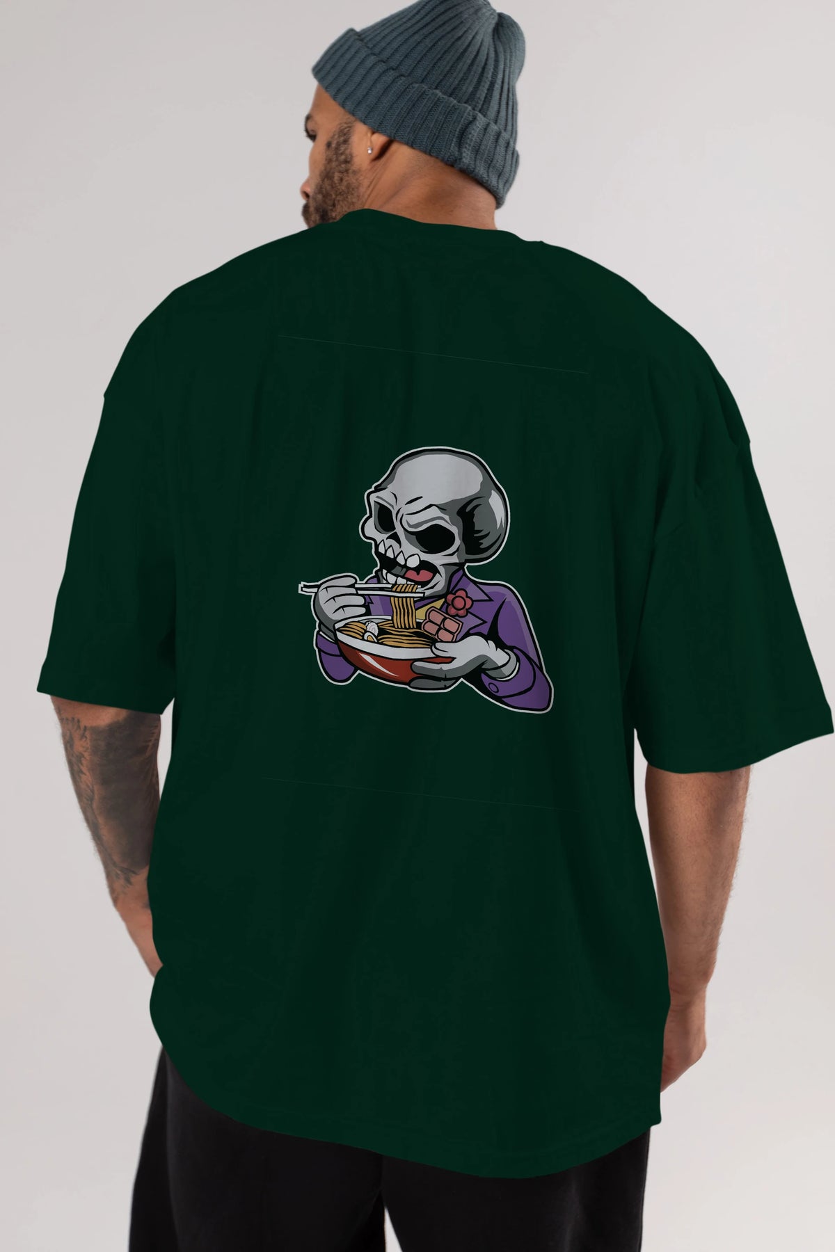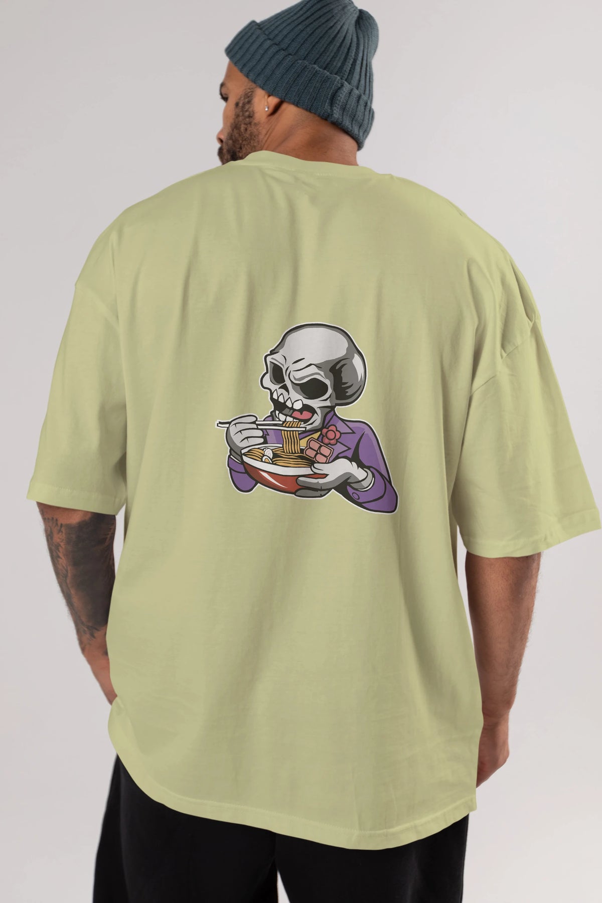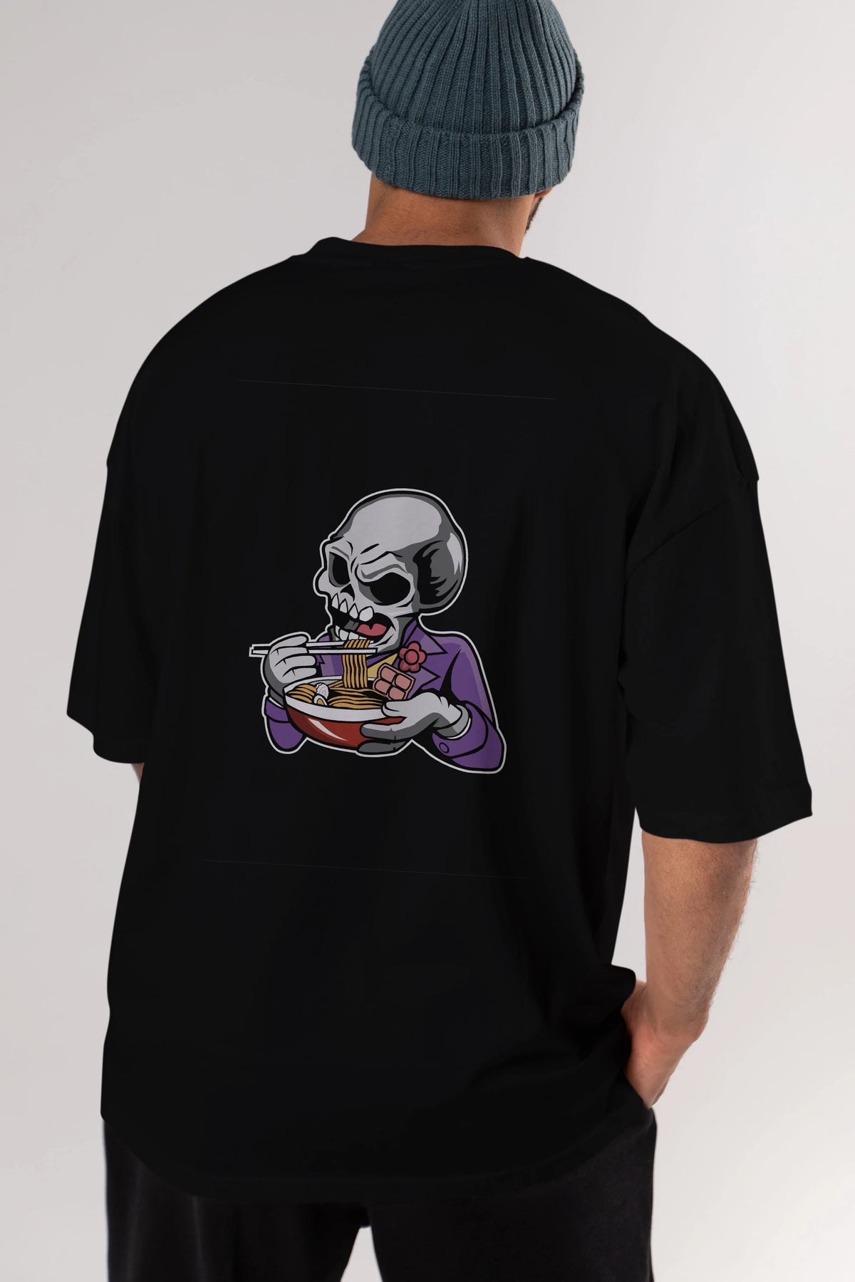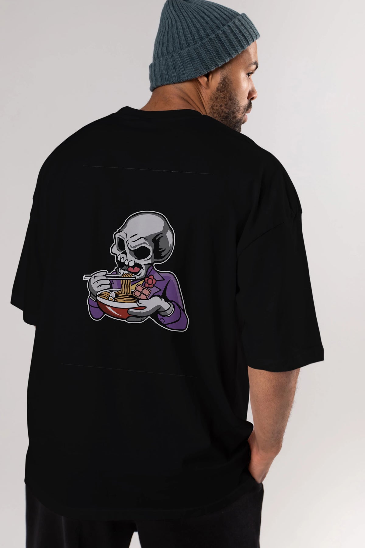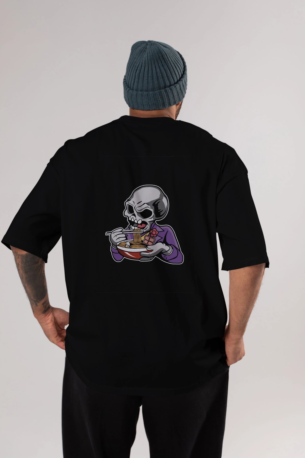 Skull Ramen Arka Baskılı Oversize t-shirt Erkek Kadın Unisex %100 Pamuk tişort