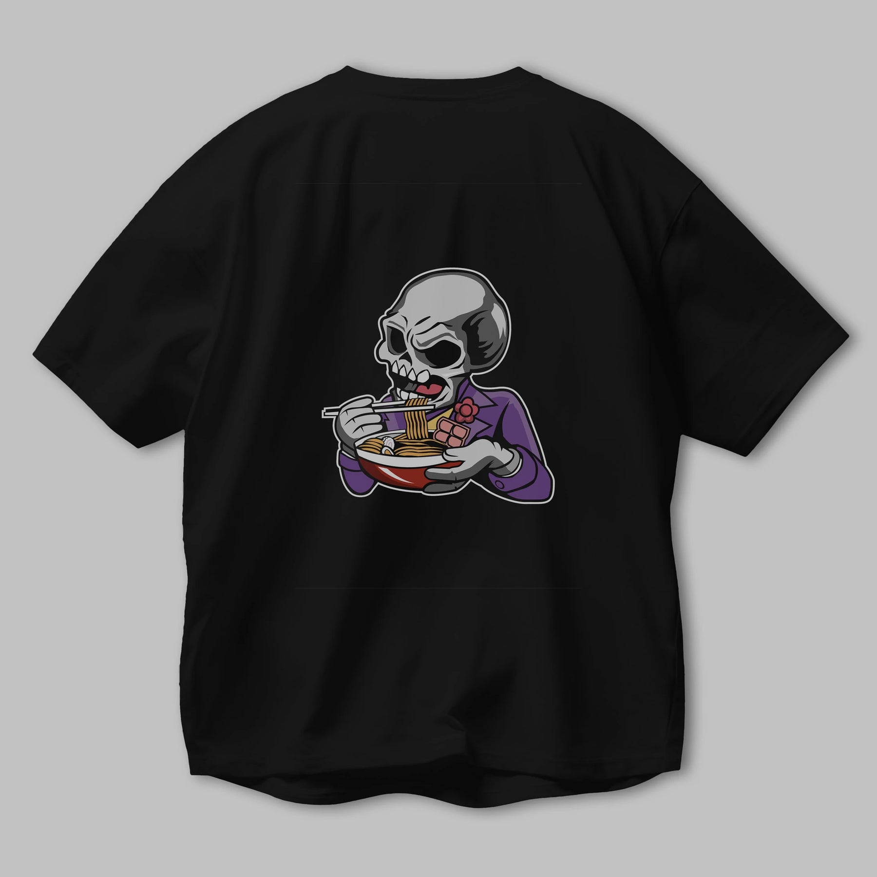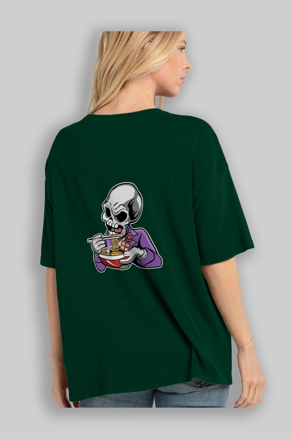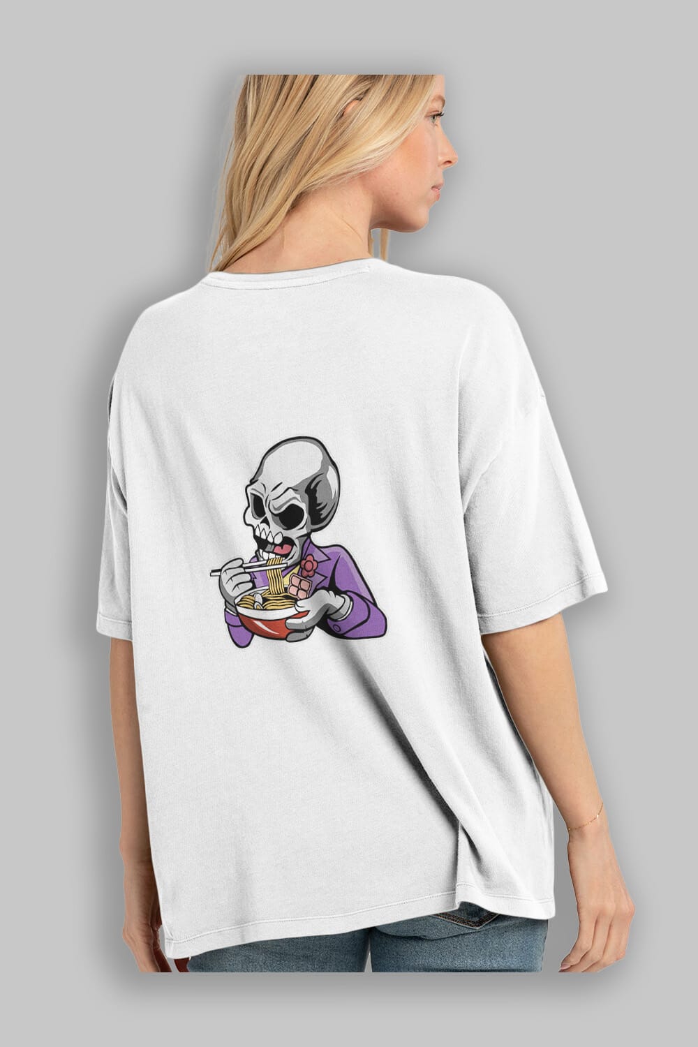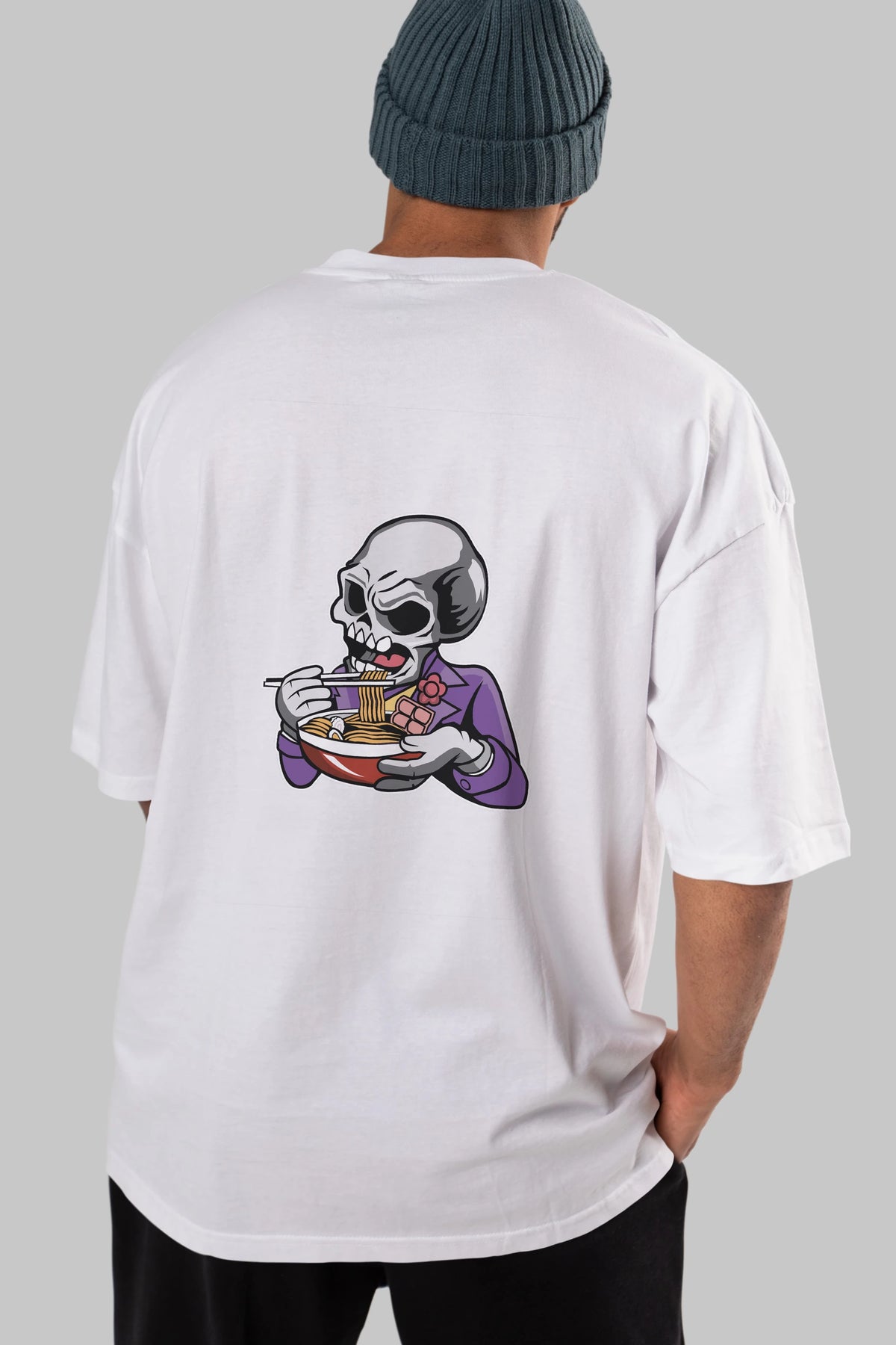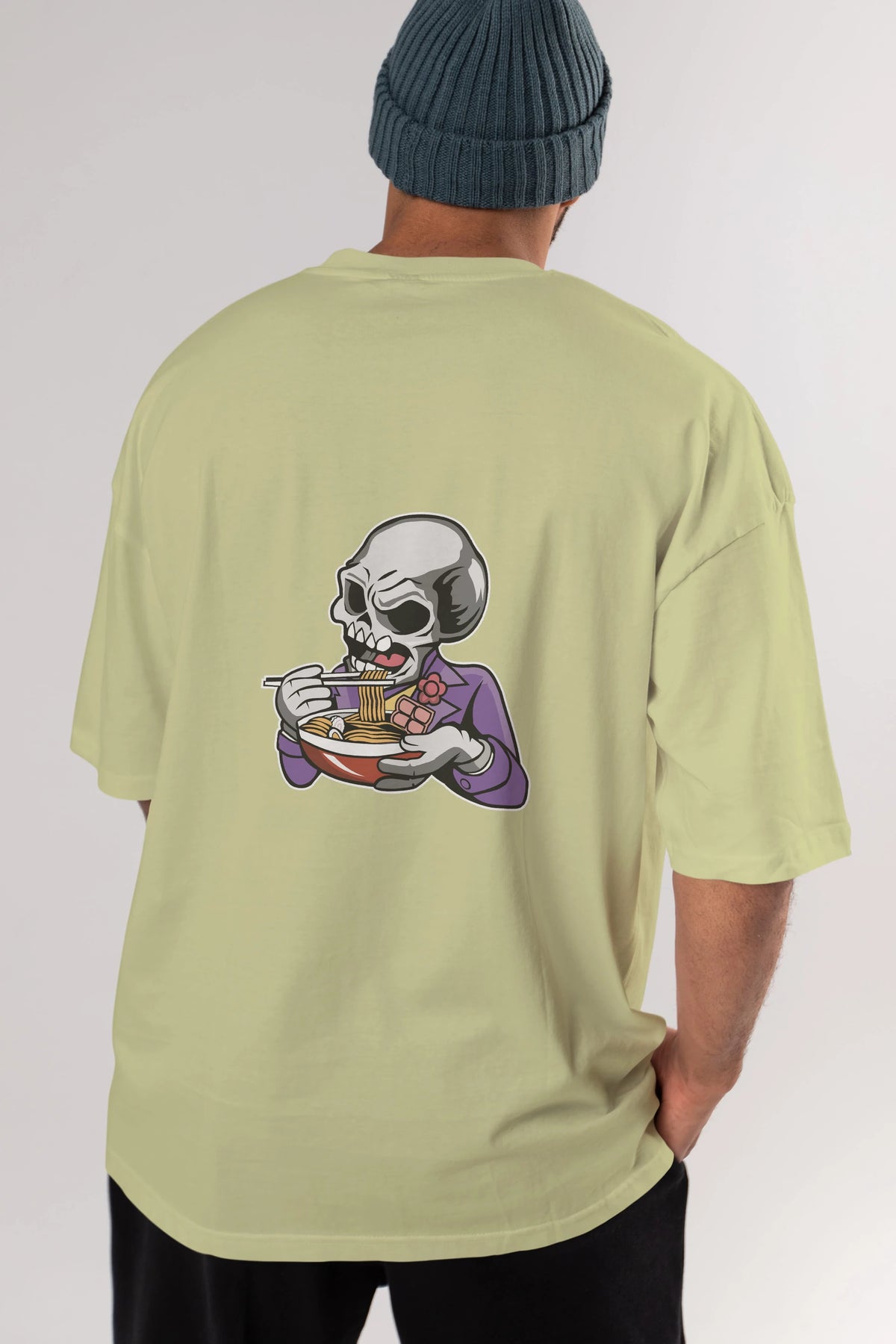 Skull Ramen Arka Baskılı Oversize t-shirt Erkek Kadın Unisex %100 Pamuk tişort