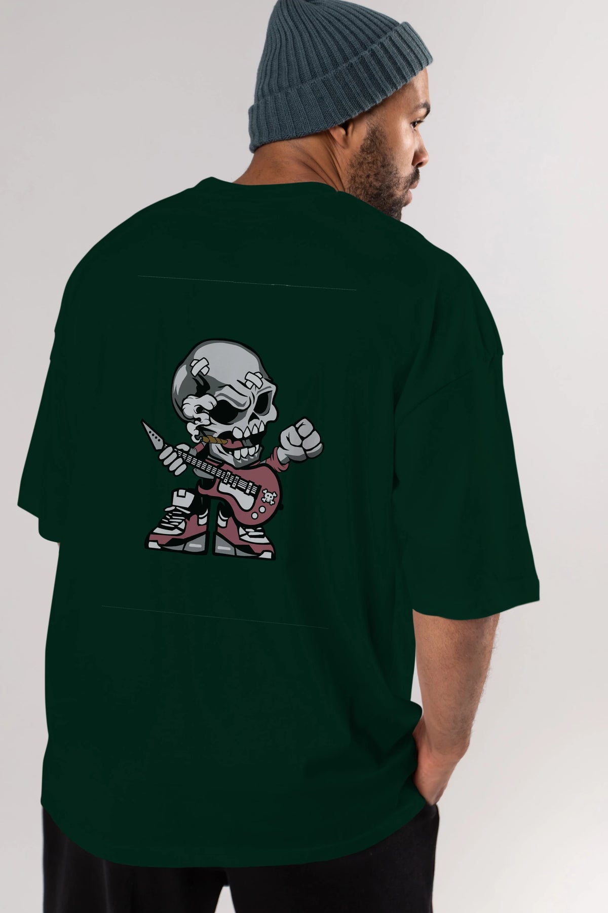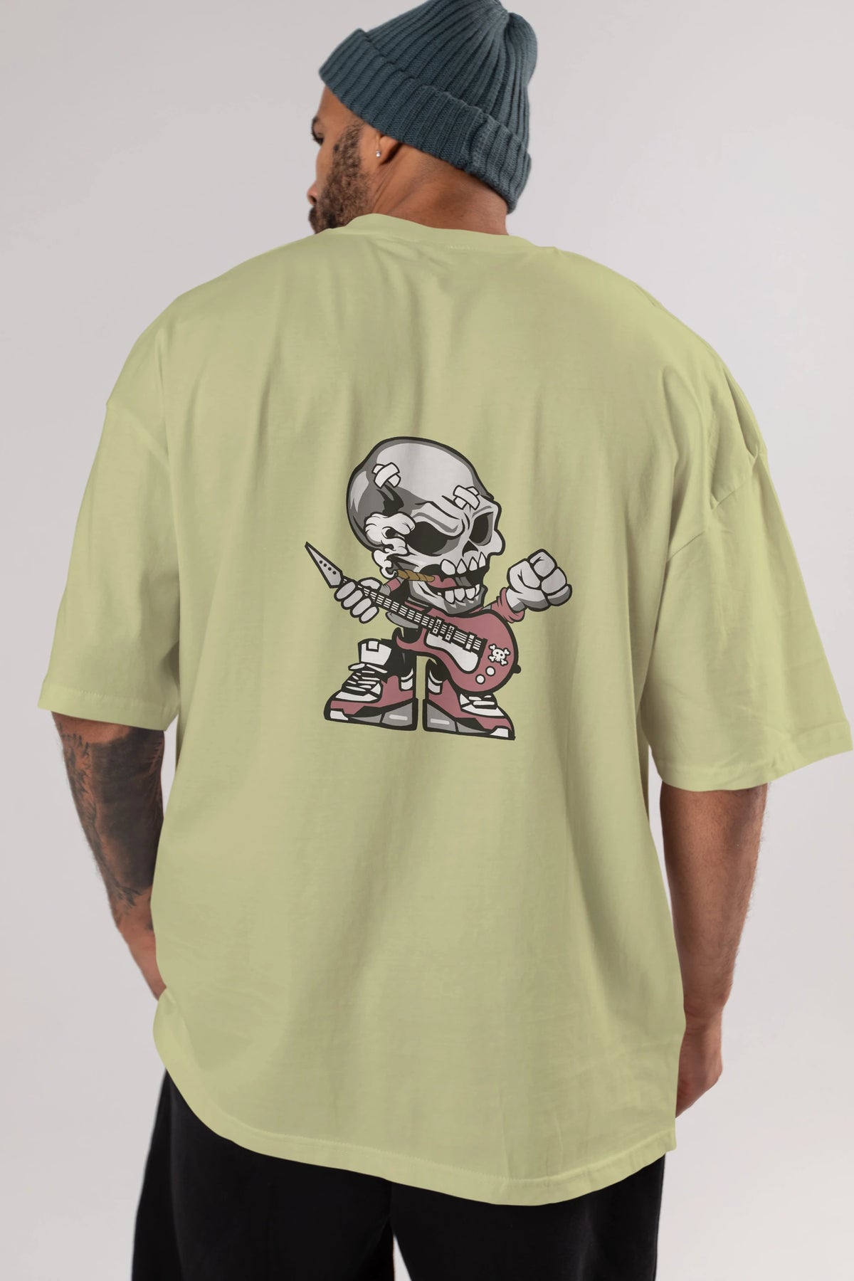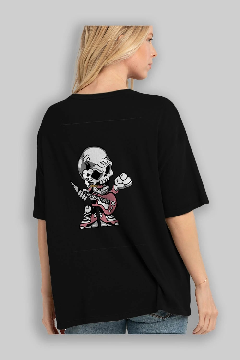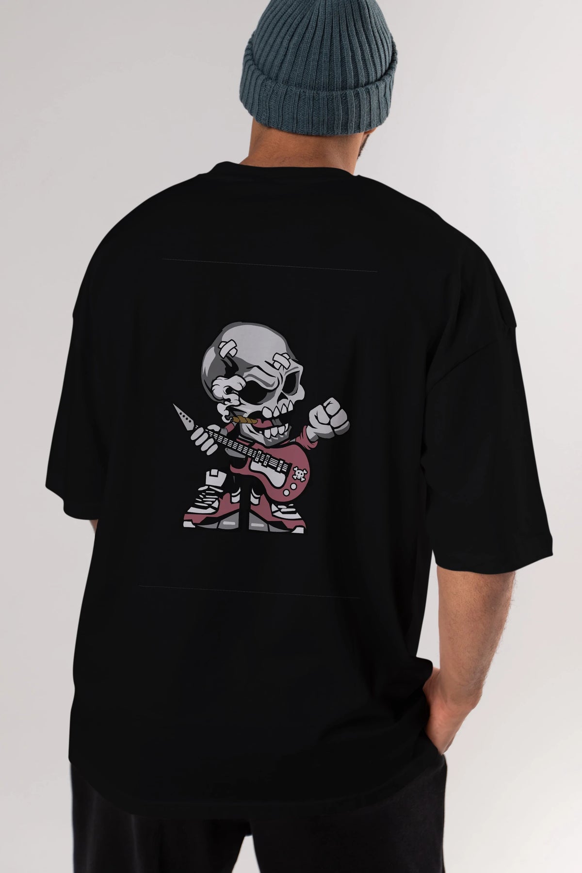 Skull Rockstar Arka Baskılı Oversize t-shirt Erkek Kadın Unisex %100 Pamuk tişort