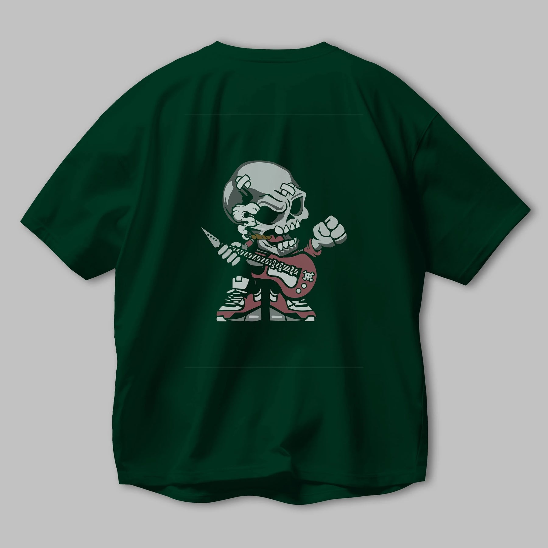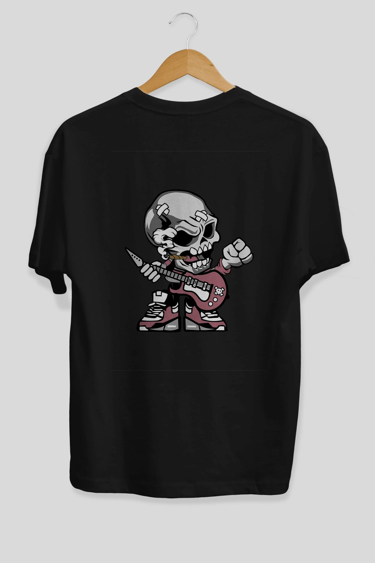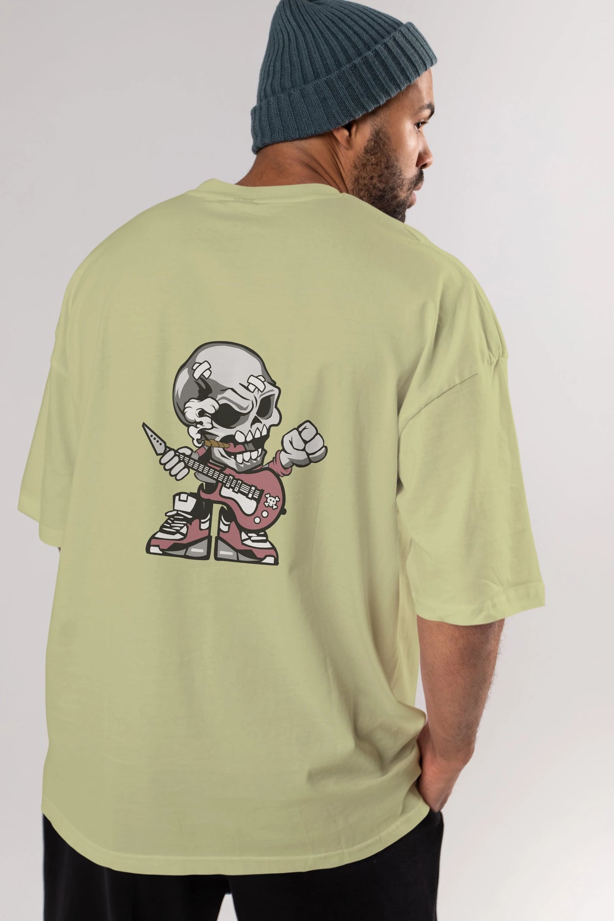 Skull Rockstar Arka Baskılı Oversize t-shirt Erkek Kadın Unisex %100 Pamuk tişort