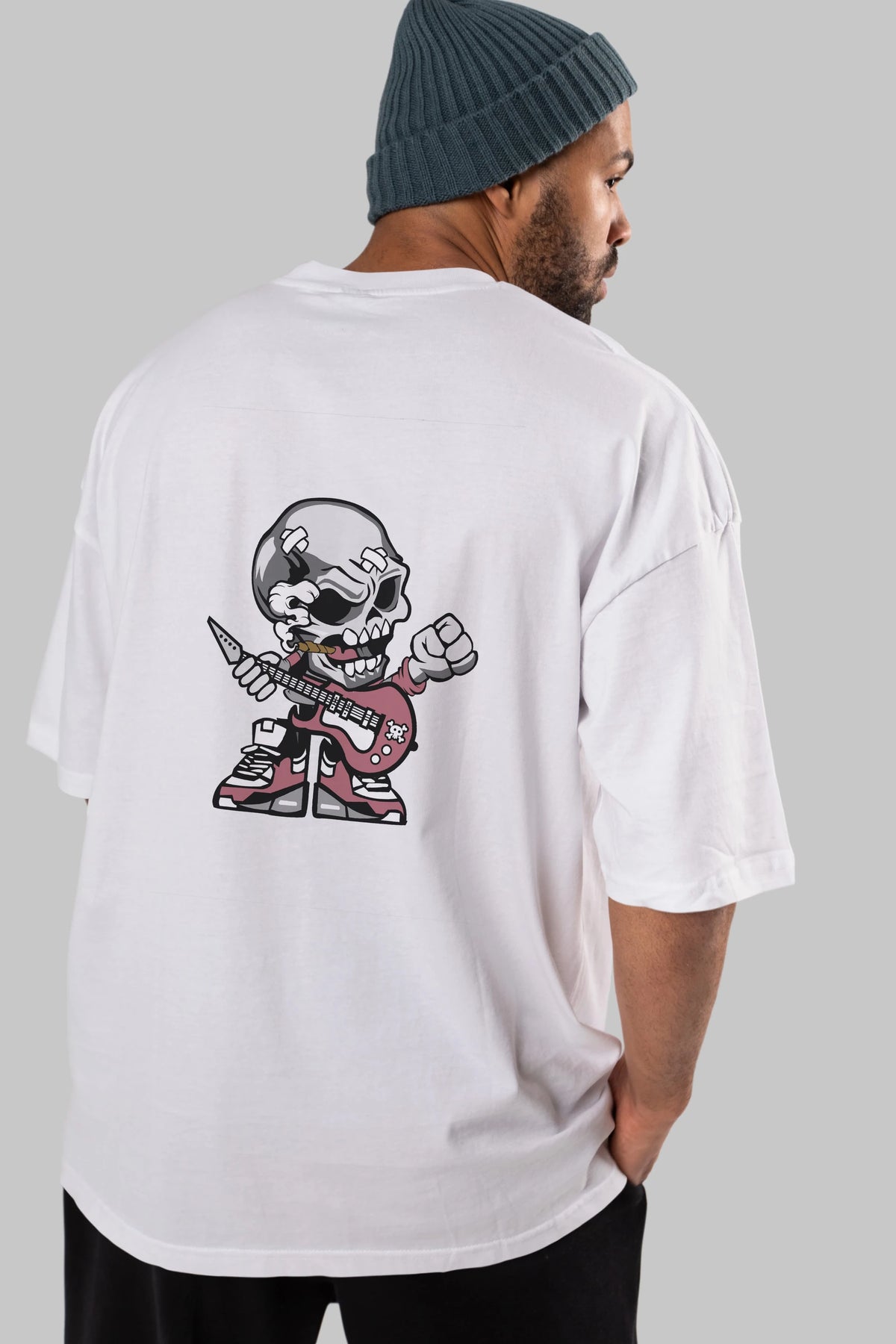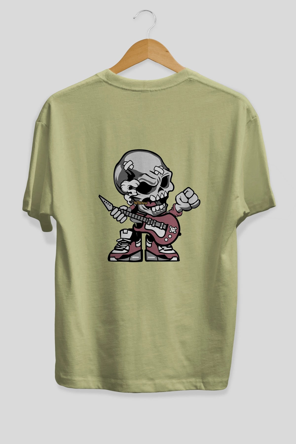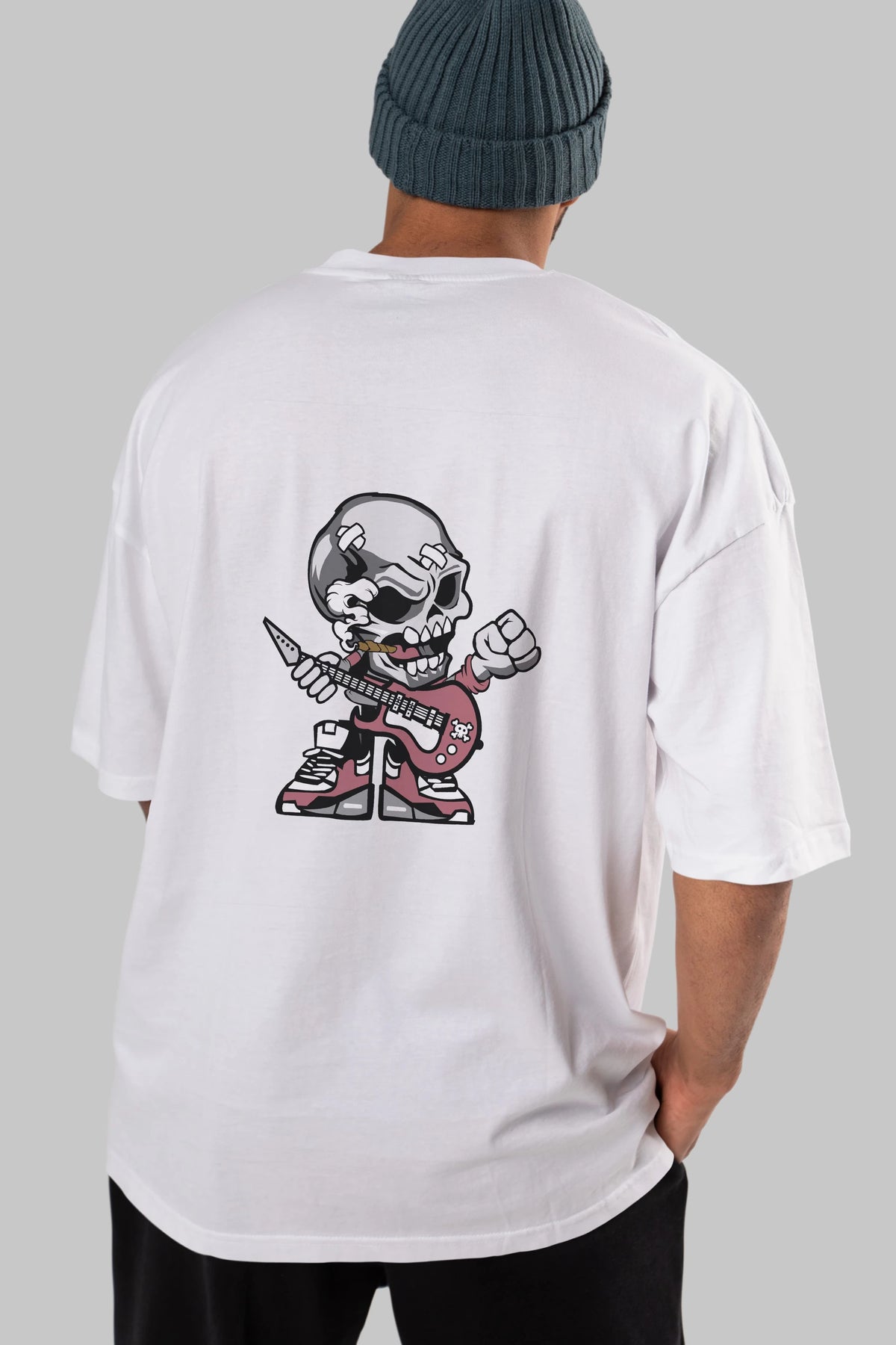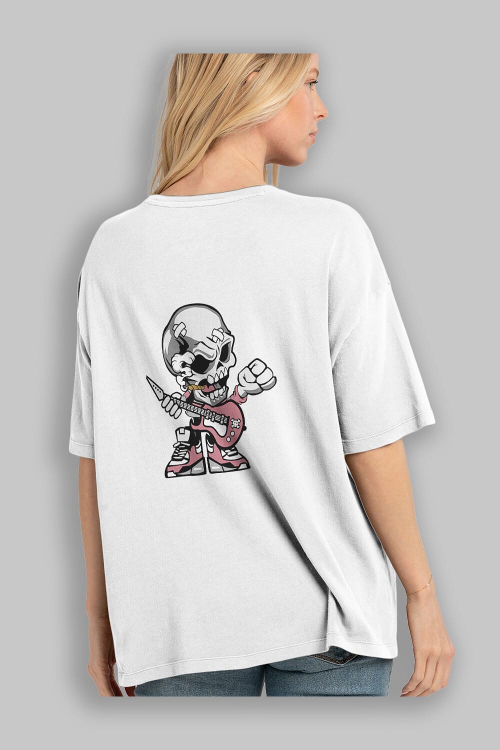 Skull Rockstar Arka Baskılı Oversize t-shirt Erkek Kadın Unisex %100 Pamuk tişort