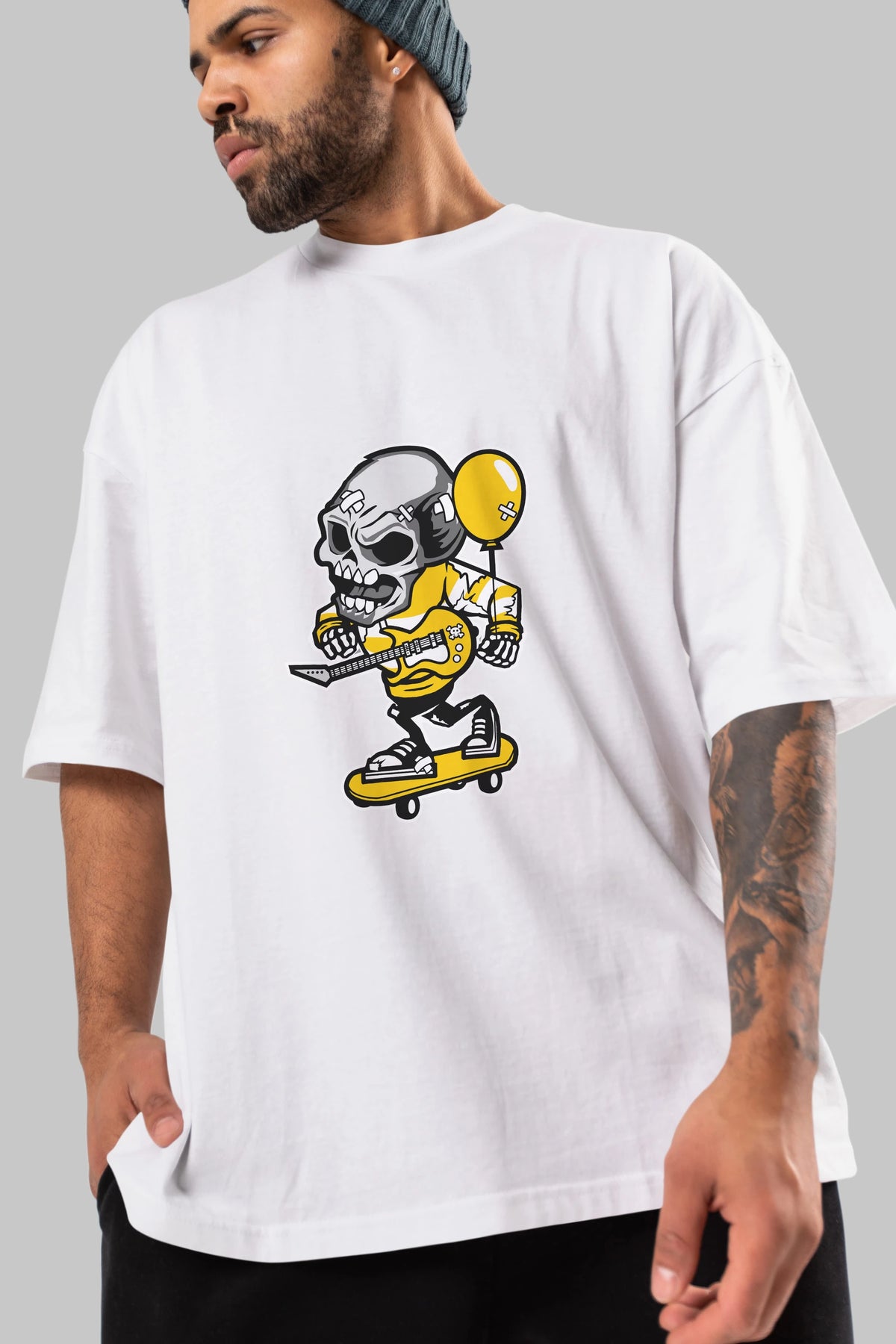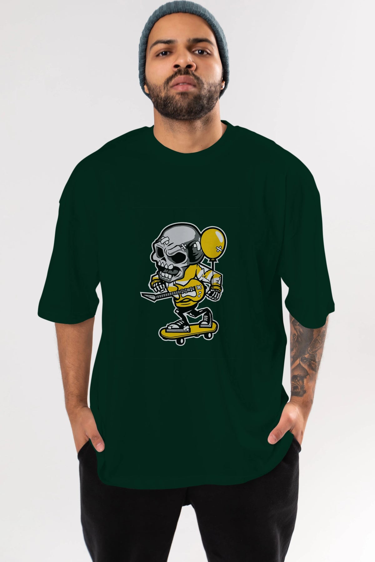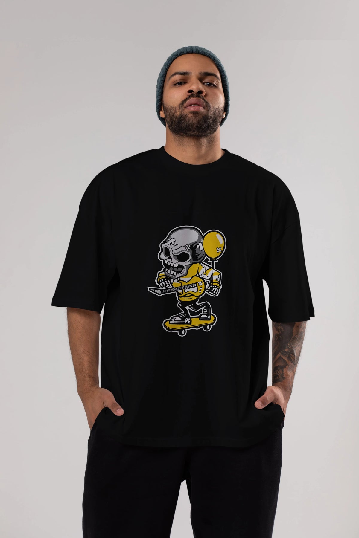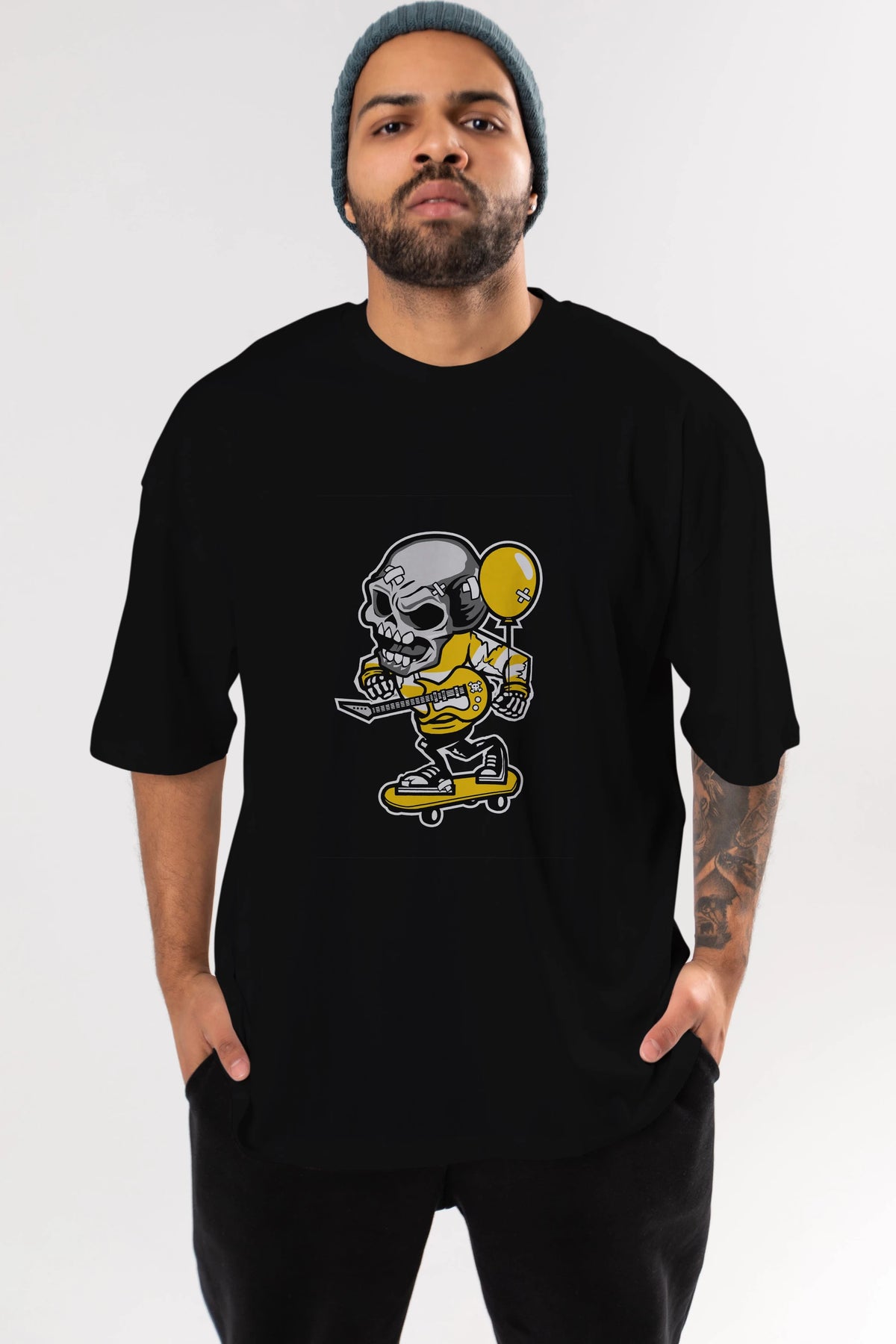 Skull Skater Ön Baskılı Oversize t-shirt Erkek Kadın Unisex %100 Pamuk tişort