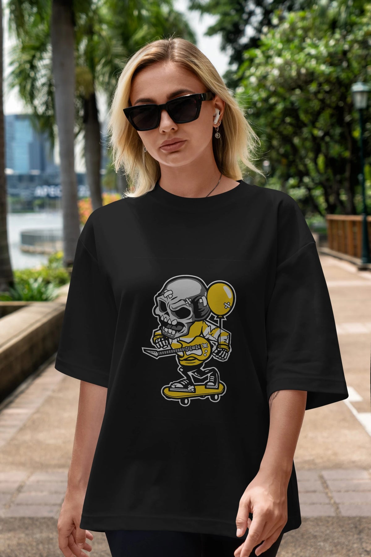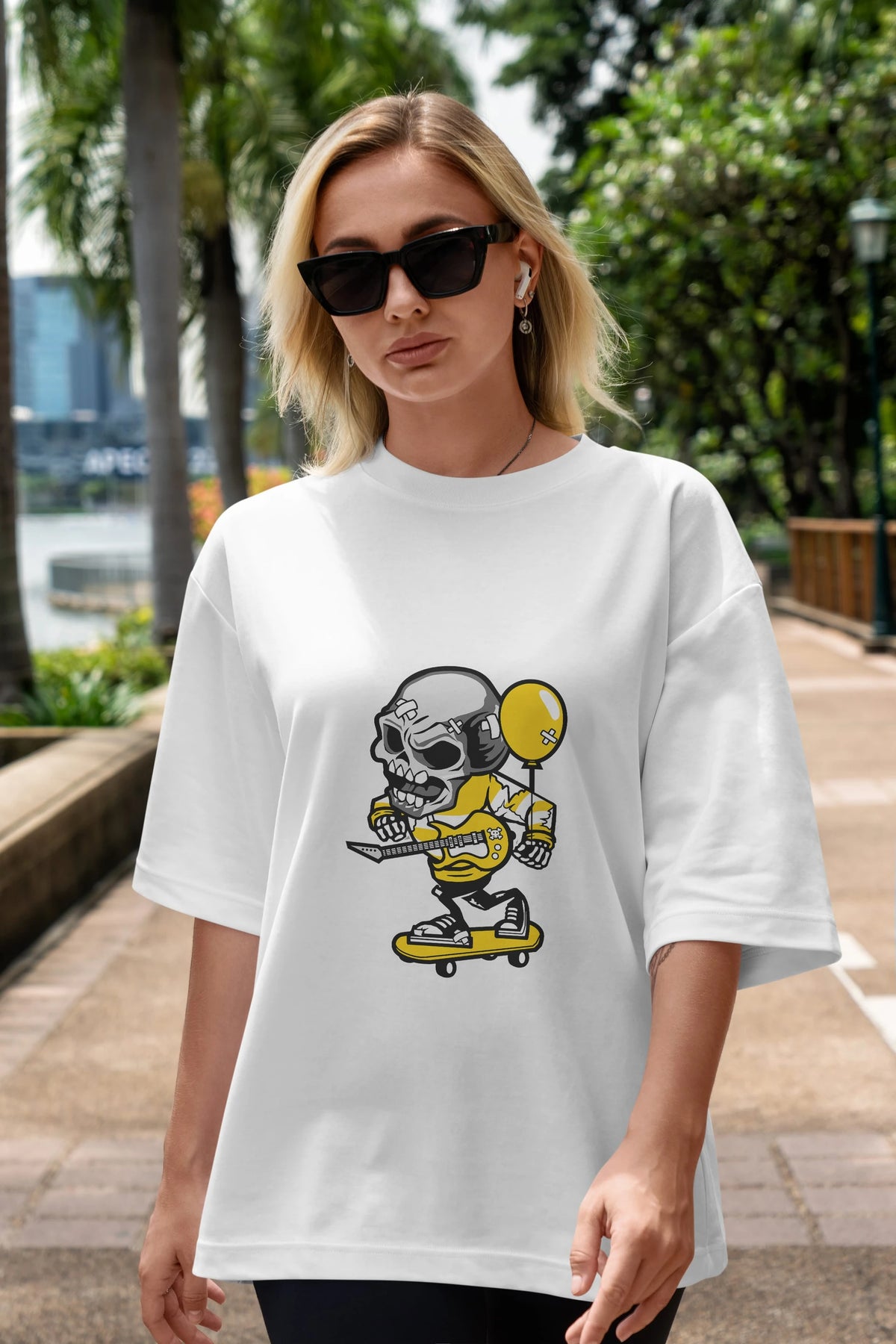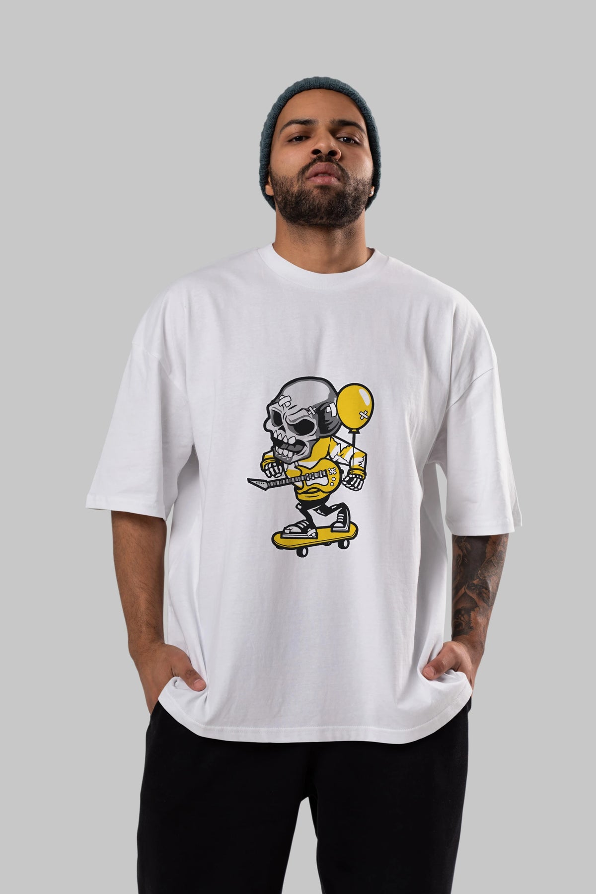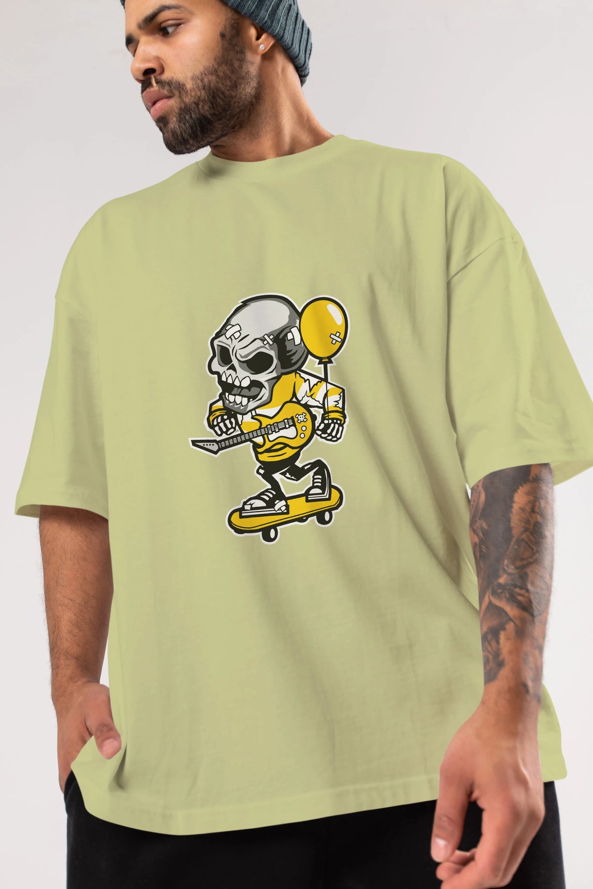Skull Skater Ön Baskılı Oversize t-shirt Erkek Kadın Unisex %100 Pamuk tişort