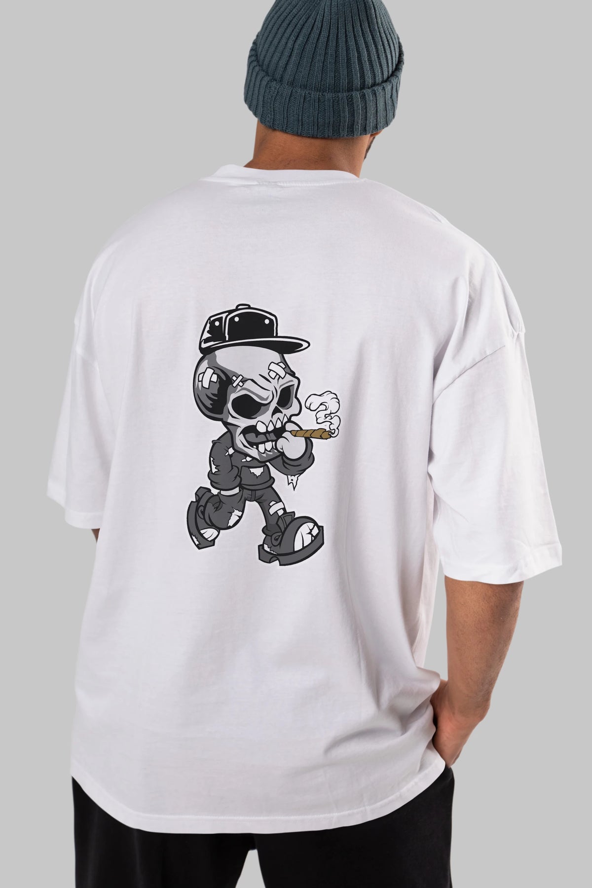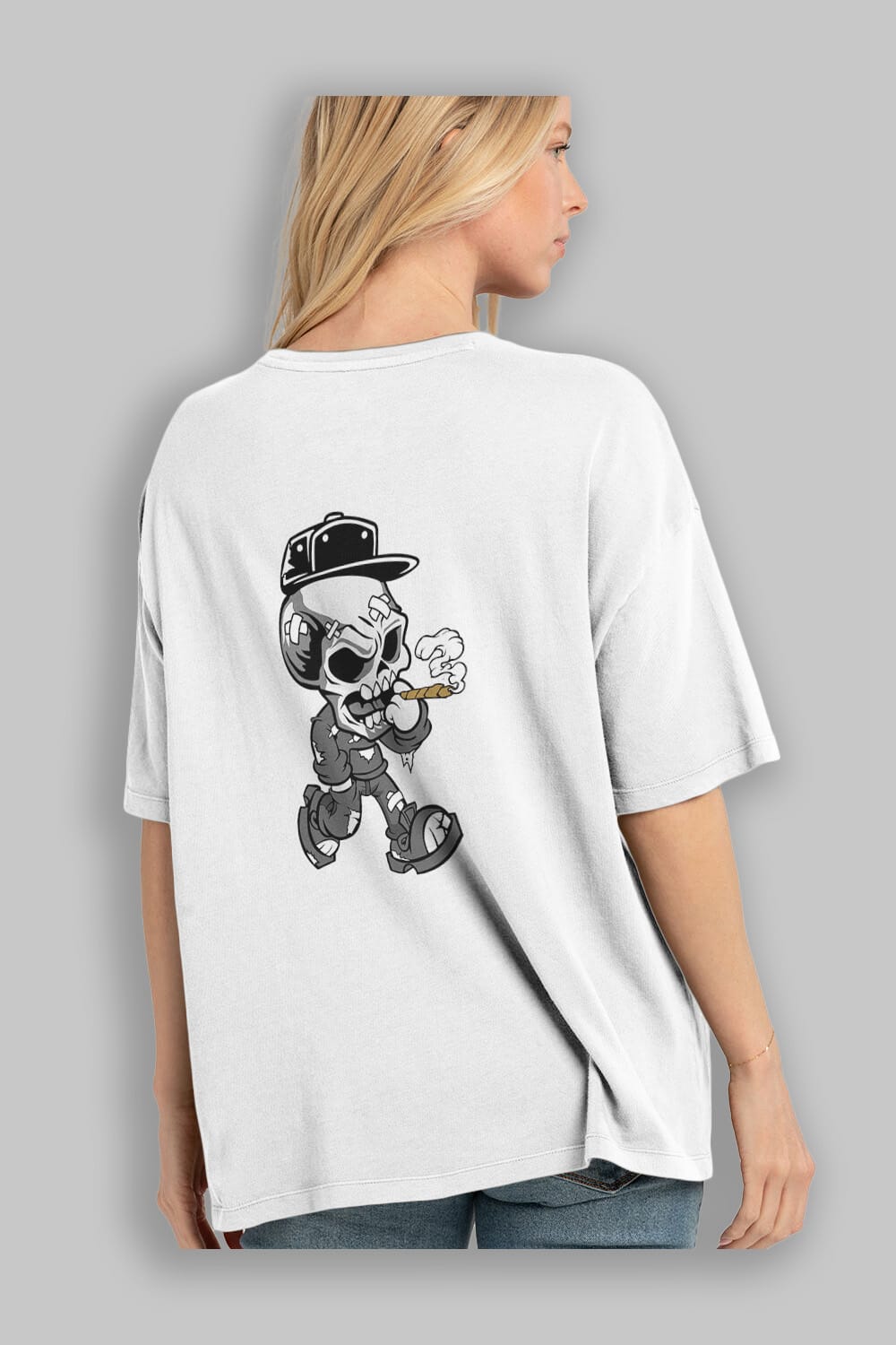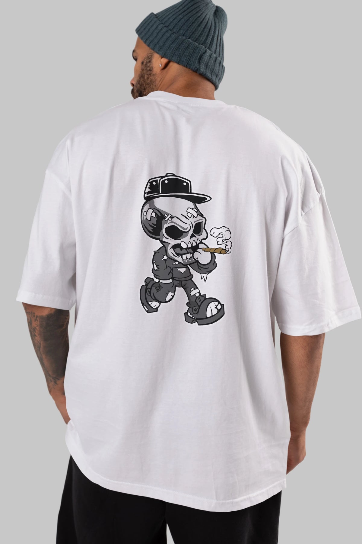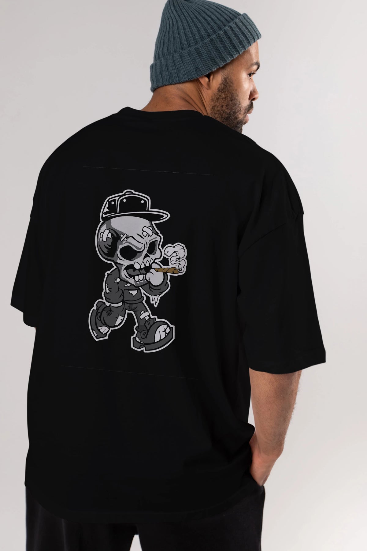Skull Smoker Arka Baskılı Oversize t-shirt Erkek Kadın Unisex %100 Pamuk tişort